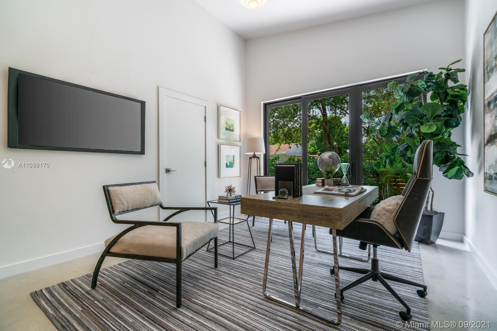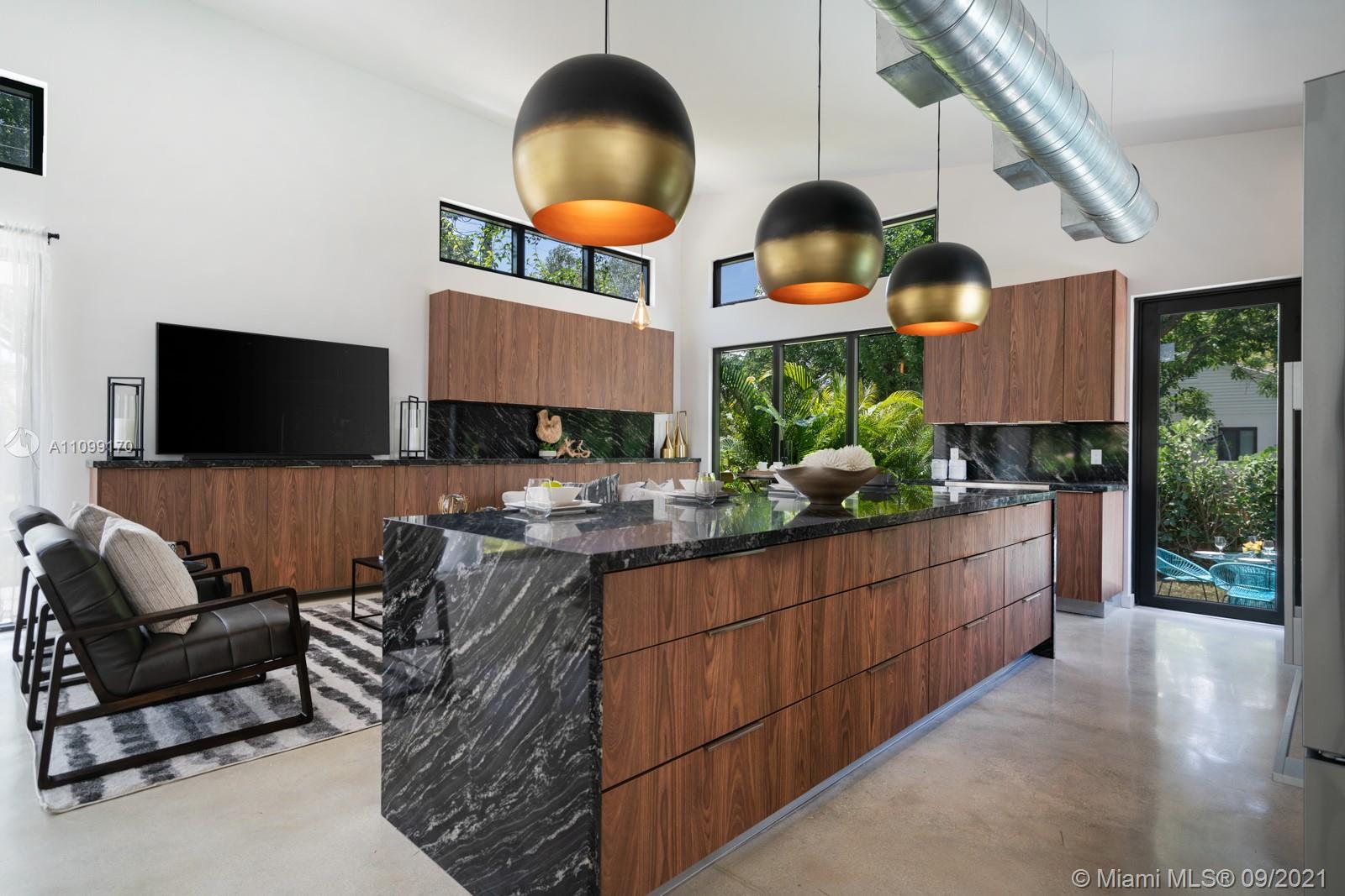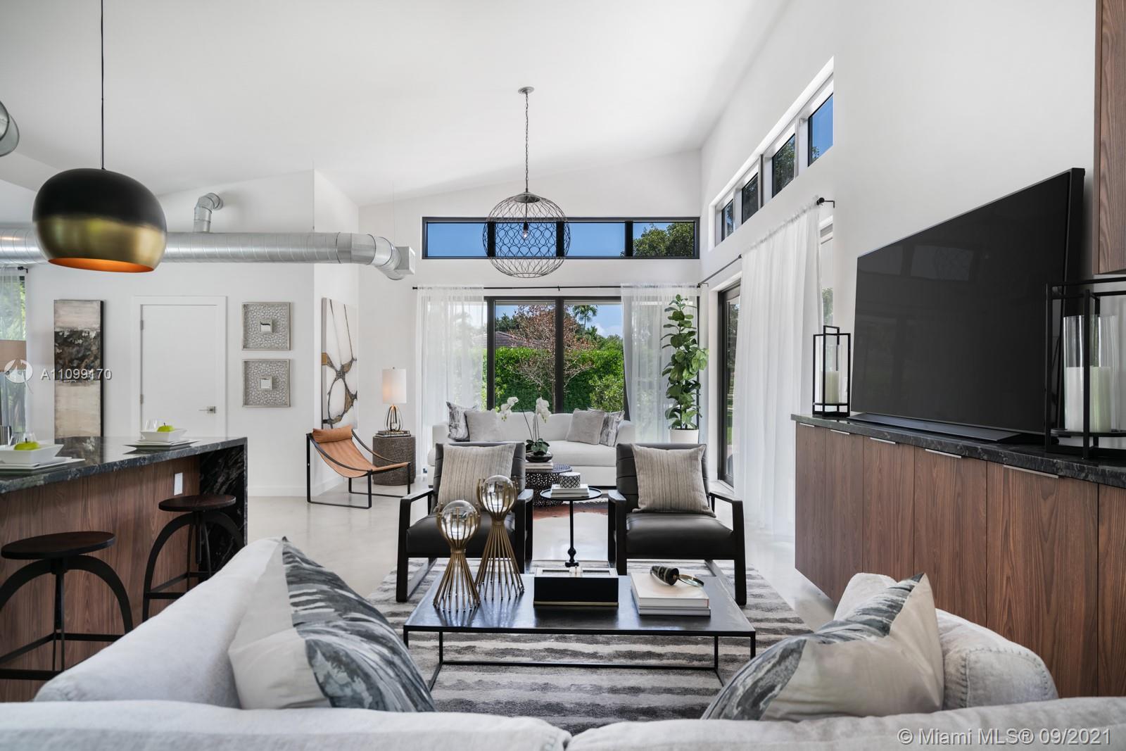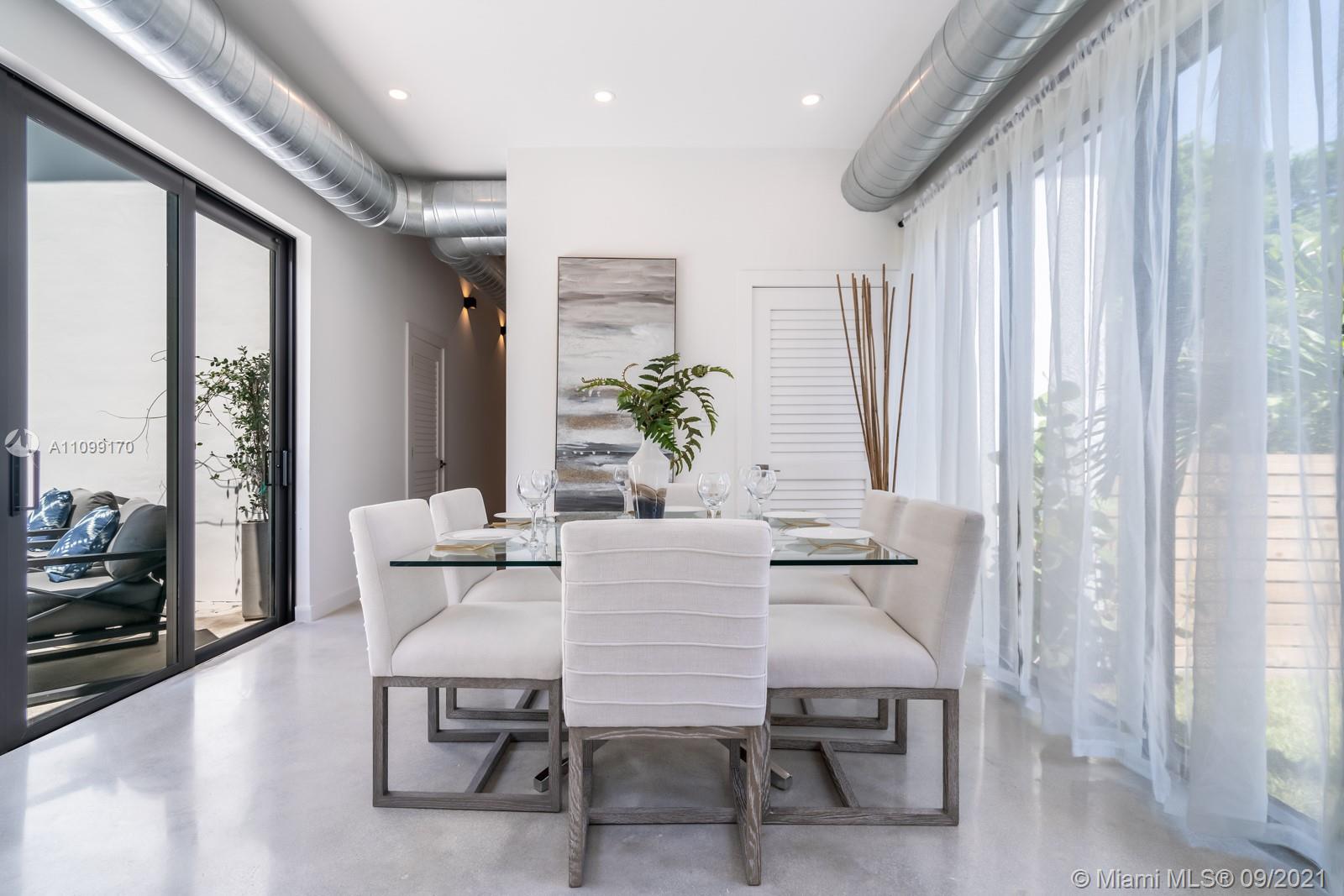 Introducing Dragonfly, the most iconoclastic new home built in Miami Shores. The Corbusier and Mies van der Rohe inspired pool home reveals “less is more” design- three planar forms, clean simple lines and honest use of materials, creating a rectilinear pedestal floating above the natural habitat. Unobstructed open free flow interiors wrapped in floor to ceiling impact glass walls and doors for abundant natural light. Triple single-pitched roofs create the iconic dragonfly form, with sloped soaring 16 ft ceilings and seamless indoor-outdoor living. Great features: luxe eat-in kitchen, artisan polished concrete floors, exposed industrial AC ducts, custom closet systems, designer baths and access to lush gardens from every room. For a truly unique non-traditional design, discover Dragonfly!