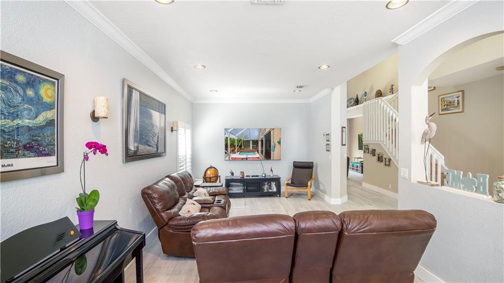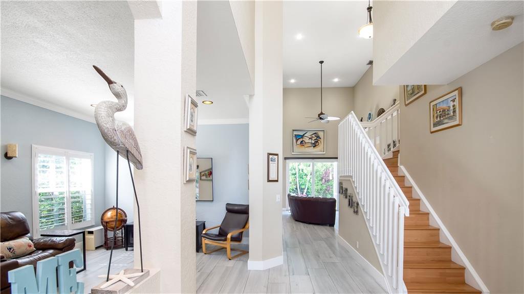 Gorgeous 4 br, 2 1/2 bath Wyndham Lakes home on a cul-de-sac. Fabulous layout with open kitchen and family room area with volume ceilings, perfect for family gatherings. Flows right to the outside for indoor/outdoor living. Complete hurricane protection, new impact doors and windows. New porcelain tile on first floor, new hardwood kitchen cabinets, backsplash and countertops, new half bath on first floor, newer a/c with new air purifier attached. Spacious primary suite on the first floor, 3 large bedrooms on the second floor. Beautiful, fully landscaped fenced backyard provides complete privacy to enjoy pool with beach step for lounging and a screened hot tub with permeable roof to keep out rain or hot sun. A backyard to enjoy. Truly a must see, Welcome Home!