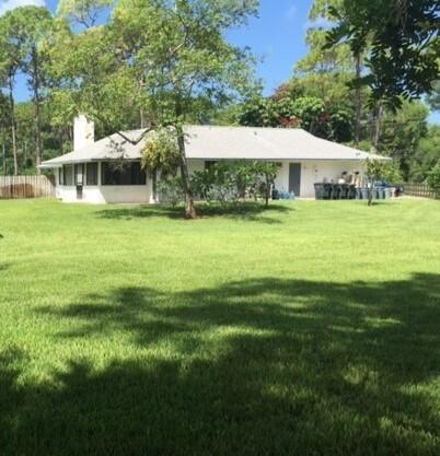 No HOA in this country style community only 10 minutes from shopping. 1.25 acre completely fence and sodded with a detached 2-car garage and a 1-car carport. Ready to convert to a guest house or the perfect business-workshop. Property sits next to a canal with access to rear of property from main road. Lovely home with updated interior, custom kitchen cabinets and granite counters, under cabinet lighting. Coffee/snack bar, indoor laundry. Updated bathrooms, tile, vanities with granite, vessel sinks and tile flooring. Beautiful stone wood burning fireplace and stranded bamboo floors thru-out. Screen enclosed patio. Central vac system and irrigation system. Miami Dade grade hurricane shutters. Agents-Read Broker Remarks Please.