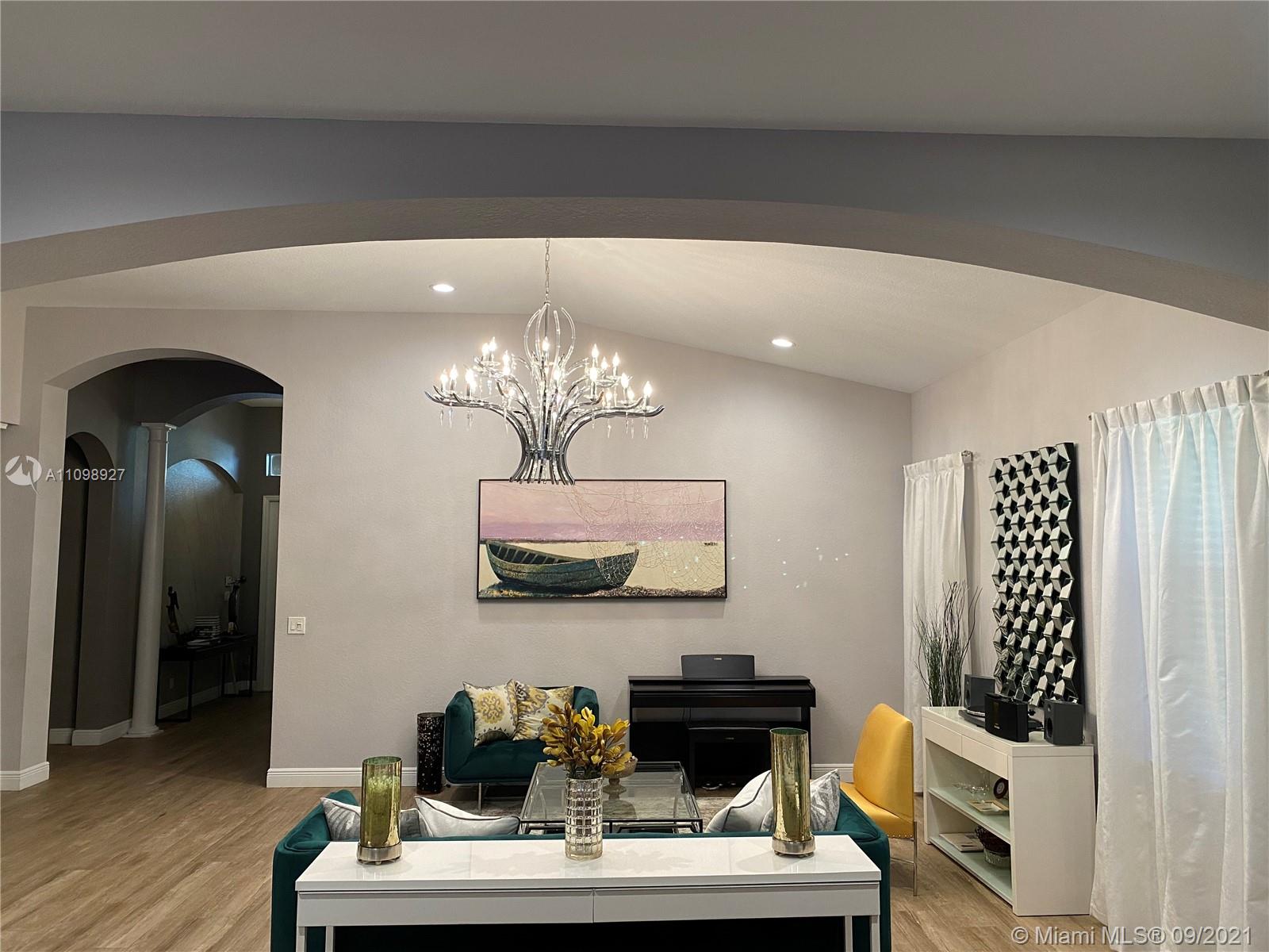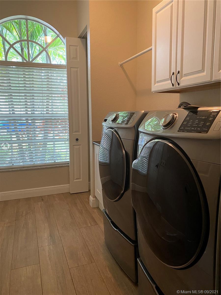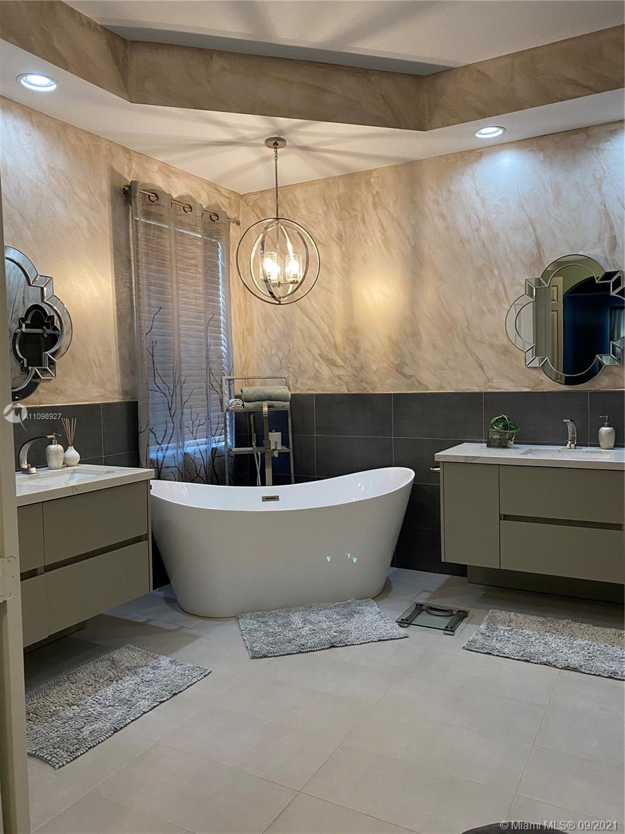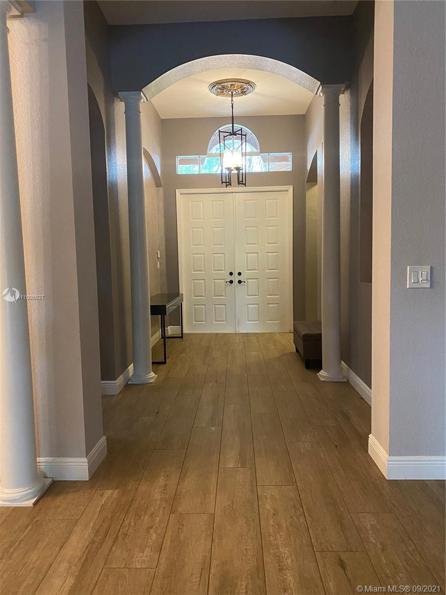 Spectacular home located in the prestigious gated community of Isles at Weston. Completely remodeled with brand new flooring and custom italian kitchen and bathroom cabinets with quartz countertops. New stainless steel appliances including washer and dryer. Over $100K in upgrades. Huge master bedroom with his and hers walk-in closets. Open layout with high ceilings, formal dining room, and living room make it a perfect house for entertaining. Covered patio includes a large pool, waterfall, and is very private. The community Clubhouse offers a gym, game room, playground, volleyball court. A-rated excellent schools nearby: Manatee Bay Elementary, Falcon Cove Middle, and Cypress Bay High are 5 minutes away.Chandeliers in the formal dining and master bedroom are excluded from the listing