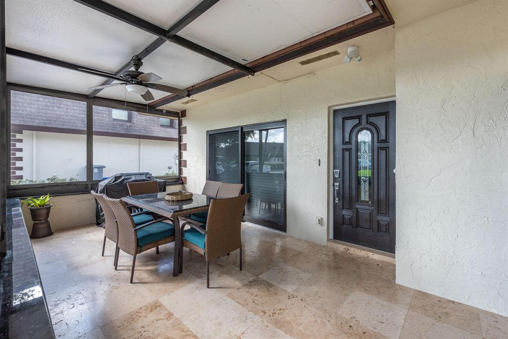 Amazing Townhome in Boca with Impact windows, Venetian plaster on the walls, staircase glass railing and marble floors, New A/C, custom electric blinds, kitchen with Smart appliances in black stain steel, (fridge with screen, Tempered Glass Hood, Smart cooktop and oven ), custom cabinets with white Quartz, extra storage area under stairs, Bosh washer and dryer. Custom lighting on the entire house.Bathroom with double glass Vessel sink , shower with infinity drain, ceiling shower head, frameless door .Living area with Porcelain floor, tankless water heater, 2 parking spaces assigned plus guest . Patio with marble floors Great location Across from the community pool. Everything ready, just bring your luggage.