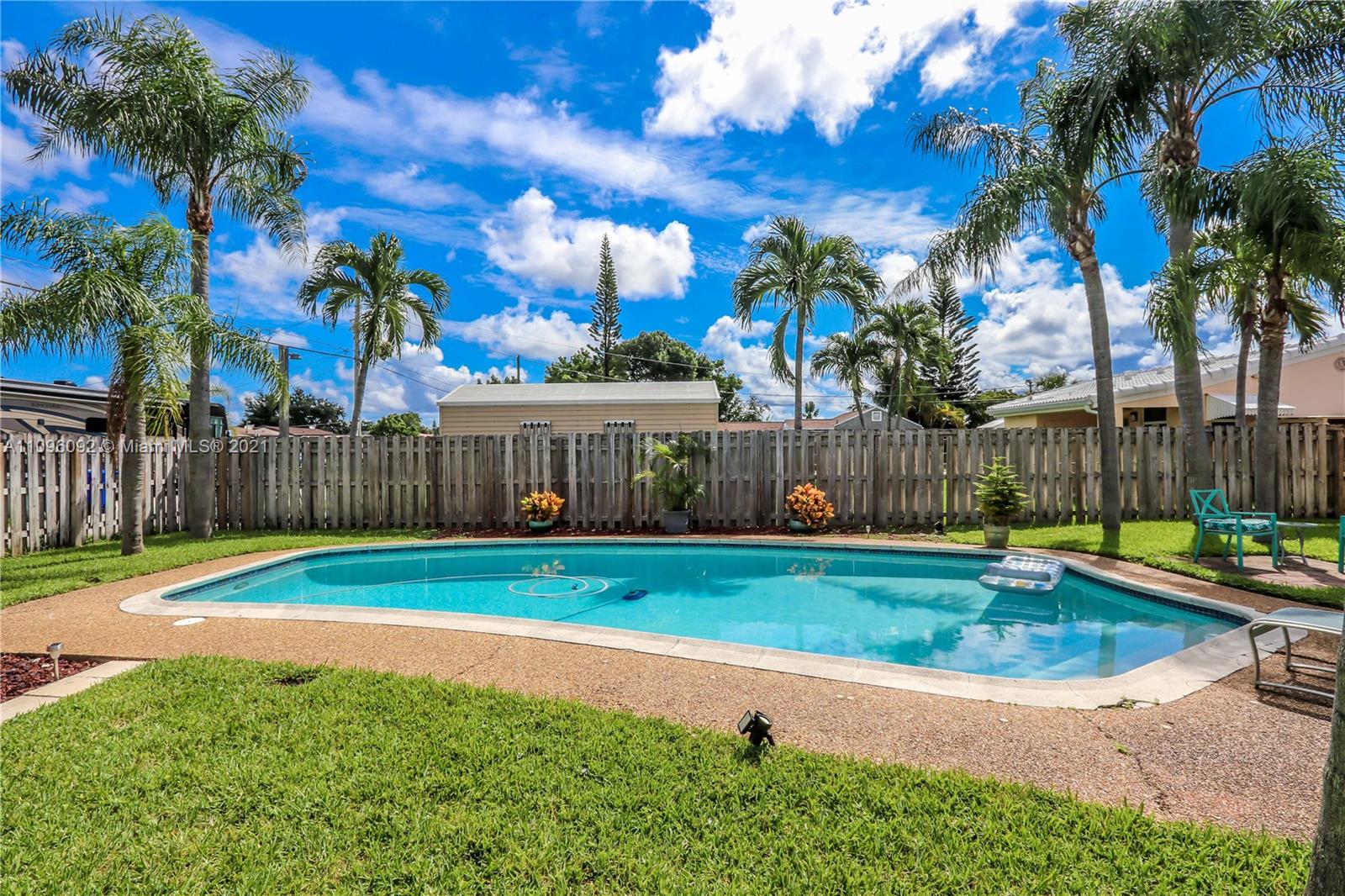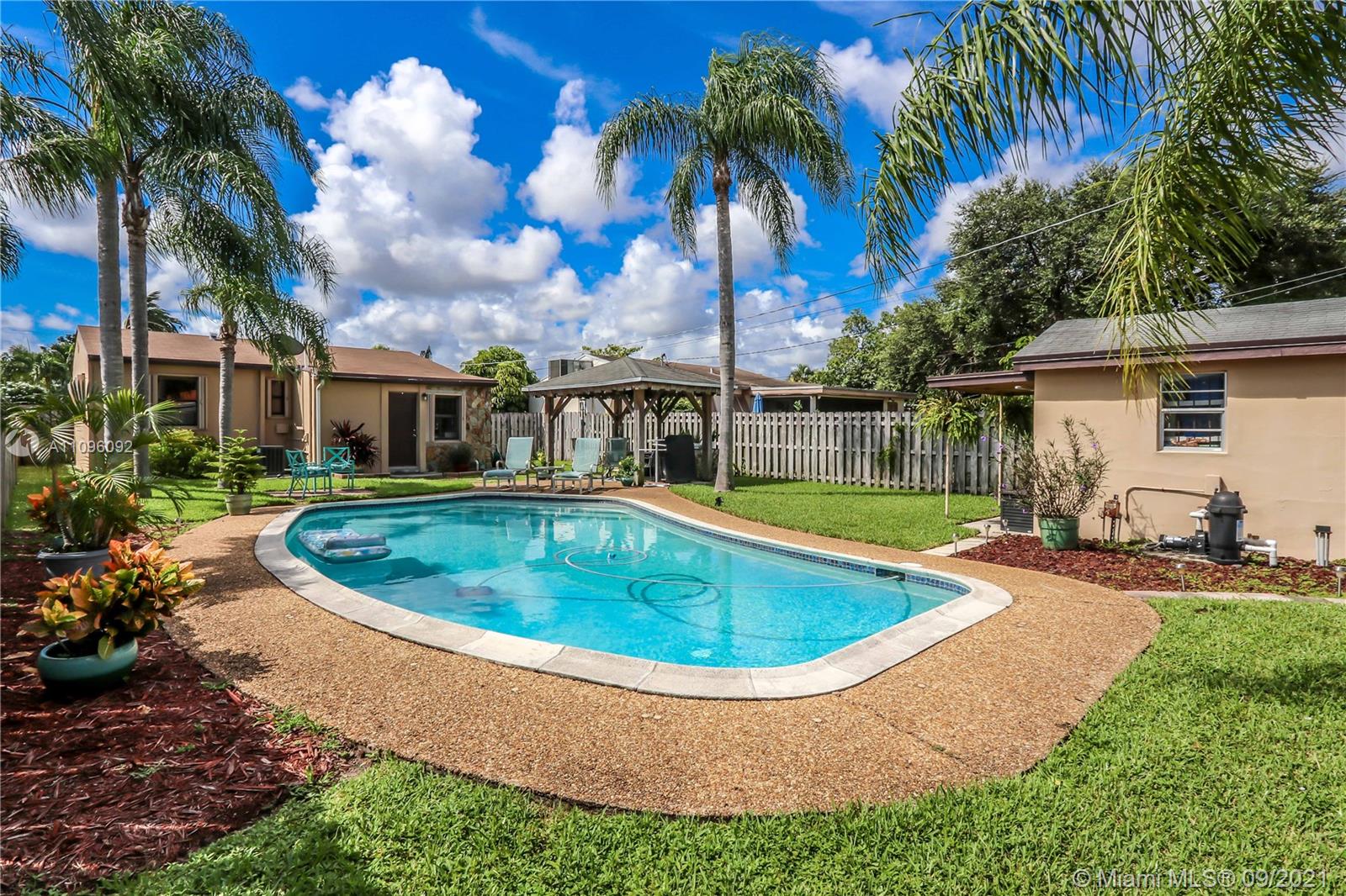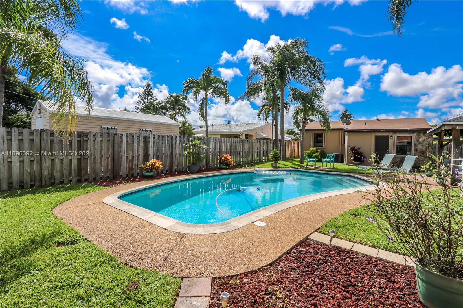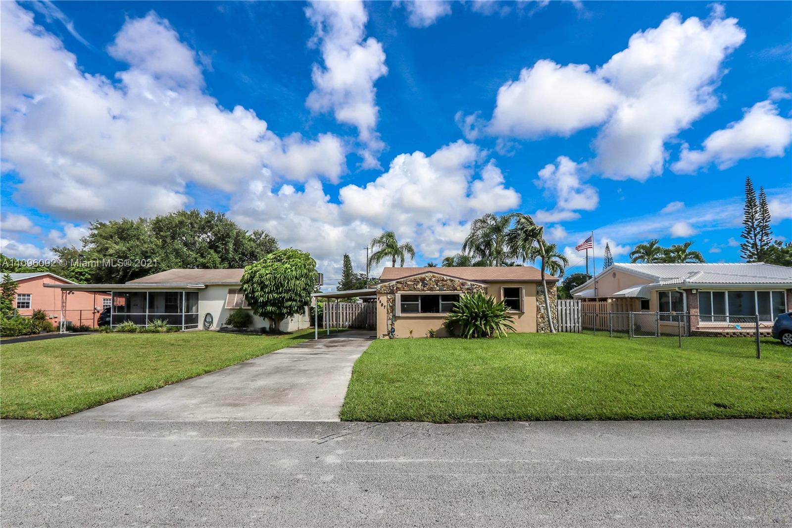 GREAT LOCATION 2 BED / 1 ½ BATH BEAUTIFUL POOL HOME! FEATURES LARGE FOYER ENTRANCE USED AS A DINING ROOM ~ SPACIOUS KITCHEN WITH WHITE CABINETS AND APPLIANCES, DOUBLE SINK, GLASS TILE BACK SPLASH, LOTS OF STORAGE AND A BUILT IN DESK ~ TILE FLOORS AND CARPET IN BEDROOMS ~ BATHROOM WITH WHITE TILE, TUB AND PEDESTAL SINK ~ LAUNDRY ROOM WITH WASHER AND DRYER ~ BEAUTIFUL POOL SURROUNDED BY WELL MANICURED LANDSCAPING~ PERGOLA/COVERED PATIO ~ FENCED BACK YARD ~ LARGE DRIVEWAY ~ CARPORT ~ ADDITIONAL STORAGE STRUCTURE ~ CONVENIENTLY LOCATED MINUTES FROM DOWNTOWN HOLLYWOOD, BEACHES, HOLLY/FT.LAUD INTERNATIONAL AIRPORT AND CASINOS.~ A/C REPLACED APPROX. 2019 ~ROOF APPROX. 2017
