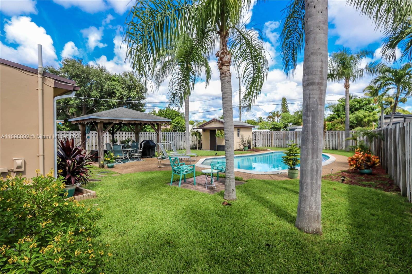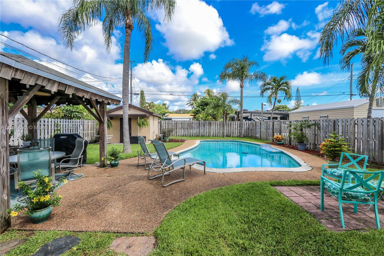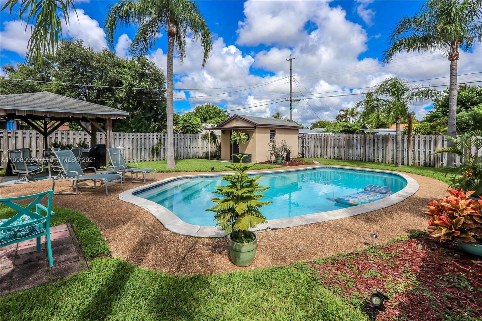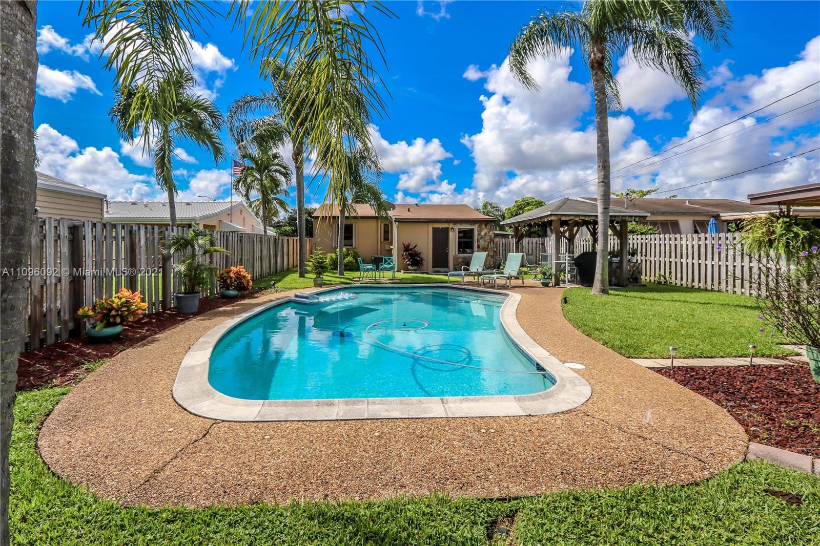 GREAT LOCATION 2 BED / 1 ½ BATH BEAUTIFUL POOL HOME! FEATURES LARGE FOYER ENTRANCE USED AS A DINING ROOM ~ SPACIOUS KITCHEN WITH WHITE CABINETS AND APPLIANCES, DOUBLE SINK, GLASS TILE BACK SPLASH, LOTS OF STORAGE AND A BUILT IN DESK ~ TILE FLOORS AND CARPET IN BEDROOMS ~ BATHROOM WITH WHITE TILE, TUB AND PEDESTAL SINK ~ LAUNDRY ROOM WITH WASHER AND DRYER ~ BEAUTIFUL POOL SURROUNDED BY WELL MANICURED LANDSCAPING~ PERGOLA/COVERED PATIO ~ FENCED BACK YARD ~ LARGE DRIVEWAY ~ CARPORT ~ ADDITIONAL STORAGE STRUCTURE ~ CONVENIENTLY LOCATED MINUTES FROM DOWNTOWN HOLLYWOOD, BEACHES, HOLLY/FT.LAUD INTERNATIONAL AIRPORT AND CASINOS.~ A/C REPLACED APPROX. 2019 ~ROOF APPROX. 2017