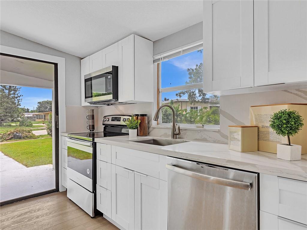 Unbelievable upgraded home ready to move in. Large, bright and with lots of room inside and out, this home has it all. Brand new roof, kitchen with soft closing cabinets, calacatta countertops, SS appliances, gorgeous waterproof vinyl flooring throughout, modern fixtures, beautiful 3 full bathrooms, split master bedroom, inside laundry, and much more. Oversized yard with new sod, irrigation system and privacy areca palm hedge, has more than enough room for a pool and many other entertainment possibilities. Separate utility shed is perfect for storage or workshop room. Located in highly desirable Pompano/Deerfield line, this amazing home is minutes from the beach, newly developed shopping centers and all East living has to offer. Can't miss!!