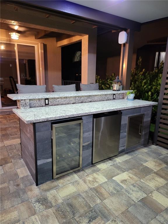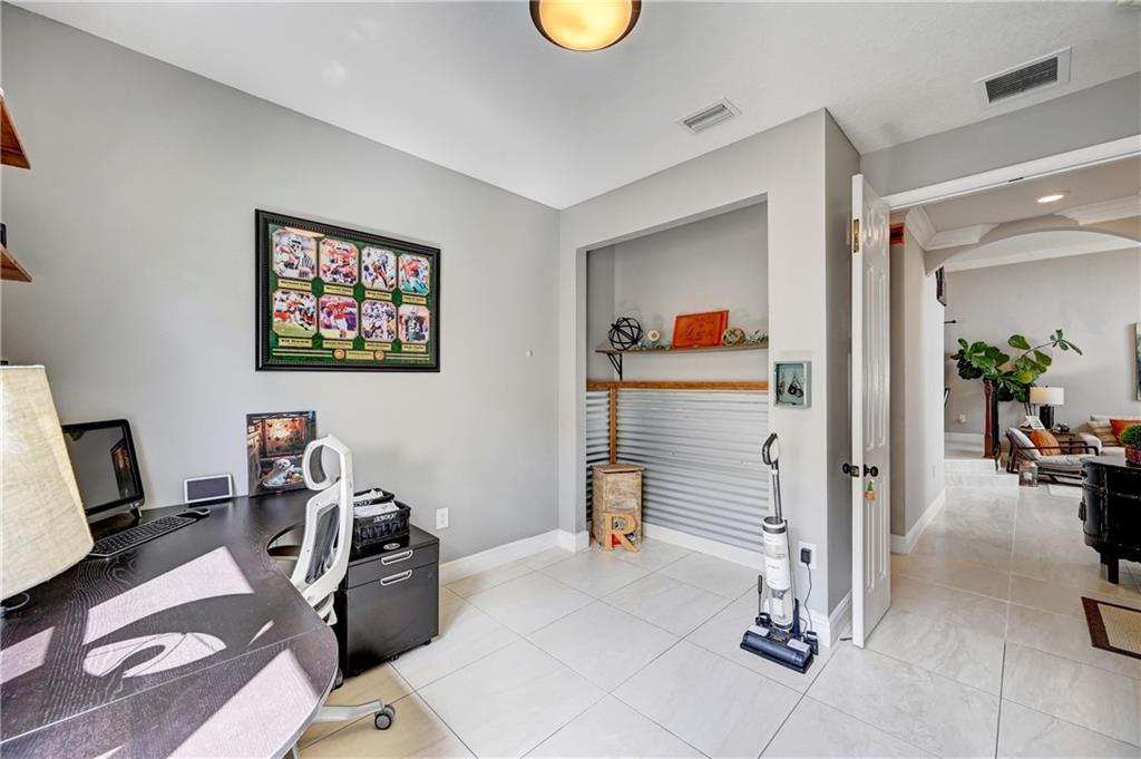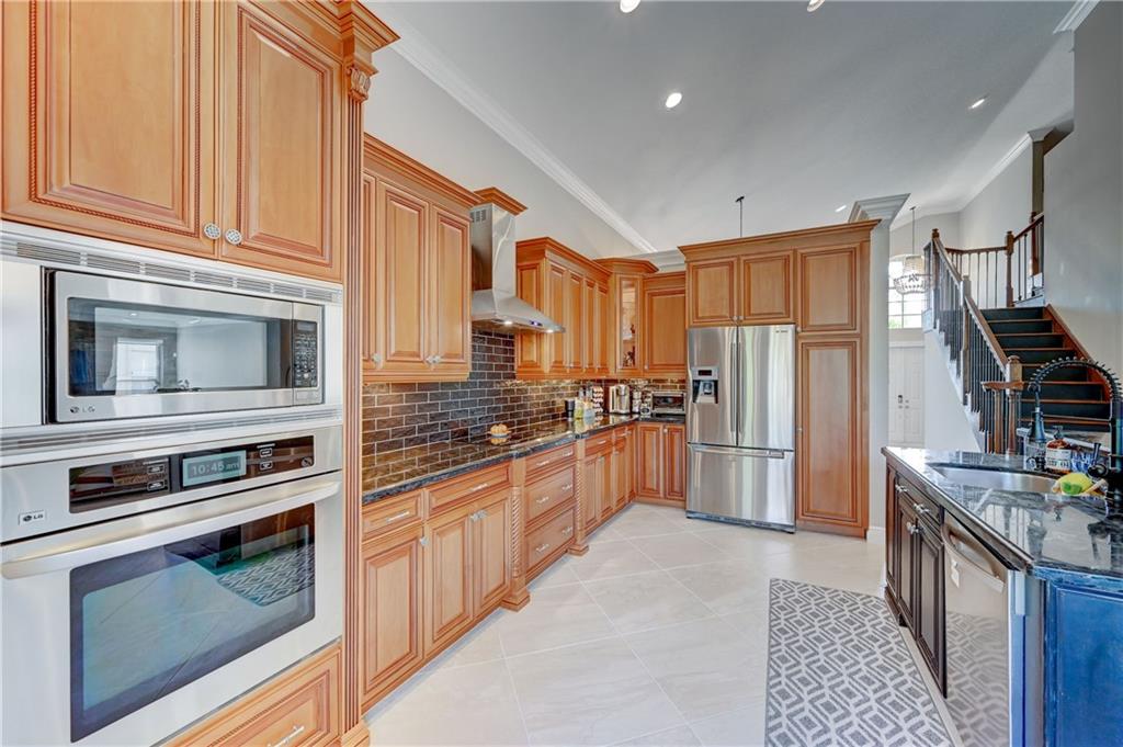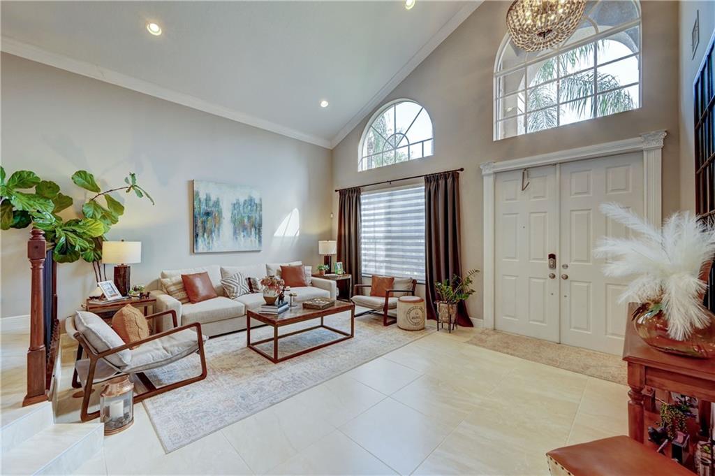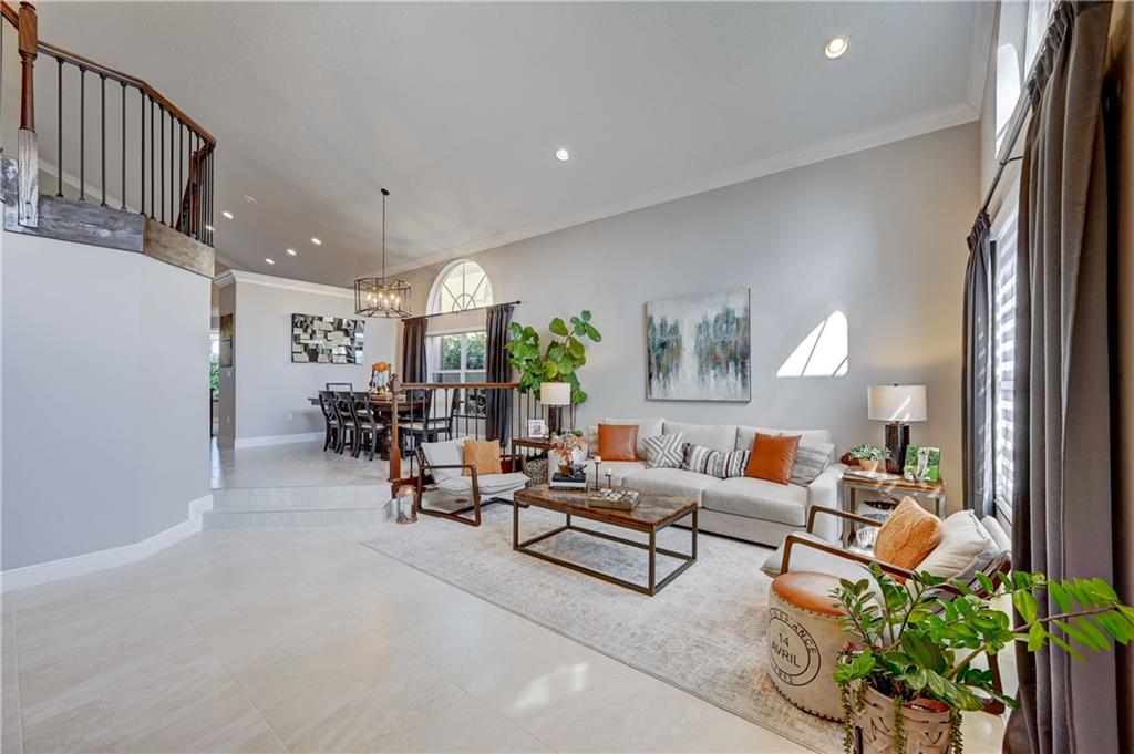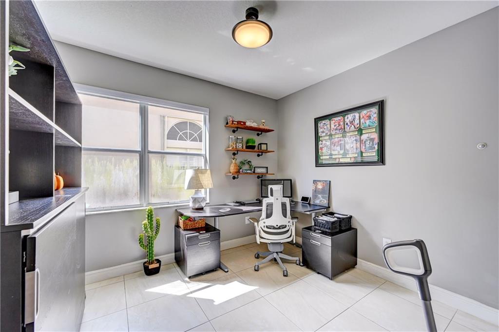 2978 sq ft home in gated community with natural light and custom upgrades throughout that include Cat5 cable and hurricane shutters. Modern floor plan with large living spaces and vaulted ceilings. Kitchen has granite counters, stainless 3-door fridge (Samsung), dishwasher, built in oven, stove and microwave (LG). 2 new central A/C units (Carrier) with Smart Thermostats. New exterior paint. Master bed has his/her bathrooms with shared shower, his/her walk in closets that measure 10'x5' and 7'x5' and French doors onto a balcony. Entertainer's paradise with privacy landscaping, putting green, Pergola with shade screens (can be lowered/raised), recessed lighting, TV, grill, fridge and pool table with table top/ping pong. Low HOA fee @ 145/mo (includes internet, pool, gym, 24hr security)