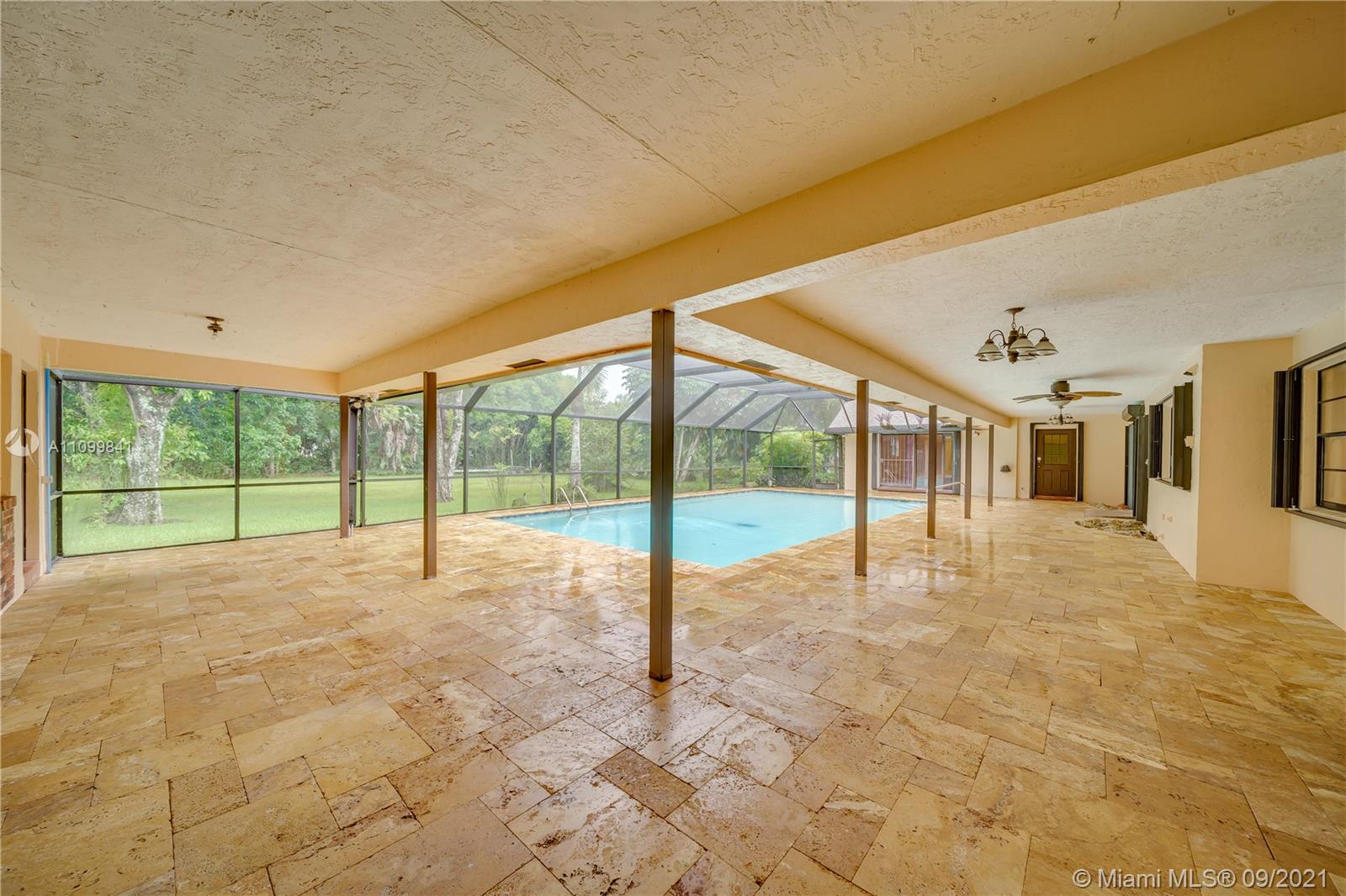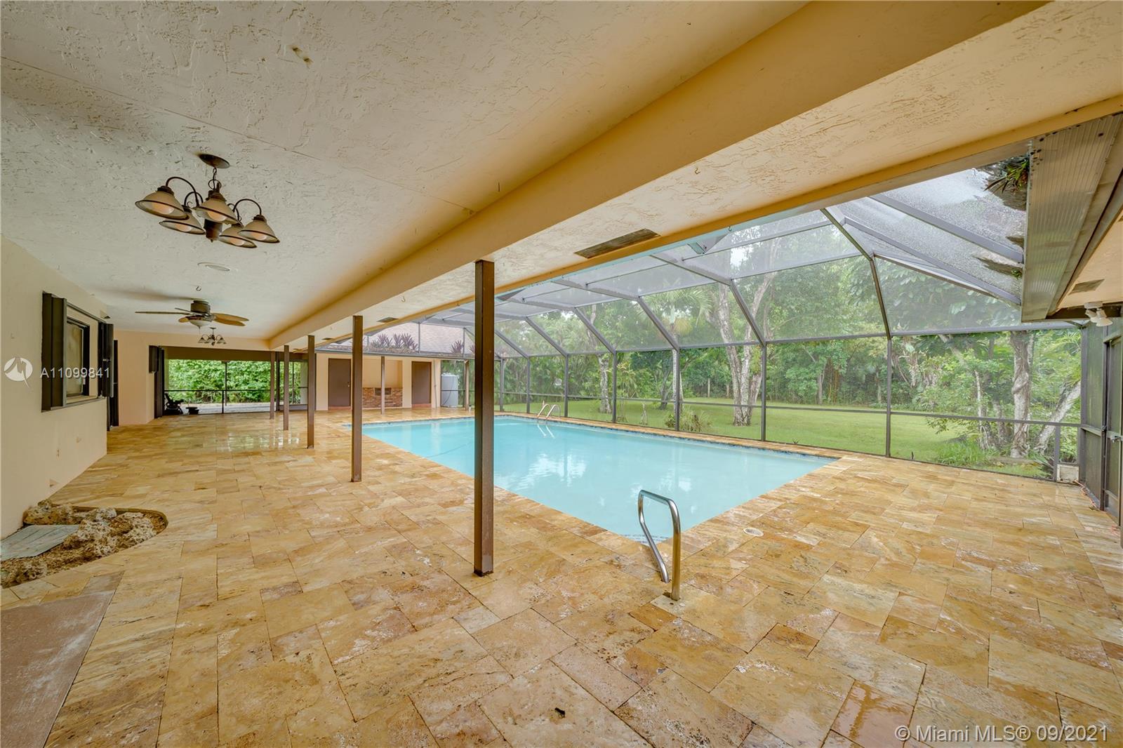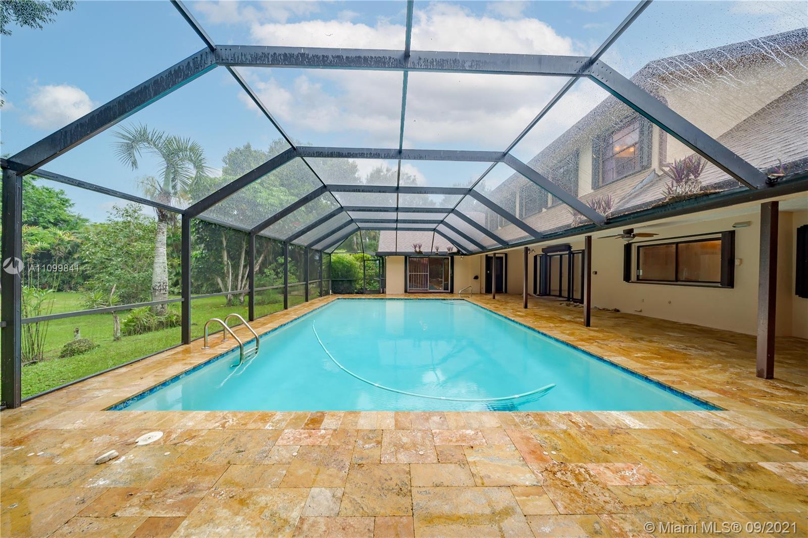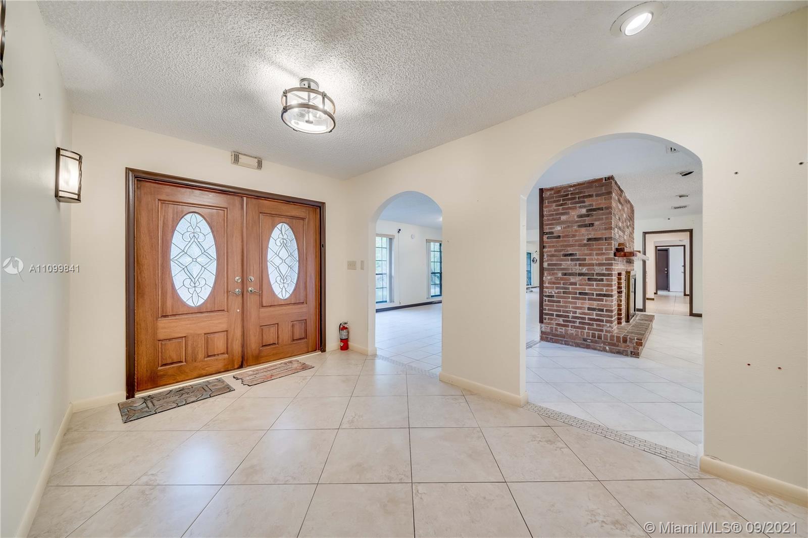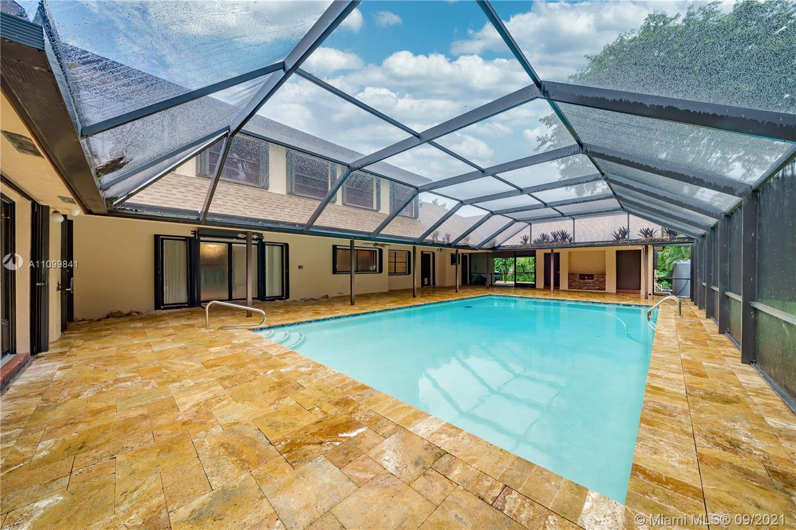 Don’t miss out on this spectacular 1.23 Acre property in Davie, with no HOA, located in one of Broward County's top-rated school districts. Large pond graces the front of the property w/ circular driveway & 2 car impact rated garage. An entertainer’s paradise, this home's beautifully landscaped property has an incredible large screened in salt chlorinated pool area w/ travertine pool deck and giant back yard for great parties and play time. Indoors, a classic brick fireplace adds a touch of cozy charm. Choose to use the upstairs or downstairs master bedroom and enjoy all the rural, country beauty of Davie. Close to the turnpike and a quick drive to Miami, Ft. Lauderdale or Sawgrass Mills. 2015 Roof per permits. House has a whole home Generator. Accordion Shutters. Reverse Osmosis System.