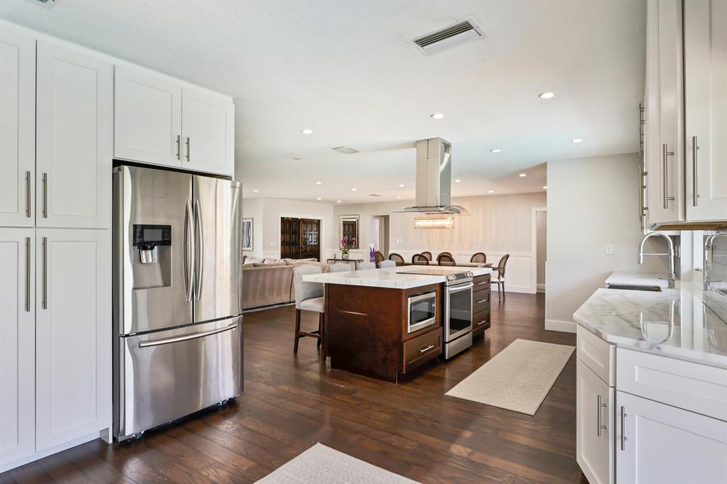 The home you have been waiting for...fabulous, open concept, recently remodeled 4/2 beauty on a park size corner lot of 15,073 sq.ft. Complete with all impact windows and sliders, updated salt water pool, PVC fence and Smart sprinkler system. Living area features custom bar w/wine fridge, wall unit with electric fireplace and expansive entertaining area. Kitchen has oversized island, stainless steel appliances, overlooking the pristine yard and pool. Large bedrooms with custom built closets and tastefully appointed bathrooms. Laundry room big enough to double as a playroom. Great schools, close to shopping and restaurants. This one has it all!