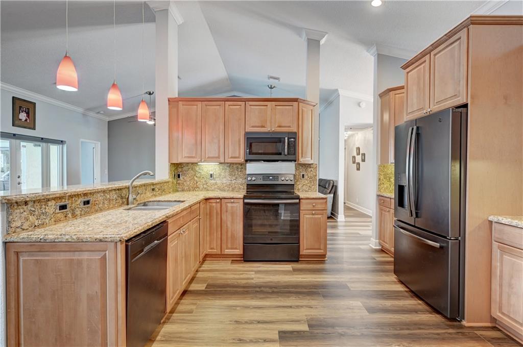 BUYER DENIED, INSPECTED AND APPRAISED!! Welcome home to this amazing waterfront/pool home in Isles of West Glen. This 3/2 home sits on a quiet cul-de-sac w/2 car garage & hurricane rated garage door, 2009 Roof, Newer 5 ton 18 Seer AC, ALL NEW Luxury Vinyl Plank flooring, vaulted ceilings w/recessed lights, crown molding thru-out, completely remodeled guest bath, updated eat-in kitchen w/SS appliances, granite counters, separate bar, wine cooler & decorative mosaic tile backsplash, large laundry room w/storage & spacious master suite boasts walk-in closet & separate tub/shower. Enjoy tons of natural light from the hurricane rated French doors that lead out to the screened-in pool/spa, covered patio & fenced yard. LOW HOA! **SUBMIT OFFERS TO: https://www.mlsoffers.com/makeoffer.php?id=39355