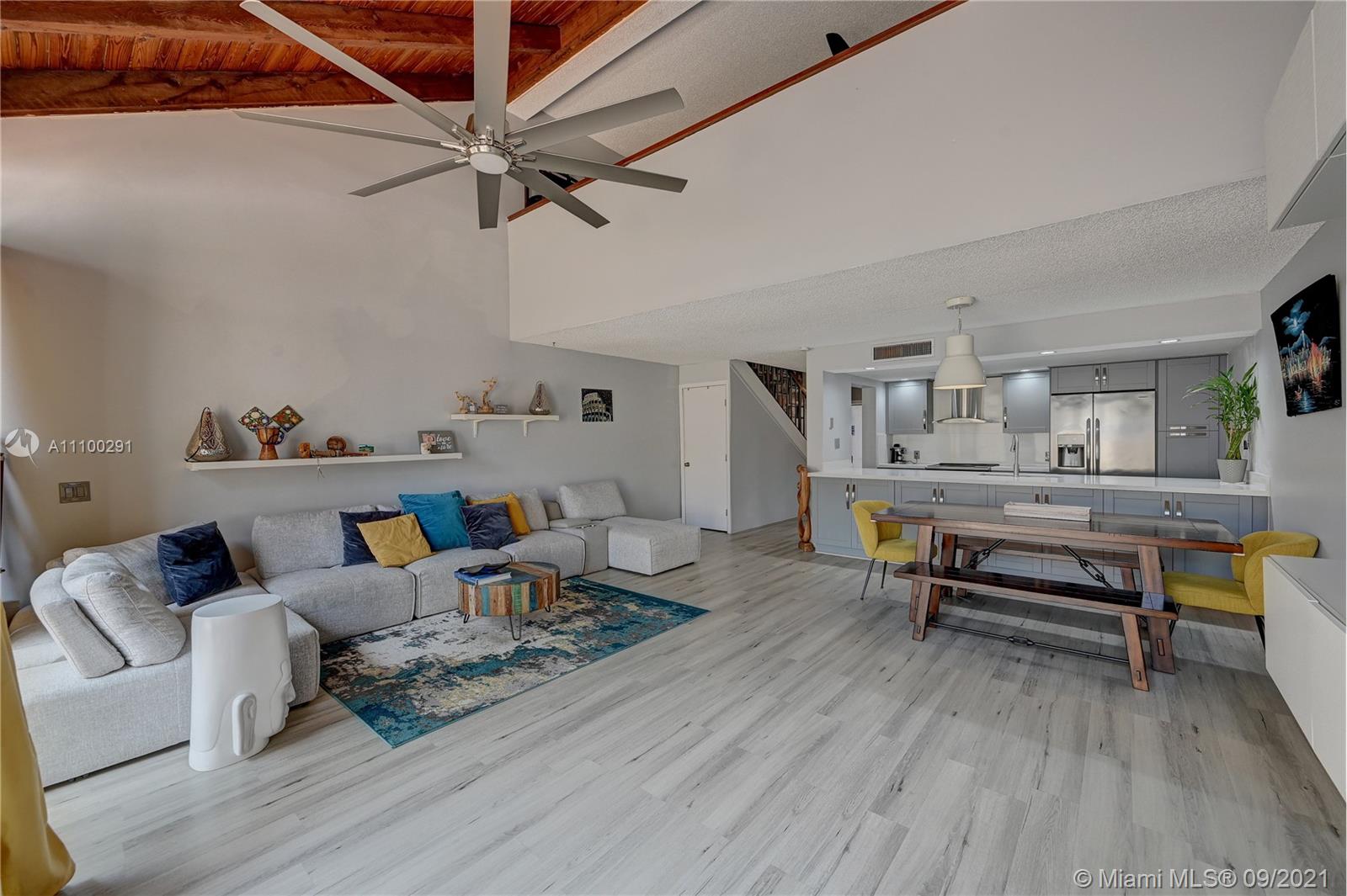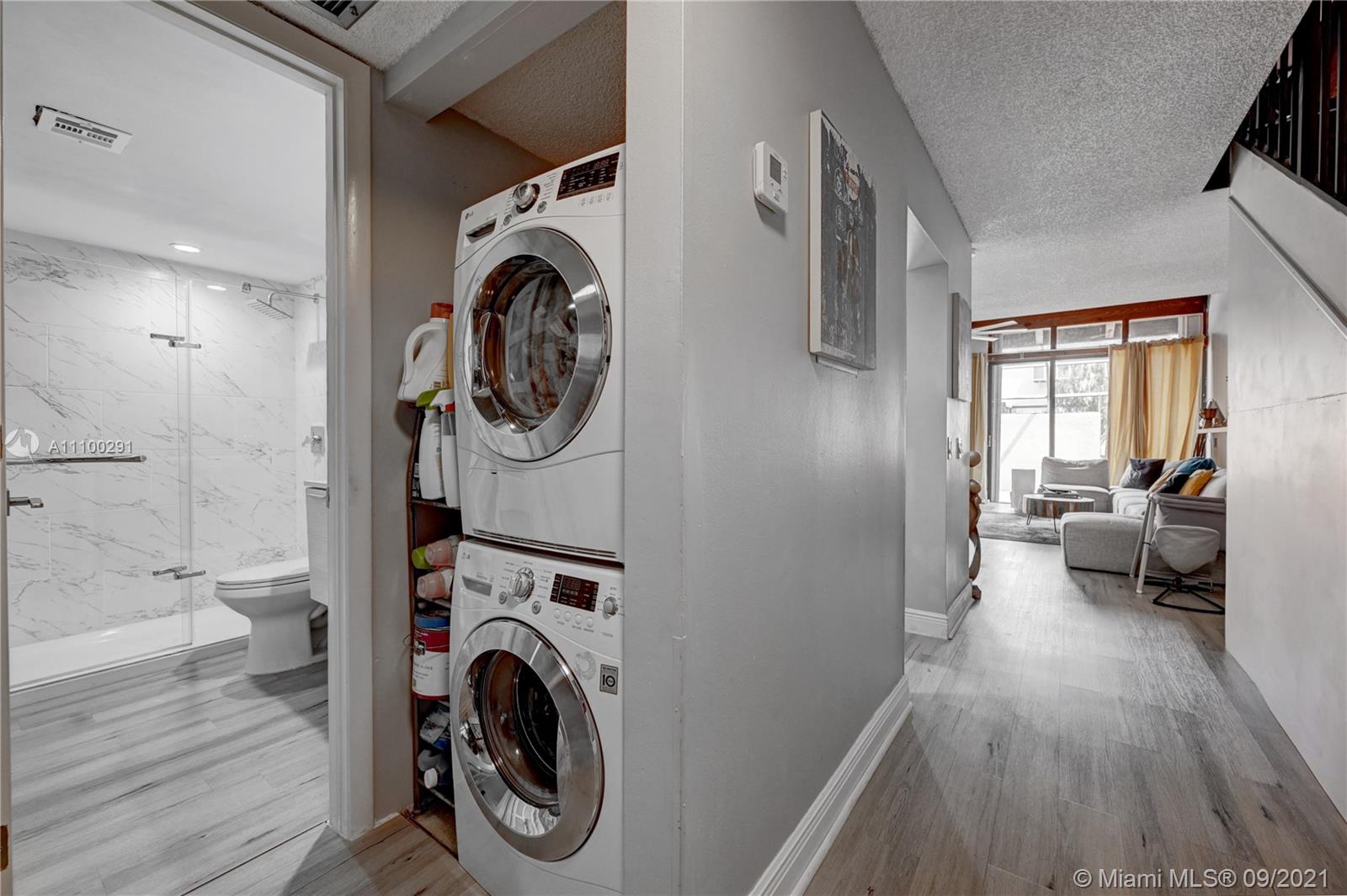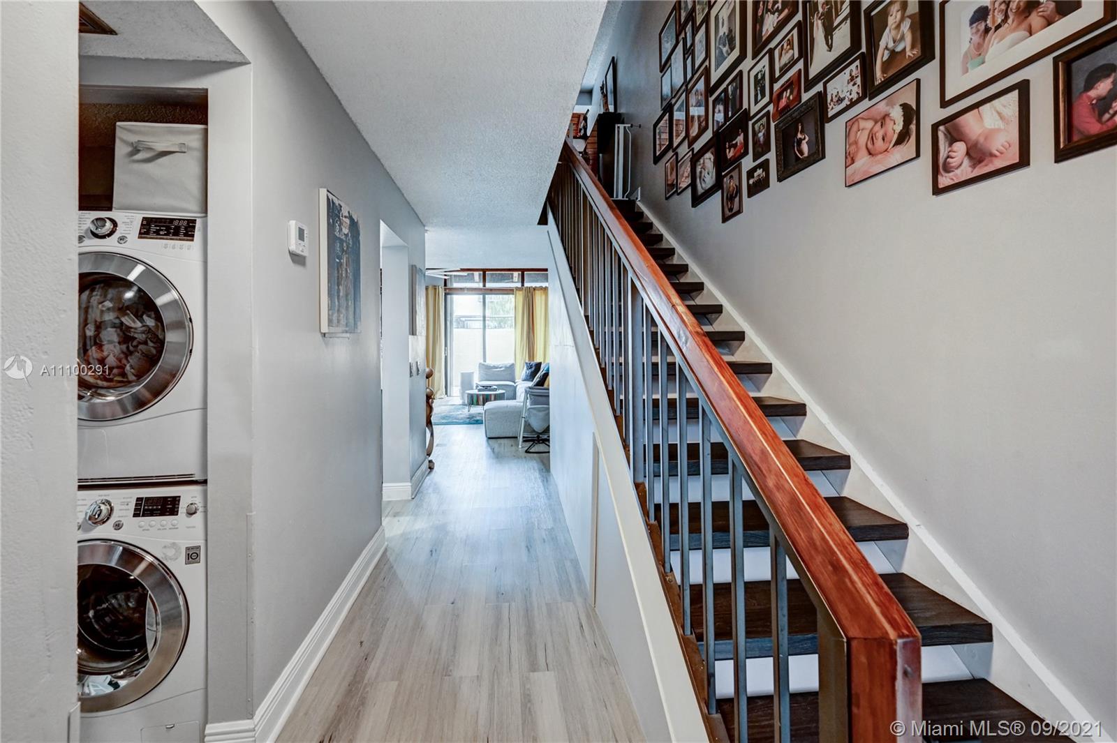 Come see this beautifully renovated townhome in the heart of Pembroke Pines. This corner townhome features a very open and inviting floor plan with 2 ample bedrooms (oversized master), 2 remodeled bathrooms, laminate wood flooring throughout, tastefully remodeled island kitchen that offers clean and modern finishes with cabinet lighting and beautiful quartz countertops, stainless steel appliances, fully built-in closets, plus a huge bonus closet under the stairs. The washer and dryer have been conveniently relocated to its own laundry space, which is a very unique feature of this home, too. Outside, you will enjoy the screened in and large private area for entertainment or walk about 150 feet to the community pool. 2 assigned parking spaces, lots of guest parking. A+ Schools. LOW HOA!