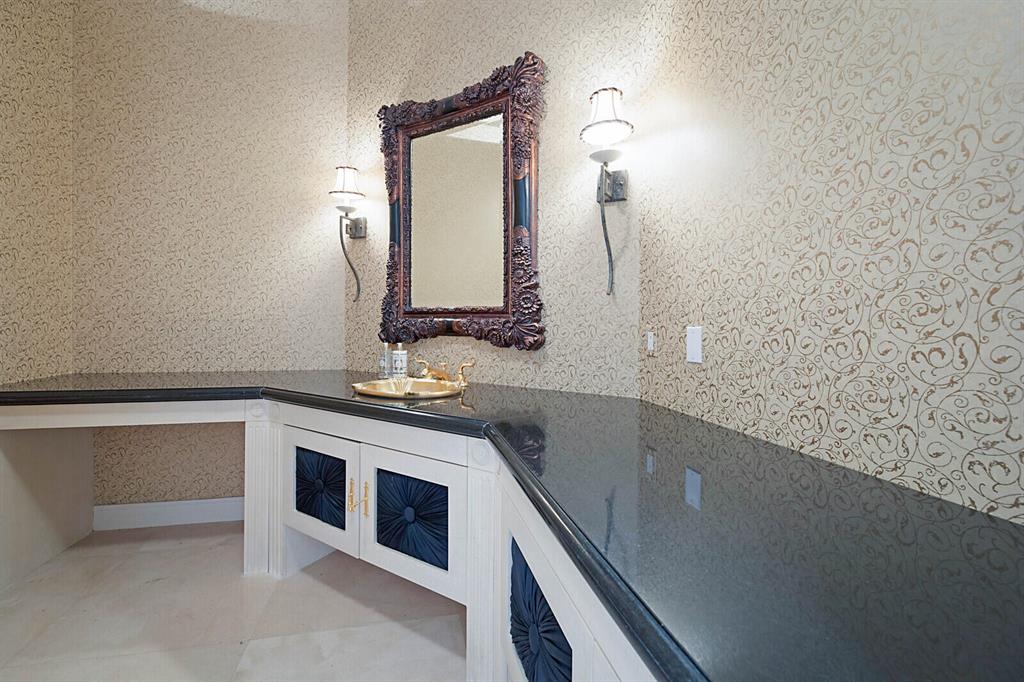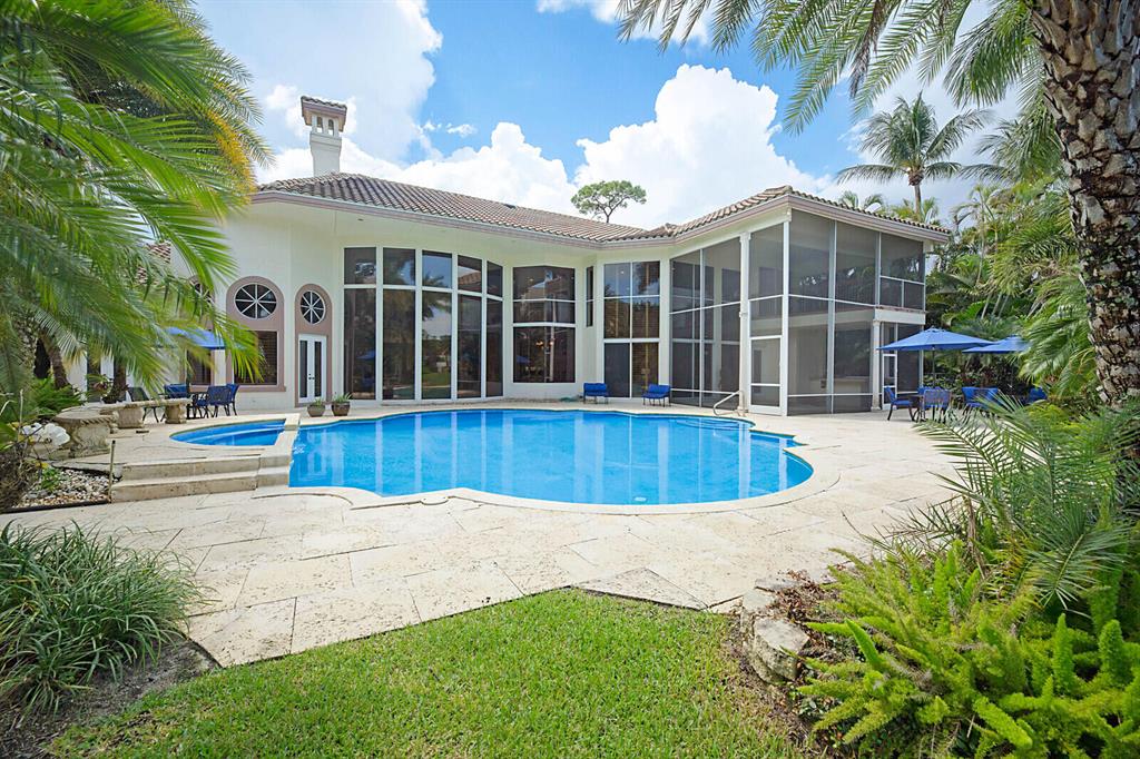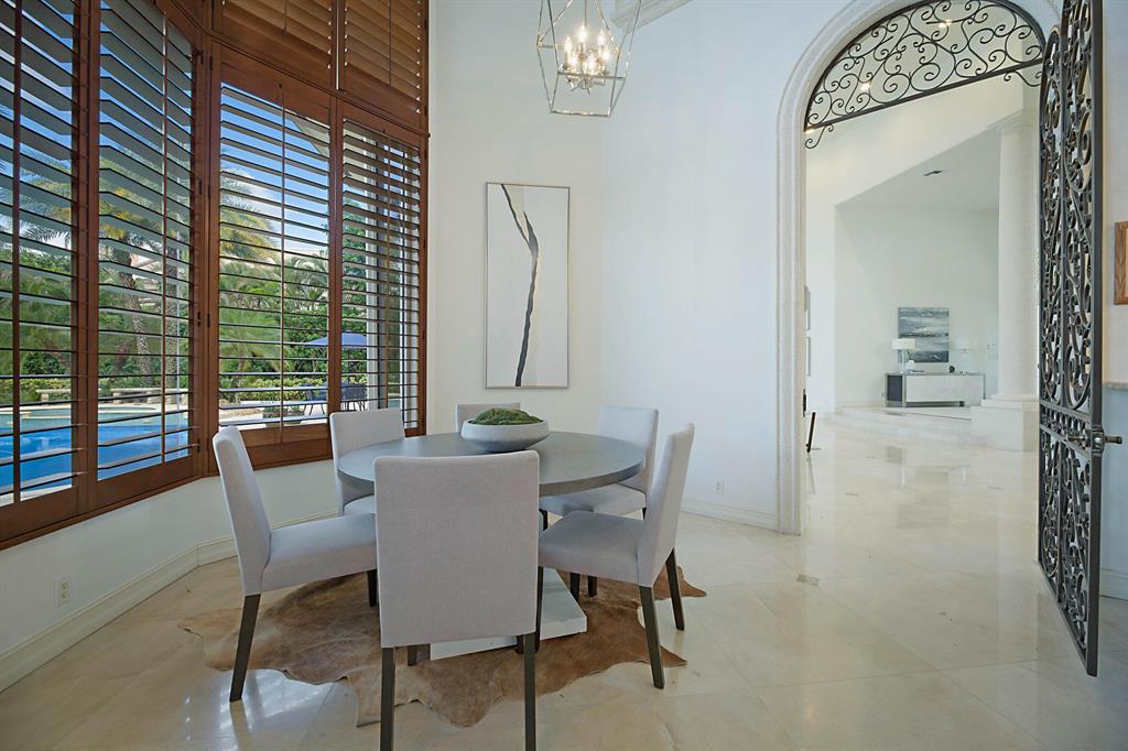 The Island, a private gated subdivision with only 12 custom homes with lake and golf course views is the jewel of Boca West Country Club. Exceedingly private and beautifully landscaped this rarely available home boasts 7728 square feet of living space plus 5 garages. Nestled on a .66 acre lot this stately home features 5 bedrooms, 7 and half baths, library, home theatre, wet bar, gym and elevator. Drive up to the porte-cochere and enter the home though its gracious foyer, where the home's character, style, and quality are immediately apparent. The 19 foot long foyer opens to a spectacular open-plan main living area withliving room, dining room, bespoke grand staircase and the most magnificent view of the backyard with lake and golf course views.