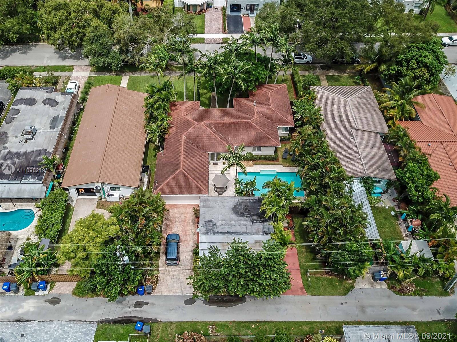 GREAT OPPORTUNITY IN THE HEART OF HOLLYWOOD LAKES! MAIN HOUSE 3BED / 2BATH FORMAL LIVING ROOM AND DINING ROOM ~ VOLUME CEILINGS ~ WOOD FLOORS ~FAMILY ROOM WITH BEAUTIFUL TERRAZZO FLOOR ~KITCHEN FEATURES WHITE CUSTOM CABINETS, STAINLESS-STEELAPPLIANCES, GAS STOVE AND ISLAND WITH SITTING AREA ~ BEAUTIFUL SALT WATER HEATED POOL WITH WATERFALL SURROUNDED BY TRAVERTINE PATIO AND ROOM FOR OUTDOOR SITTING AREA GREAT FOR ENTERTAINING ~TROPICAL LANDSCAPE ~ PRIVATE FENCED BACK YARD ~ 2 CAR GARAGE ~ SPACIOUS DRIVEWAY IN THE BACK FOR AT LEAST 4 CARS. GUEST HOUSE OFFERS SPACIOUS 1BED / 1BATH GRANITE COUNTERTOPS, STAINLESS-STEEL APPLIANCES ~ TERRAZZO FLOORS THROUGHOUT ~ FENCED BACK YARD ~1 CAR DRIVEWAY ~ NEWER ROOF AND A/C ~ SEPARATE ELECTRIC METER ~WALK TO LOCAL PARKS/DOWNTOWN AND BIKE TO THE BEACH