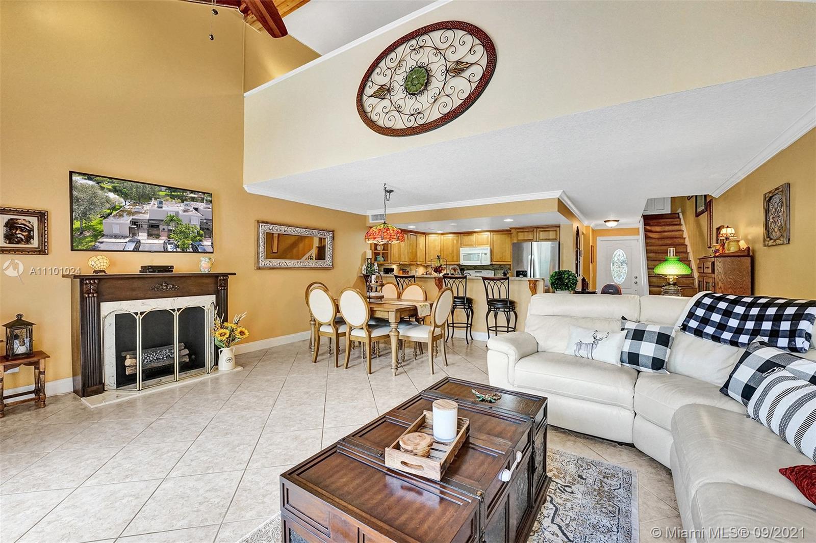 Enjoy outdoor living & beautiful water views - your own private oasis! This gorgeous home features 3 bedrooms, 2 bathrooms, tile flooring throughout spacious living areas & high vaulted ceilings - perfectly light & bright! The generously sized kitchen showcases granite countertops & snack bar with additional seating. Full bedroom & full bath on first floor! Upstairs, enjoy amazing water views from the master bedroom! With an extended screened patio perfect for BBQ & a large yard with wide water views, this home is ready for entertaining! Impact windows and accordion shutters for convenience. Amenities include cable, pool, basketball, racquetball, tennis & exterior painting! Excellent location close to great schools, shopping, dining, parks & more!