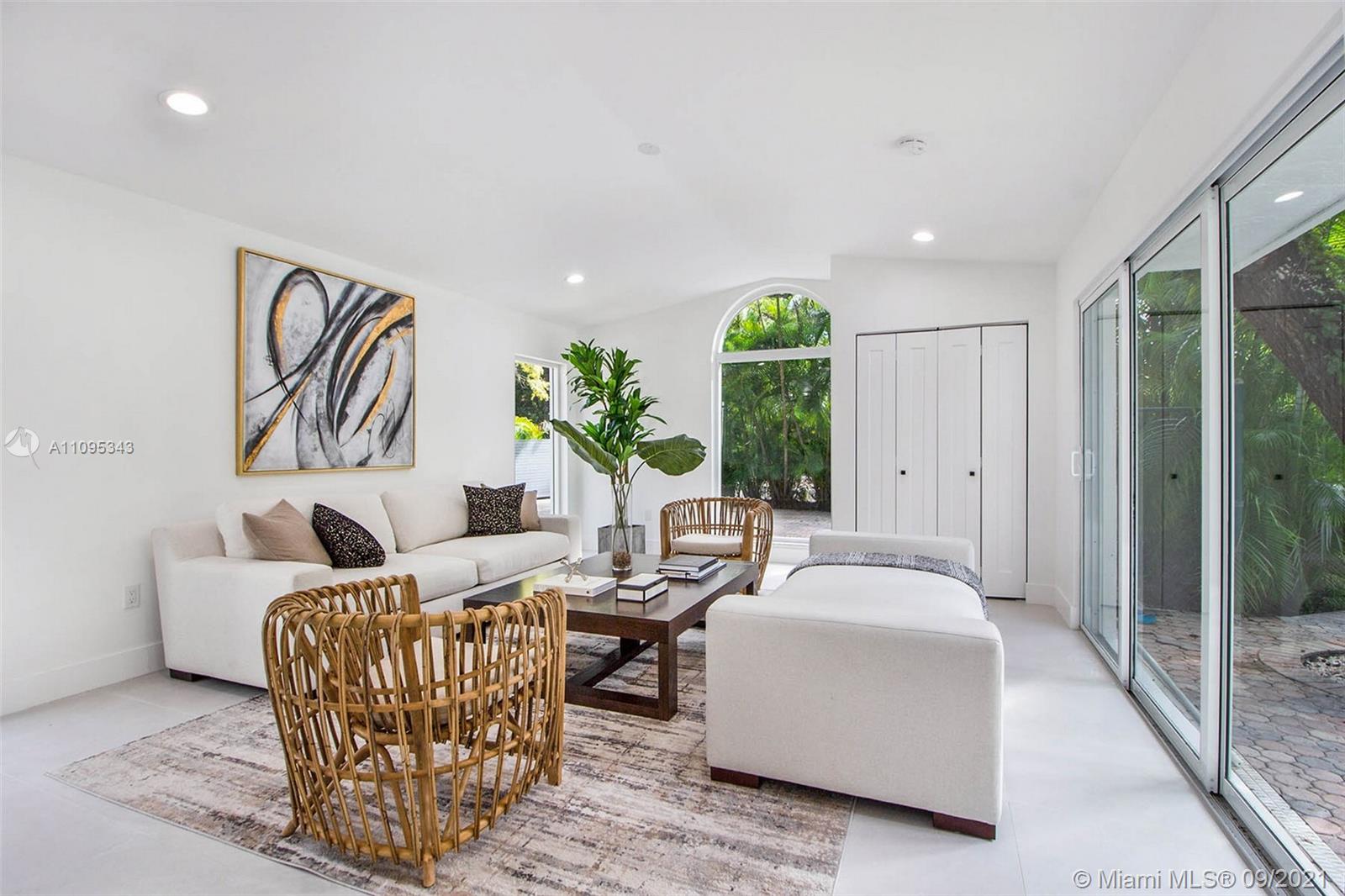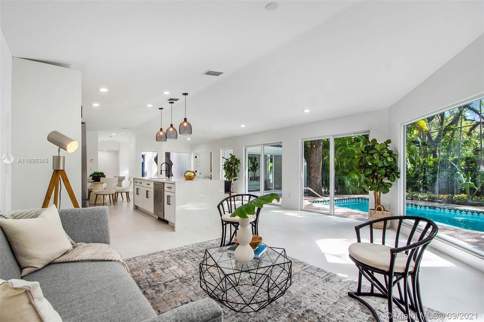 Retreat to your private tropical paradise in South Coconut Grove just masterfully renovated with new open kitchen, modern bathrooms and all new impact glass windows. Encompassed by spectacular mature foliage and Oaks this one story corner residence will overwhelm you with the love to not leave home. Huge banks of windows provide breathtaking views of the green gardens and swimming pool from every room. Designed by owner for his family with impeccable attention to contemporary details and craftsmanship. 4th bedroom may be used as media room. Pull into the spacious parking behind an electric gate and walk or bike everywhere in the Village of the Grove. Central location in the middle of all the best Miami urban neighborhoods.