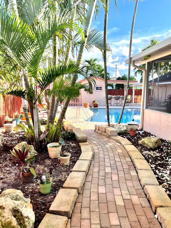 COME FALL IN LOVE with this 3/2.5 + office pool home that will leave you amazed. Walk into an oversized living room with French doors overlooking the pool. For the chef of the family this is the kitchen for you: large, spacious, gas stove w/ kitchen hood, microwave and wall ovens, large bar island and lots of cabinet space. Large master bedroom suite w/ huge walk in closet. Bathroom suite w/ separate toilet area and jetted tub separate from shower. Walk upstairs to your own private office space (furniture included). Backyard fit for family gatherings.Screened patio separate from the pool. Full detached cabana bath for all your pool guests. Crown molding, base boards, chair rails, and recess lighting throughout. Manicured lawn and palm trees. Paved driveway for up to 8 cars. WON'T LAST!