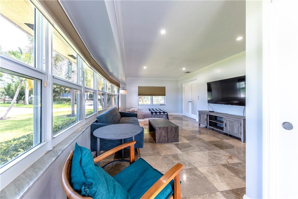This open floor plan 3/2 home is perfectly located 1 home off Lake Santa Barbara. You are surrounded by multi million dollar homes. You get a glimpse of the ICW and fabulous views. This updated home offers a custom modern kitchen, high-end stainless appliances & breakfast bar, marble & real wood flooring throughout, updated baths, & impact windows/doors T/O. The home offers lots of charm & sense of class & style. Lovely corner w/lots of space to create your tropical private pool oasis(variance approval in the works) and just steps to the sand. A full set of plans for a 4th bedroom & bath comes with the sale. Walk or take your golf cart to all shopping, entertainment, golfing & miles of inviting white sandy beaches. Located in the multi million$ CRA redevelopment project. Ask for details