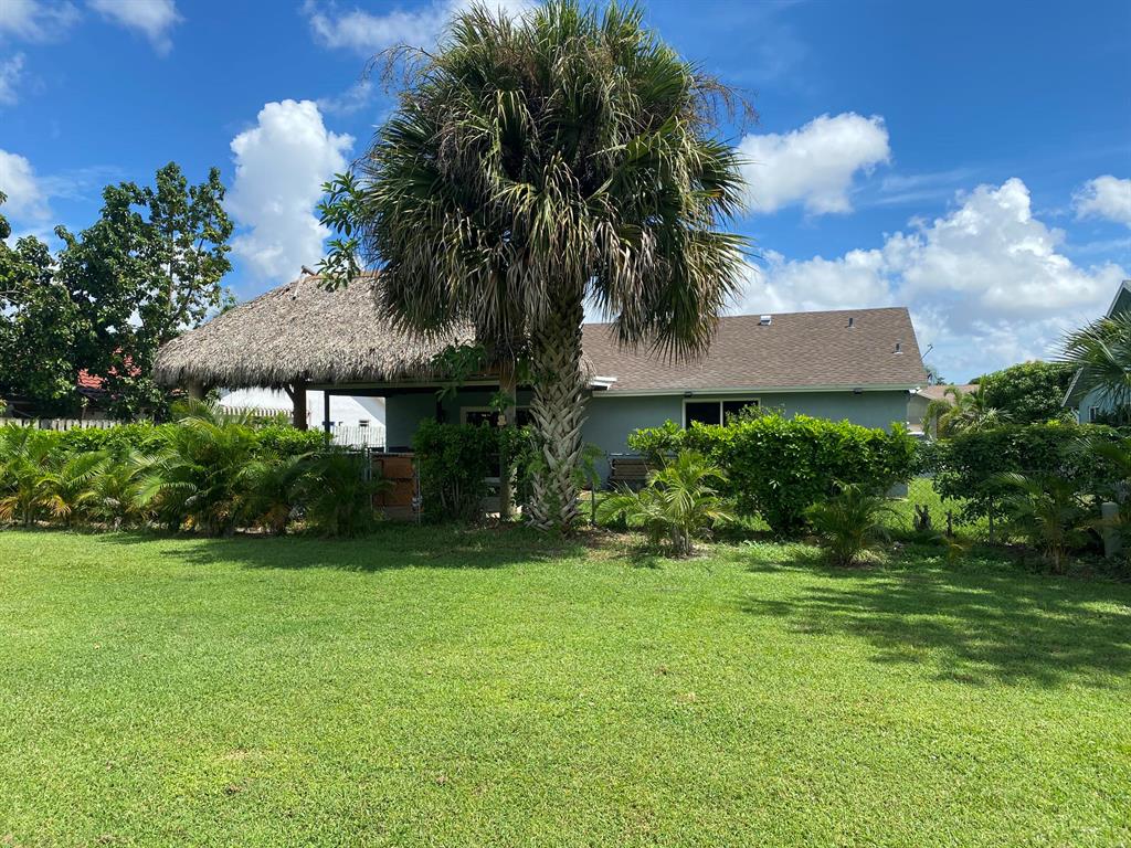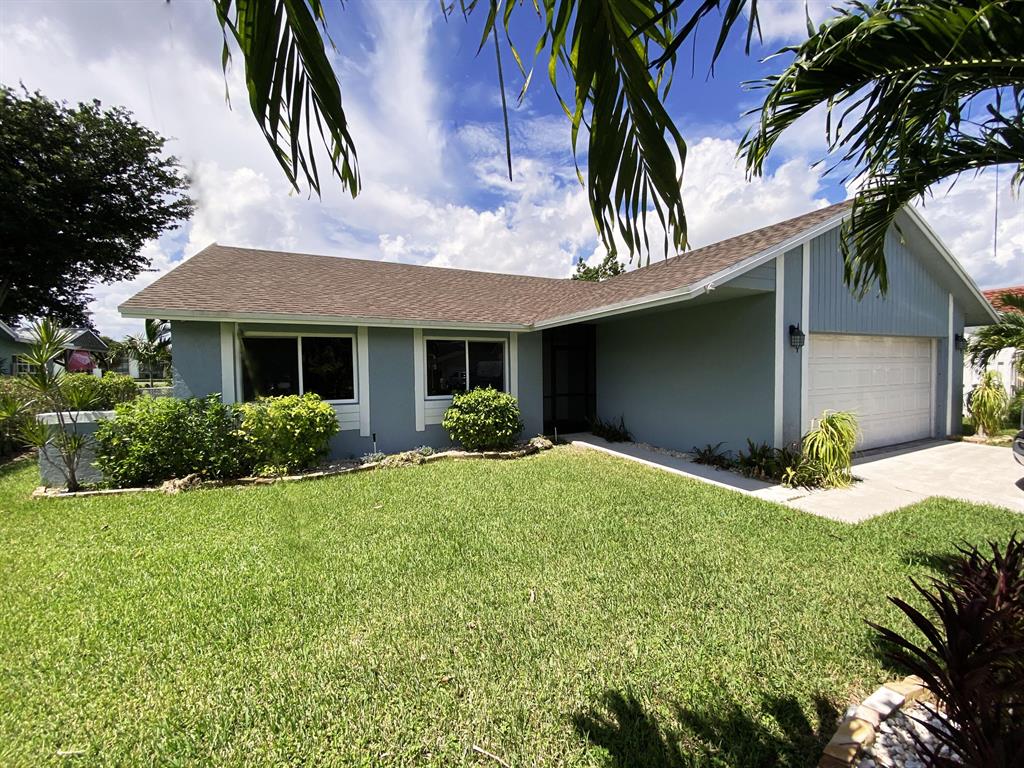 Sitting on the fairway of the Boca Dunes Golf course is this totally renovated 3/2 home complete with your own Tiki hut and outdoor fun area. From a newer roof, full impact resistant windows, all new closets, and all new kitchen appliances, this home is move in ready and stress free for years to come. If pictures are worth a thousand words, look at the spectacular views and amenities this home and the area offers. Perfect AIRBNB, retirement home or family friendly complete with a fenced in backyard. This home is currently the only home listed in the Sandalfoot Cove community and free from any HOA's.
