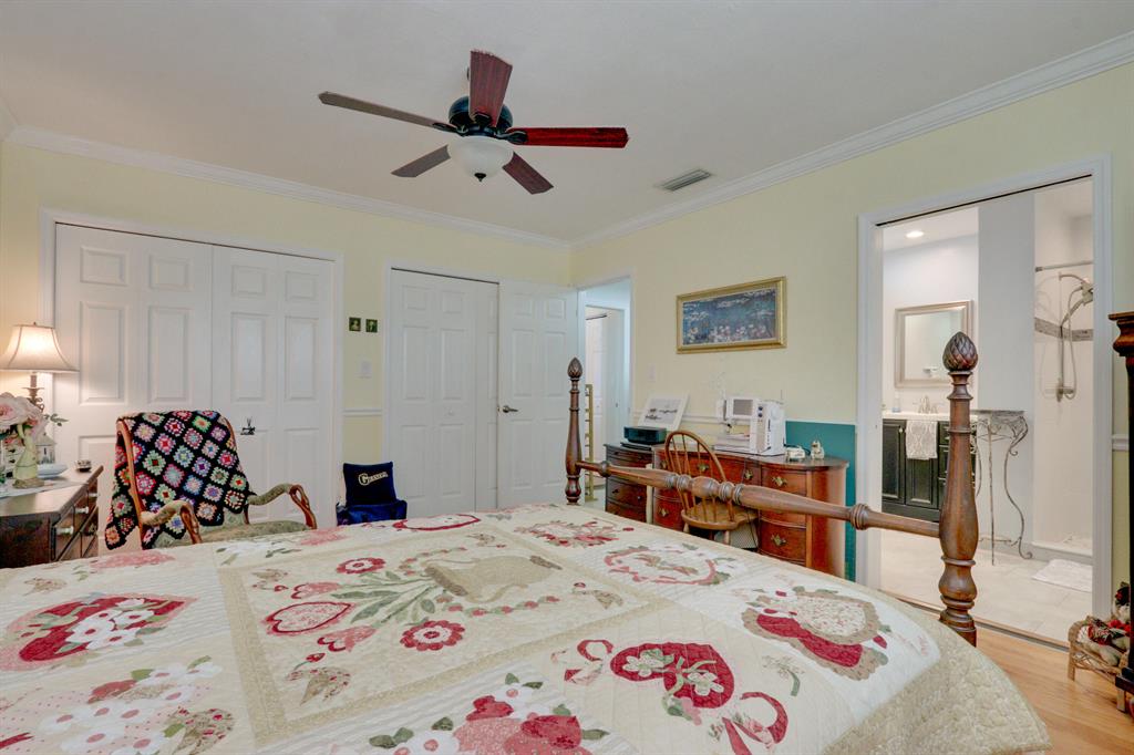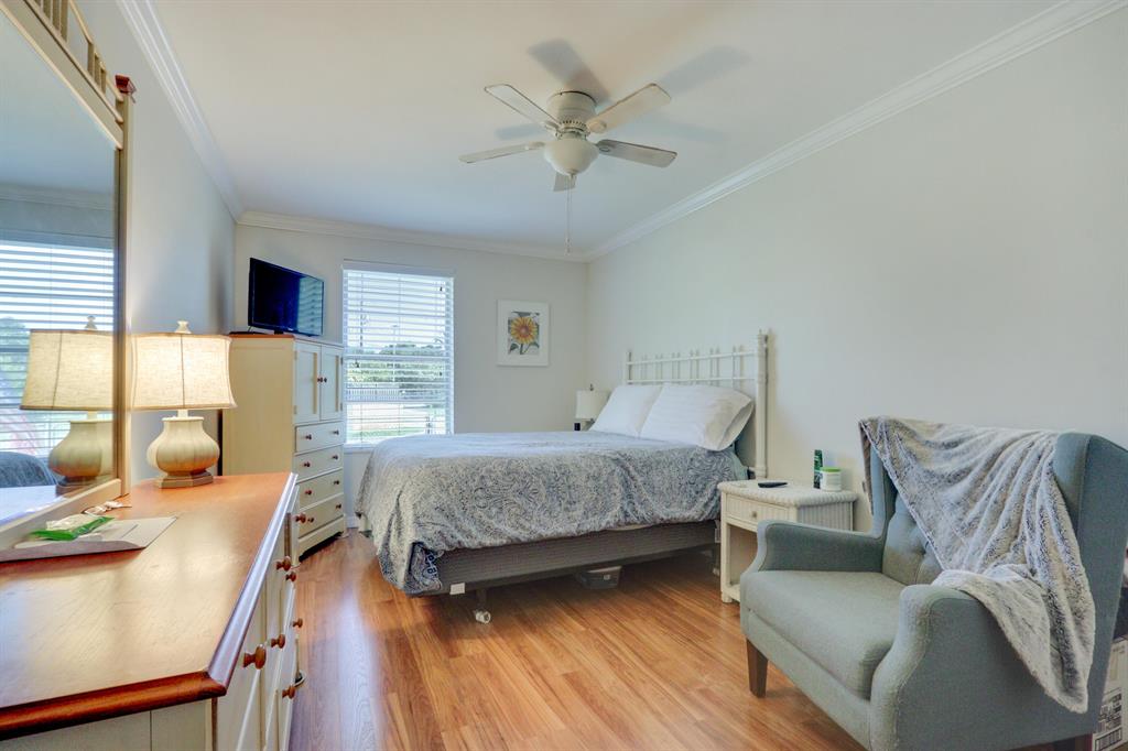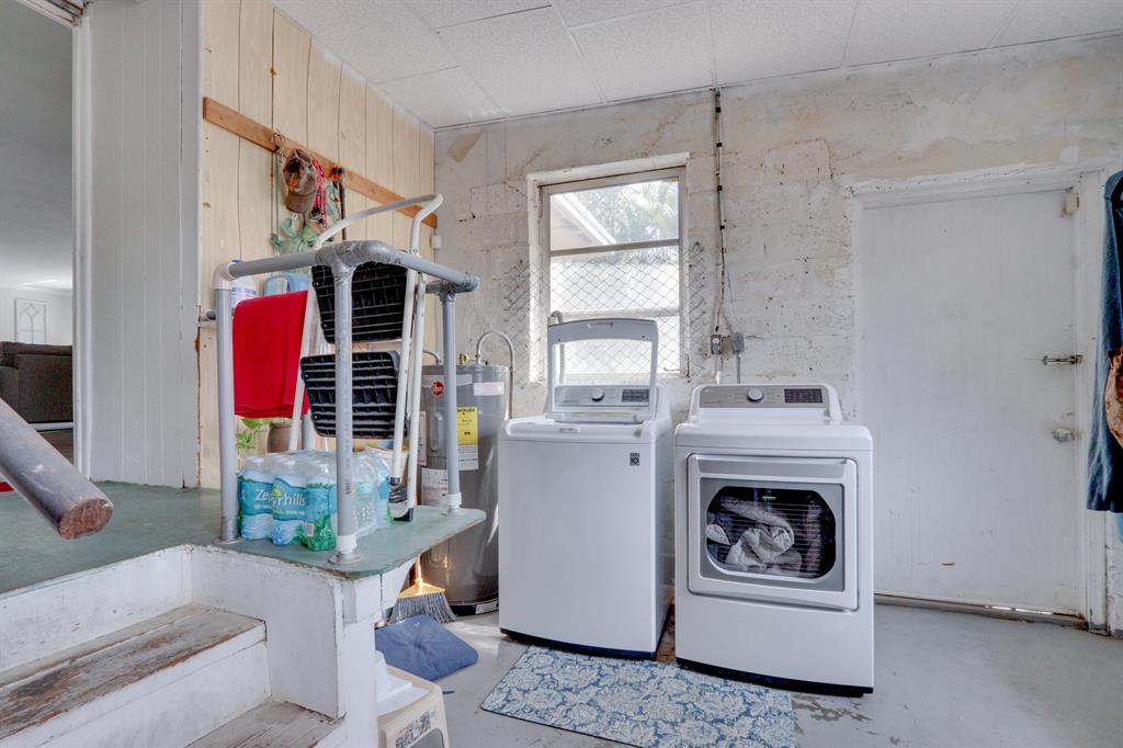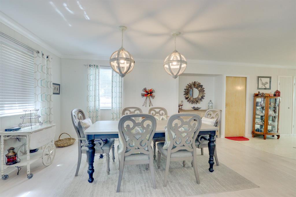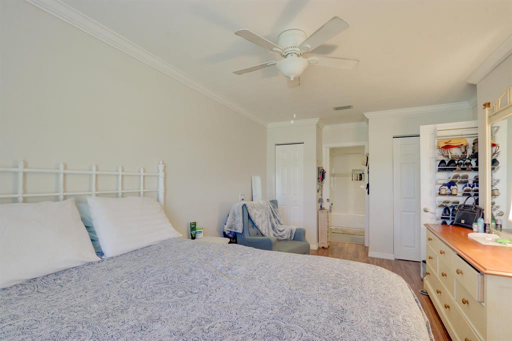 Immaculate and ready to move into. This large 2 bedroom (could be converted back to 3 bedrooms) home is conveniently located on a one way in, one way out street. The living room/dining room is extremely large and has new crown molding, trim and wood floors. The kitchen is large and has new stainless appliances, a pantry and a center island. There are new built in cabinets between the kitchen and bedrooms. Both bedrooms are spacious, have wood floors, crown molding, new fans and new closet doors. Both baths have been updated. Step down into the very large laundry room with a working shower. The large covered, screened patio that has recently been updated and redone within the last year. The flat roof is new in 2021. Hot water heater is 2 years old. A/C is 5 years old.