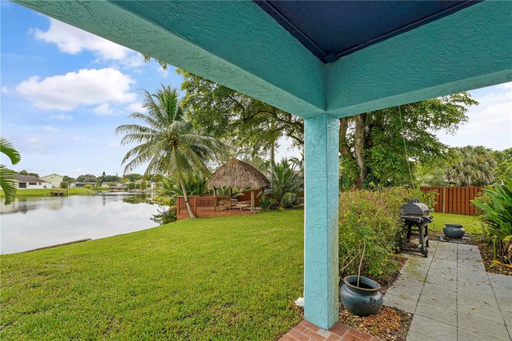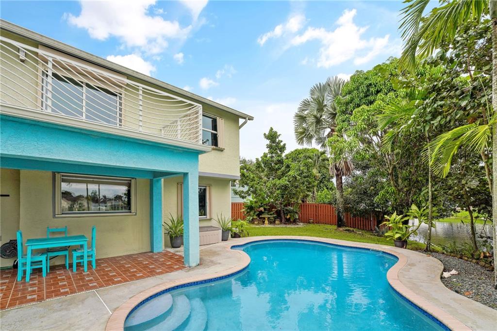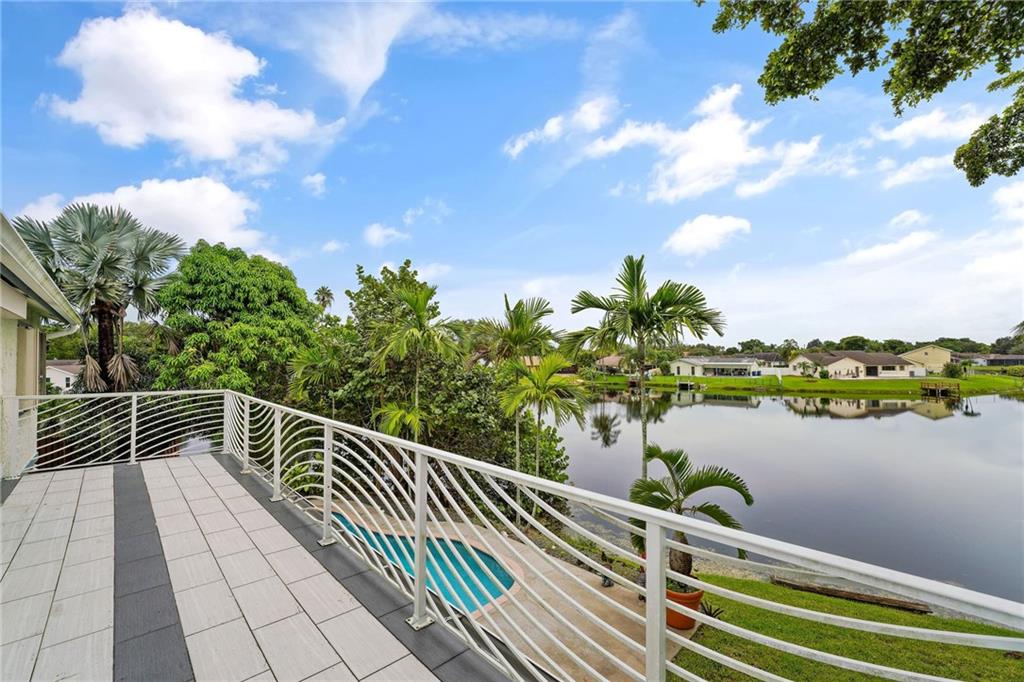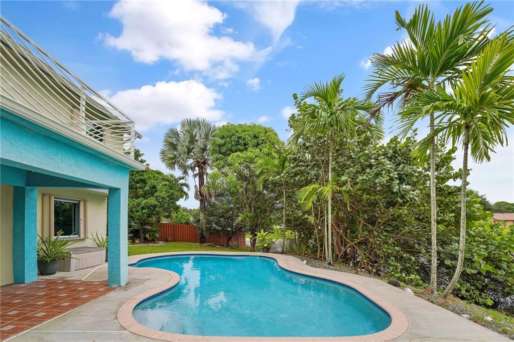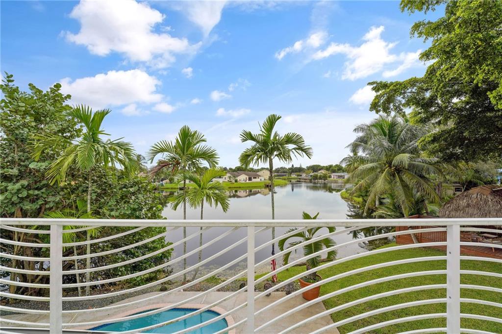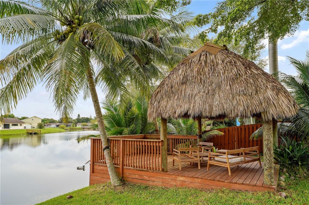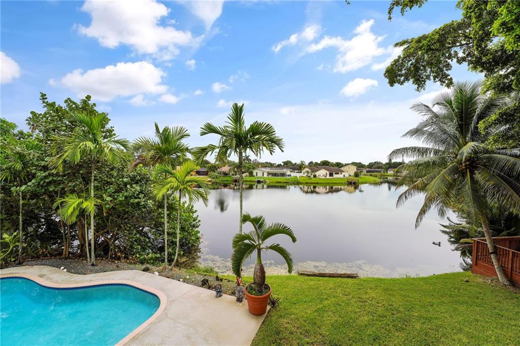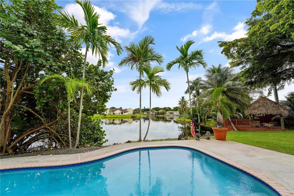 Wide water view home on a cul de sac in Timberlake! Huge 12,059 square foot waterfront lot with pool. 4 bedrooms with additional office space, used as a 5th bedroom. Large 2 car garage and tool shed. Vaulted living room ceilings and enormous deck on the second floor, overlooking the pool and water. Custom deck and tiki hut overlooking the water. Avocado, mango trees and plenty of generous yard space left over for gardening, or entertaining. A rated public schools nearby. Don't blink. This house will sell fast.