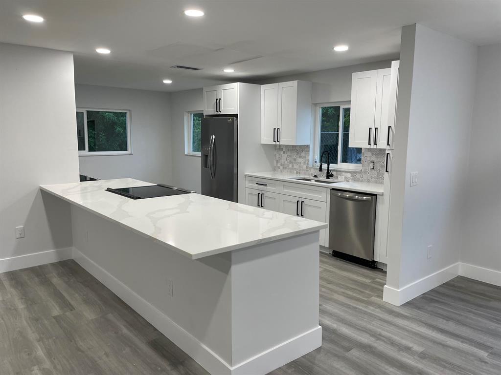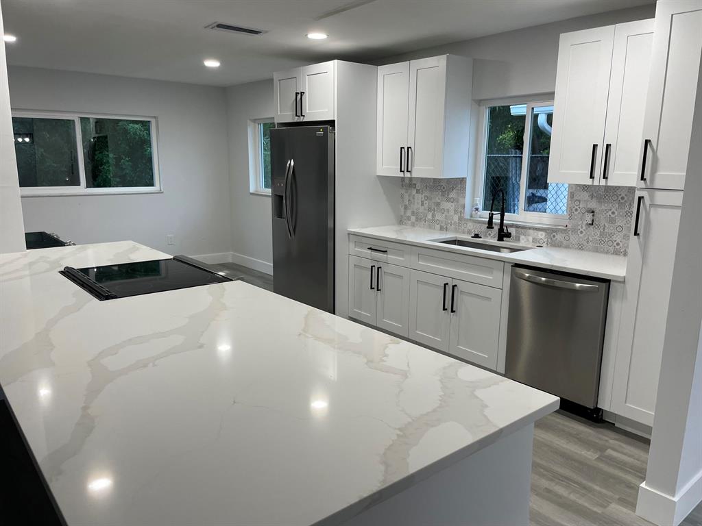Completely Remodeled 3 Bedroom 2 Bath House with 1 Car Garage and Fenced Yard. Brand New Kitchen with White Wood Shaker Cabinets and Calacatta Quartz Counters. Stainless Steel Appliances. Remodeled bathrooms and Floors. Impact Windows.