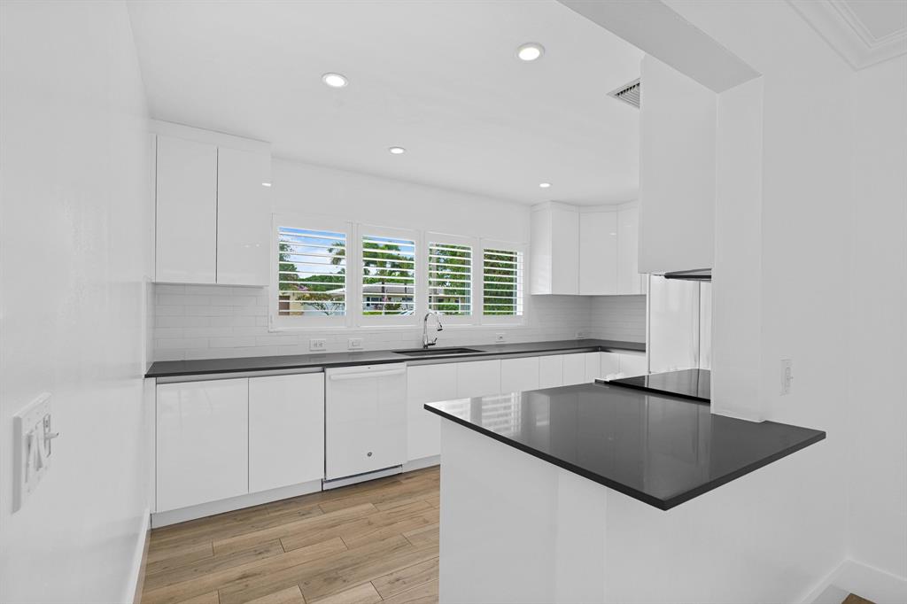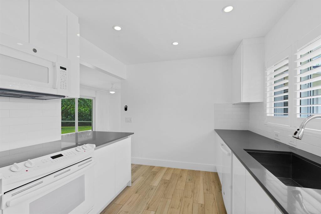 Nestled in the heart of East Boca, you will find this fully updated 2 bedroom 2 full bath home located on a quiet street in the highly desirable neighborhood of Boca Square. This mid-century modern home boasts an open floor plan with tile flooring throughout. The kitchen and bathrooms have been fully updated and modernized. All of these upgrades are just under 2 years old. Home features include: Tons of natural light, ALL PGT impact windows and doors, newer AC, quartz countertops, subway tile, custom drapes and plantation shutters. Enjoy the outdoor-indoor living lifestyle with sliding glass doors that lead out into a screened-in patio. Beyond that, there is a spacious fenced-in backyard. The backyard is lushly landscaped, very private, and great for entertaining. Welcome home!