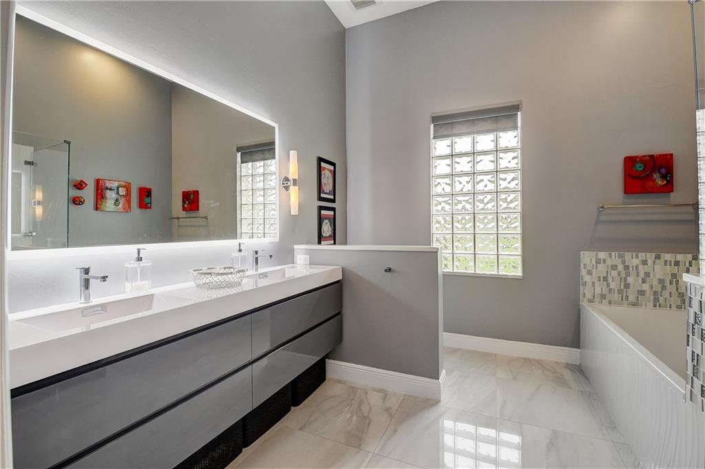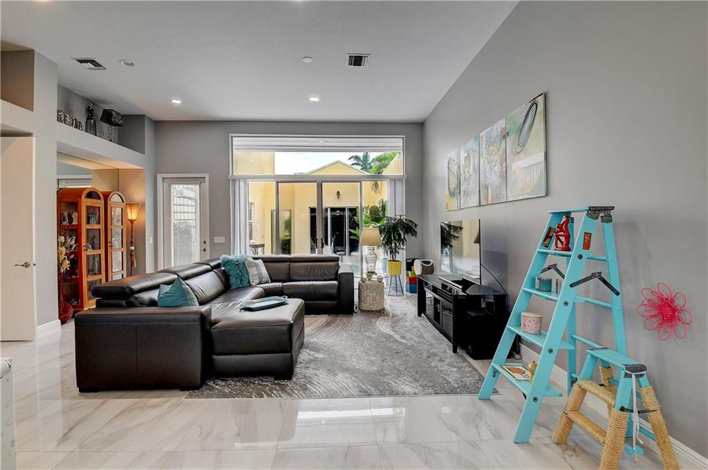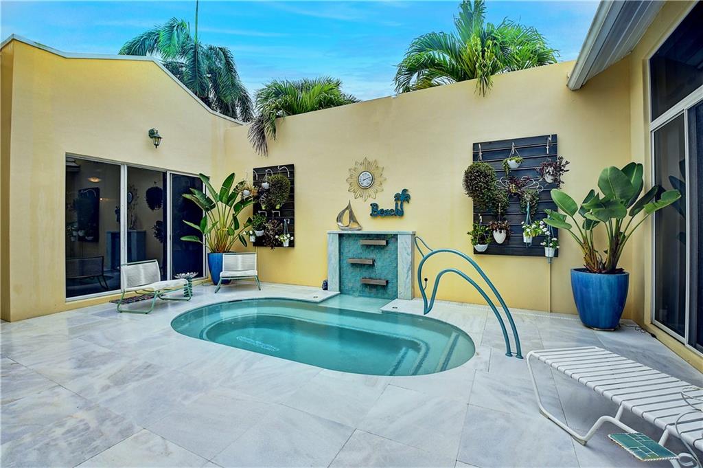 Come experience this luxurious piece of paradise! You’ll immediately fall in love in the courtyard of this COMPLETELY remodeled home when you see the private pool surrounded by white marble decking. Enter the main home where you’ll find volume ceilings, gorgeous rectified porcelain flooring, a modern kitchen with quartz counters & the large primary bedroom suite, with 2 closets & a Kohler 100 gallon soaking tub with heated back. Head through the courtyard to the guest house which features a fully renovated room & bathroom. Finally, take the spiral staircase to the 3rd bedroom (above the 2 car garage), featuring a kitchenette & full bath. Enjoy sights of holes #11 & 12 from the back patio. Country Club membership NOT required. HOA maintains lawn, exterior paint, basic cable & landscaping.
