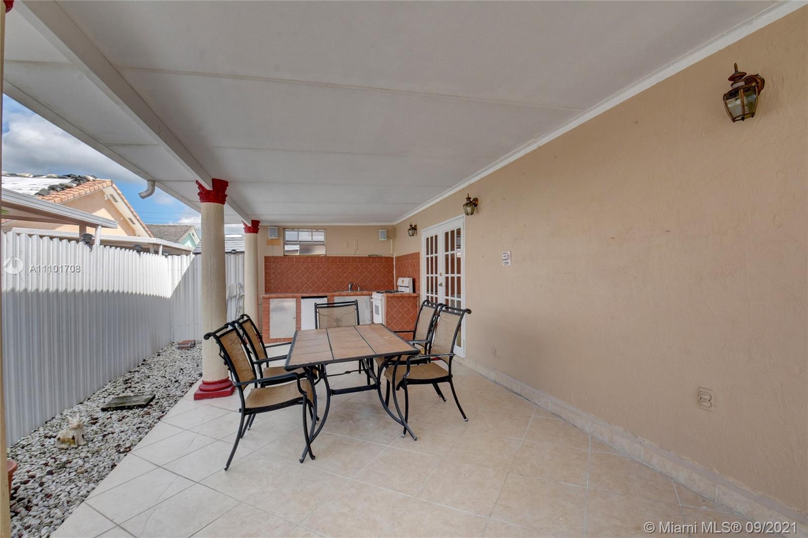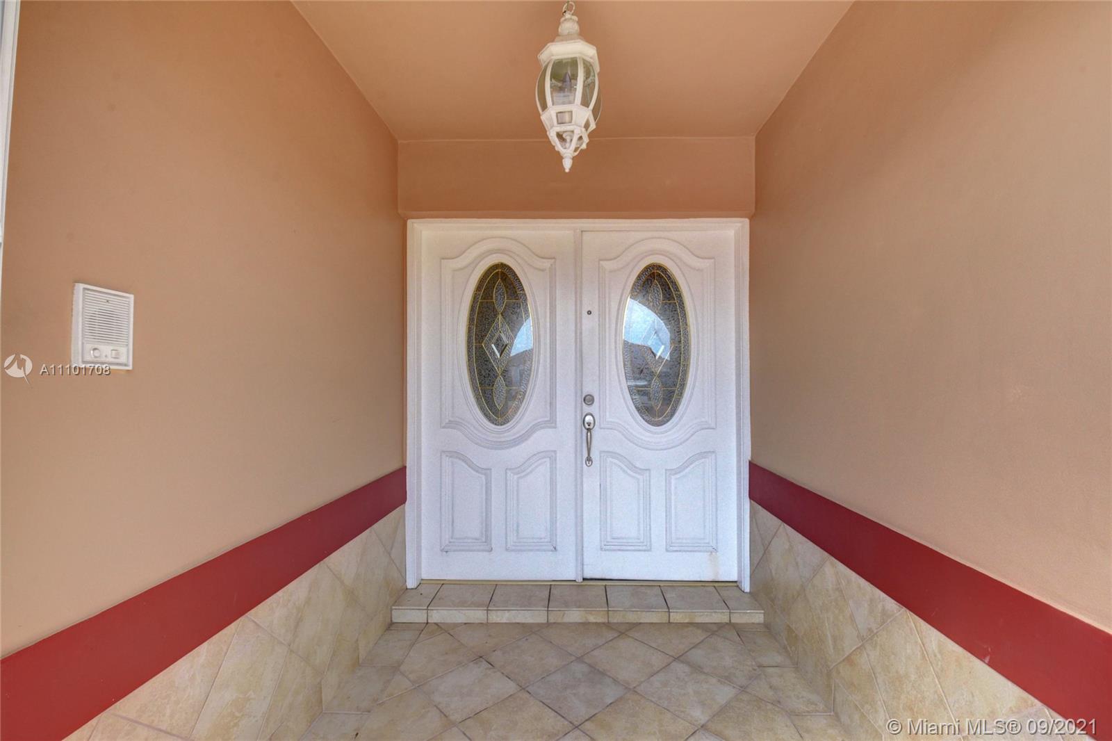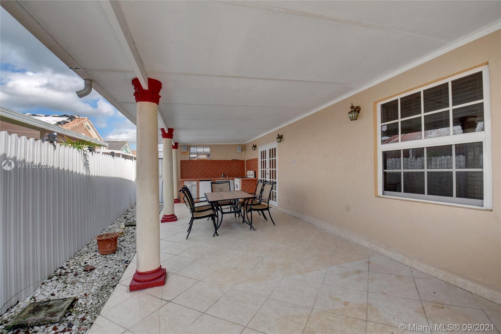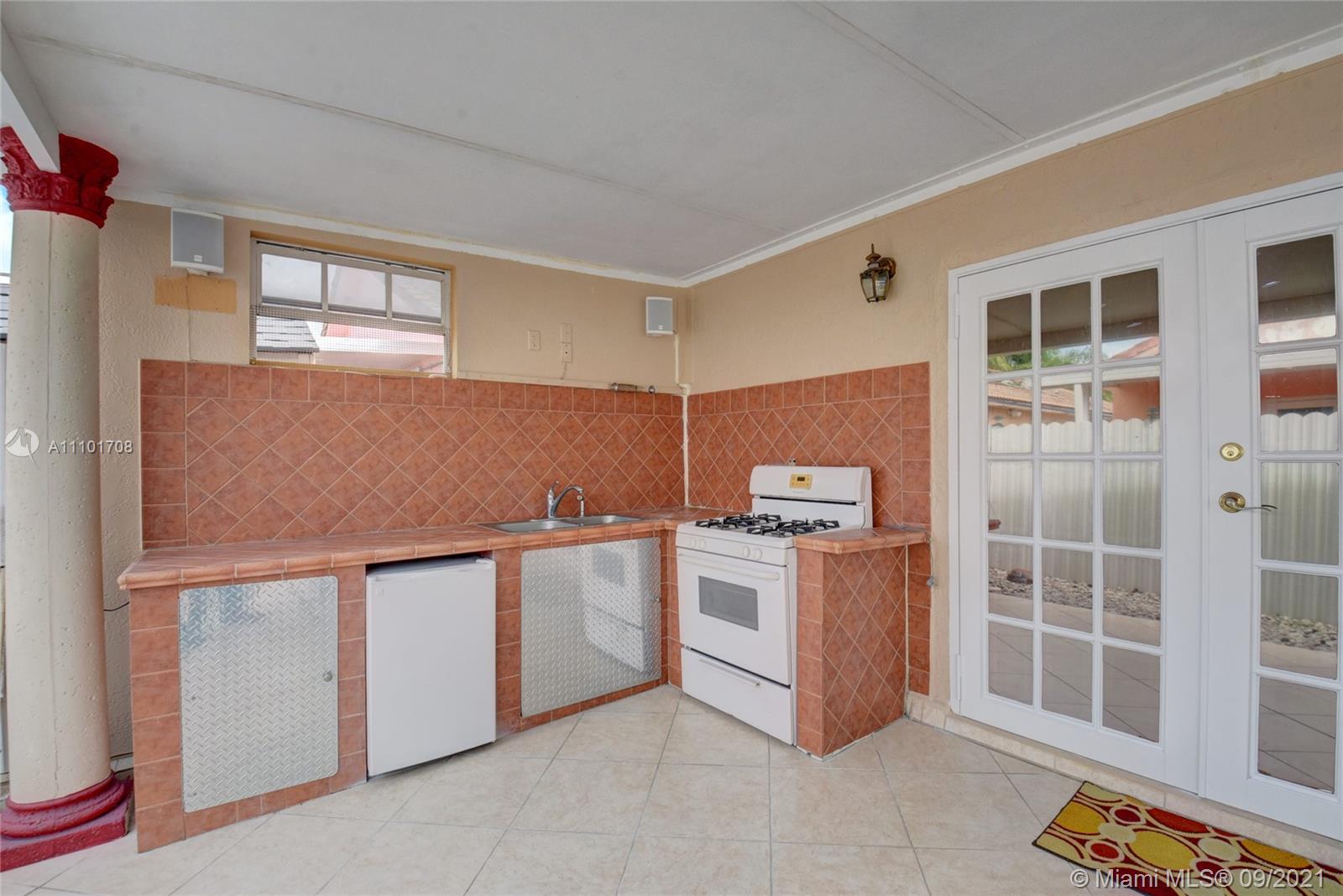 Pride of ownership shows in this well maintained home by the same owner for 26 years. Remodeled kitchen with wood cabinets, marble countertops and stainless steel appliances. Updated bathrooms. Rheem AC installed 2018. Freshly painted interior. Tile throughout entire home. Remote control lights and ceiling fans. Surround sound speakers included. Intercom outside for visitors. Wall to wall mirrors in dining room and entryway. Enjoy the back patio with an outdoor kitchen that includes a gas stove, sink and mini fridge. lighting on the back fence great for enjoying the outdoors at night. Large driveway with a lot of space for parking. Accordian shutter for the front door, also has impact windows. Custom valance in formal living room imported from Cuba. You don't want to miss out on this home!