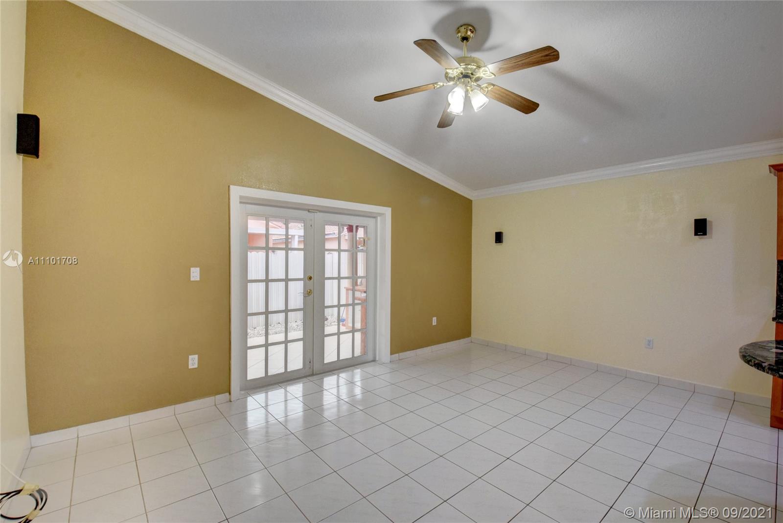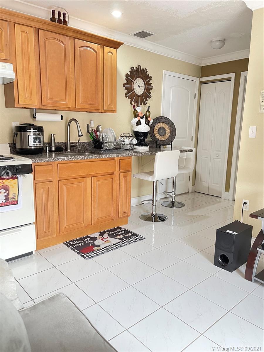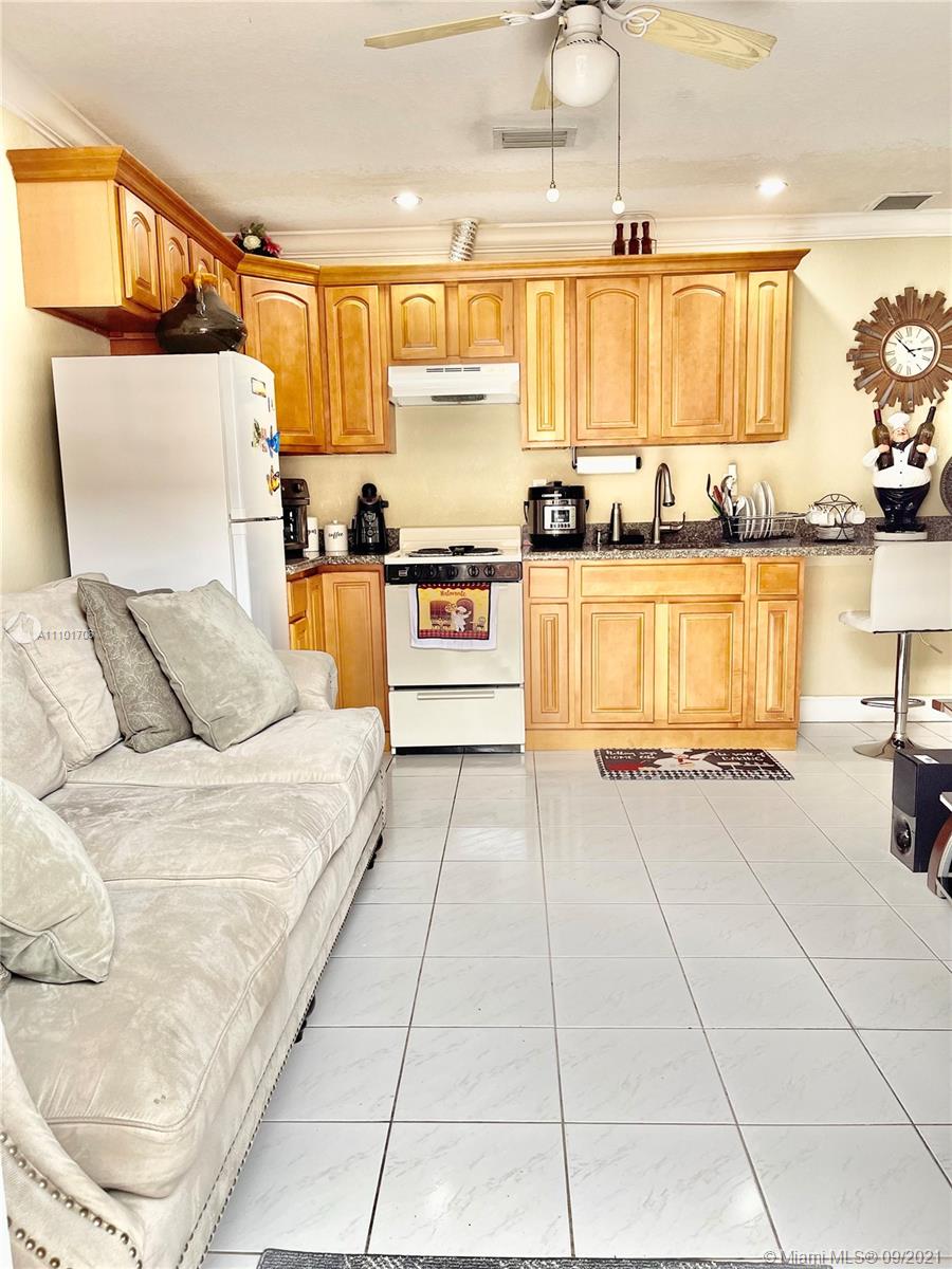 Pride of ownership shows in this well maintained home by the same owner for 26 years. Remodeled kitchen with wood cabinets, marble countertops and stainless steel appliances. Updated bathrooms. Rheem AC installed 2018. Freshly painted interior. Tile throughout entire home. Remote control lights and ceiling fans. Surround sound speakers included. Intercom outside for visitors. Wall to wall mirrors in dining room and entryway. Enjoy the back patio with an outdoor kitchen that includes a gas stove, sink and mini fridge. lighting on the back fence great for enjoying the outdoors at night. Large driveway with a lot of space for parking. Accordian shutter for the front door, also has impact windows. Custom valance in formal living room imported from Cuba. You don't want to miss out on this home!