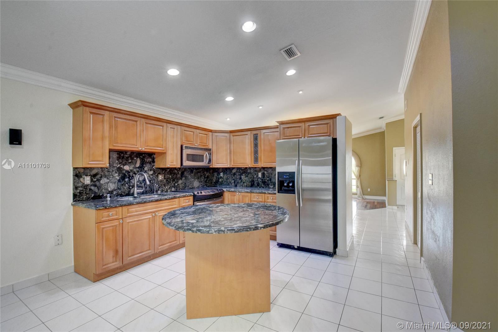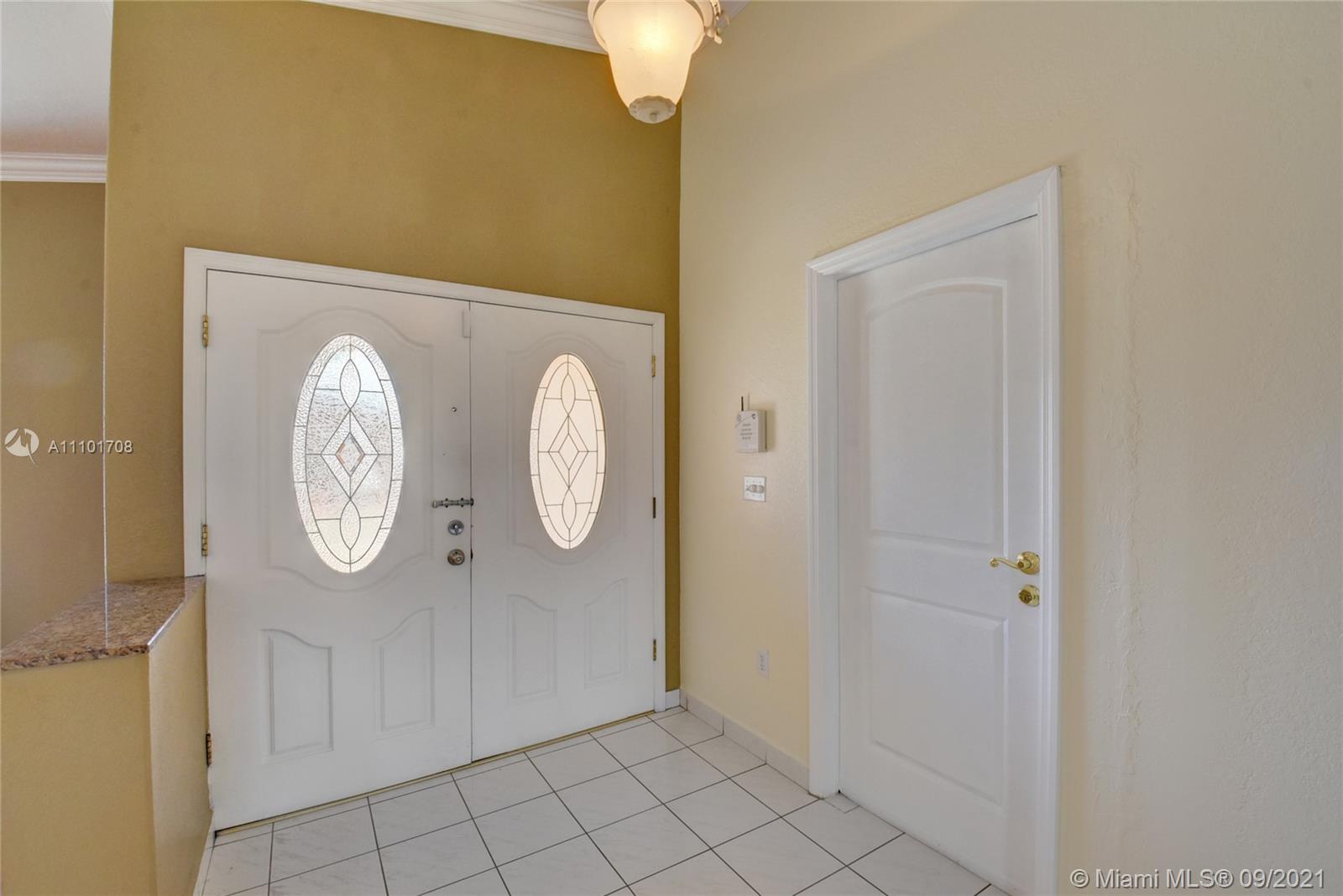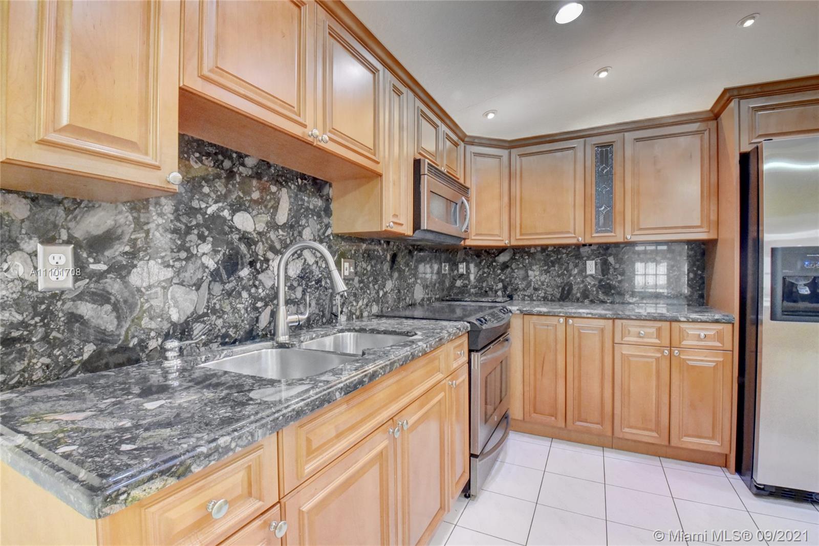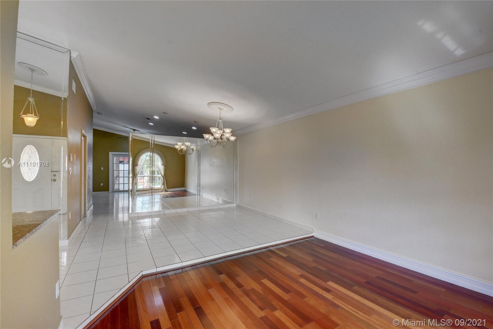 Pride of ownership shows in this well maintained home by the same owner for 26 years. Remodeled kitchen with wood cabinets, marble countertops and stainless steel appliances. Updated bathrooms. Rheem AC installed 2018. Freshly painted interior. Tile throughout entire home. Remote control lights and ceiling fans. Surround sound speakers included. Intercom outside for visitors. Wall to wall mirrors in dining room and entryway. Enjoy the back patio with an outdoor kitchen that includes a gas stove, sink and mini fridge. lighting on the back fence great for enjoying the outdoors at night. Large driveway with a lot of space for parking. Accordian shutter for the front door, also has impact windows. Custom valance in formal living room imported from Cuba. You don't want to miss out on this home!