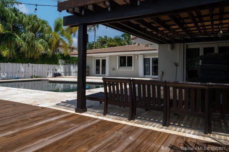 Renovated beautiful modern house w/ the finest taste & materials. Great floor plan -separate master w/ French doors to pool & patio area, formal dining & custom eat-in kitchen w/ stainless steel appliances & natural gas. New baths w/ Italian natural stone/glass mosaic .Heated pool & deck,2-car gar, travertine paver driveway, 2 high energy efficient a/c units. Waterfront Home on a large lot almost 10,000 sqft adjacent to a green area. Located on luxurious exclusive and private gated community Sans Souci Estates. Resort like deck Pool area with sandy tropical Water views and 75ft dockage on a deep wide canal, no fixed bridges to open Ocean at just 10 minutes Equal, with boatlift up to 30,000 lbs boat.