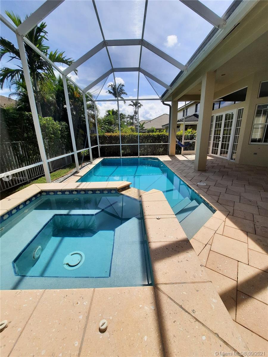Beautiful, 5-bedroom, 3.5 bath, pool home, located in the resort-like community of Savanna. This home features porcelain floors in the living area, carpet and wood laminate in the bedrooms. The kitchen has Stainless Steel appliances and granite countertops, French doors lead to the large, screened-in pool, the split floor plan is perfect for large families. The paver driveway leads to a 2-car garage with painted floor. Interior has just been painted. Savanna has the best clubhouse in Weston, with a heated, lap pool, large common use pool, 3 kids pools, a large water slide, miniature golf, a cafe etc. Located next to Weston Regional Park and the YMCA. Please note, 5th. bedroom is currently and office/den.