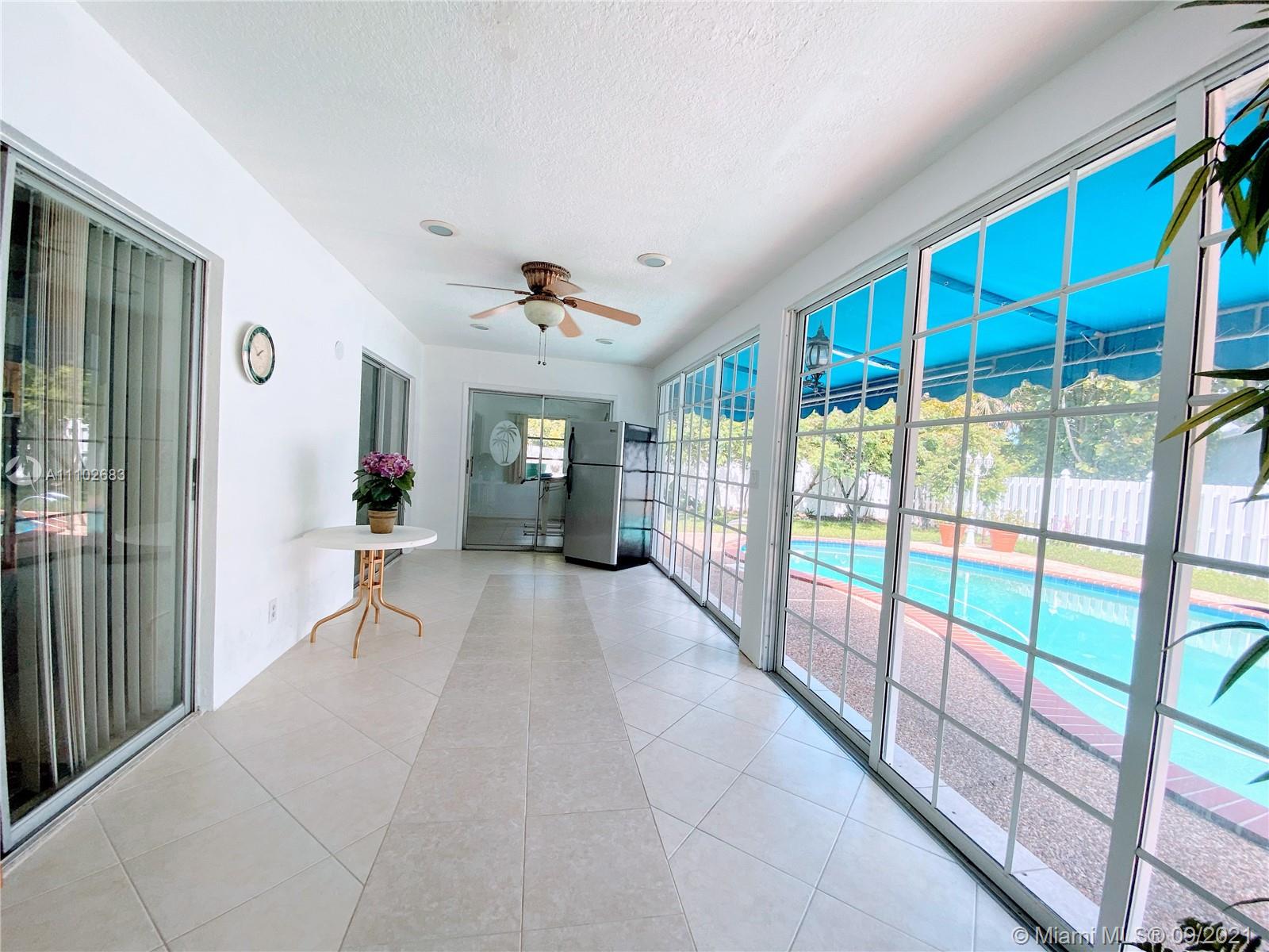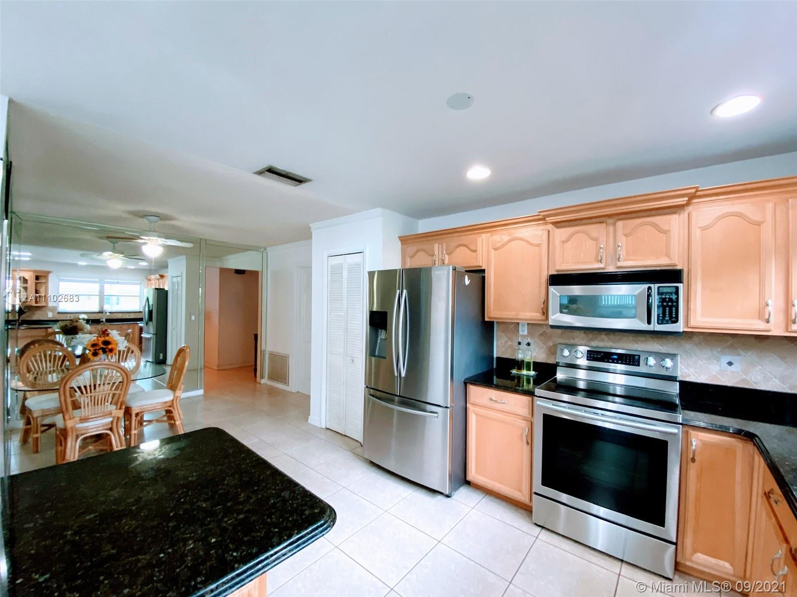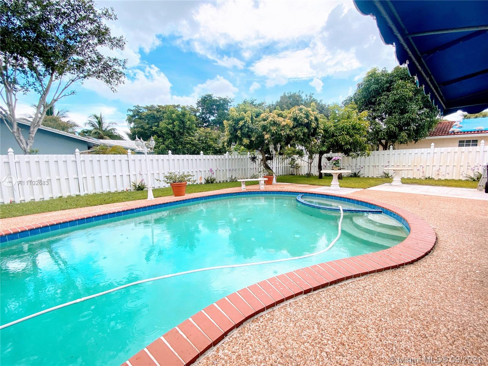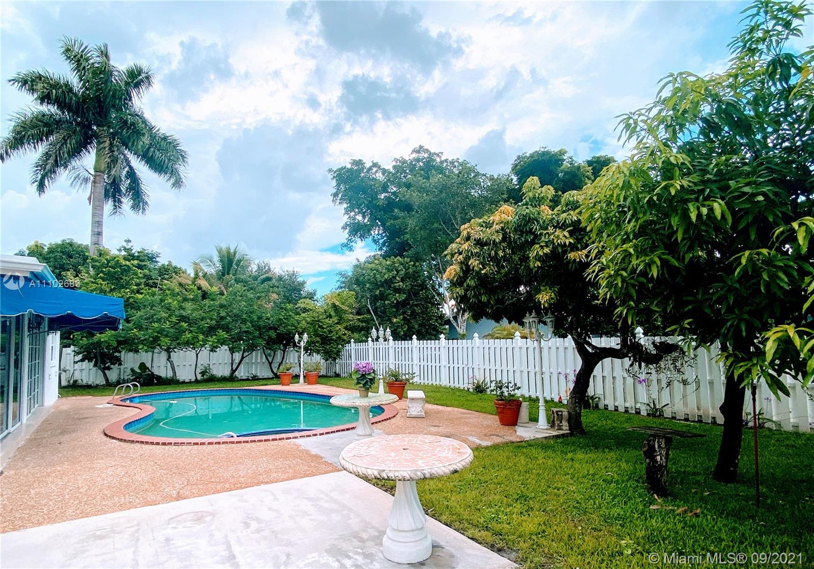 Stunning tropical paradise pool home centrally located with lush landscaping complete with gorgeous exotic fruit trees and plants. This corner lot home is completely fenced with an oversized yard perfect for relaxing by the pool or entertaining. Enjoy this upgraded kitchen which boasts beautifully designed maple cabinets, granite counters, tons of prep space for cooking with a huge island and newer stainless steel appliances. Light, bright and airy floor plan with tranquil breathtaking views of your private backyard from the living room and the spacious enclosed Florida room. This amazing home is close to restaurants, schools, and parks but still tucked away just enough to enjoy the peaceful Resort lifestyle in a lovely tree lined community with no HOA fees, don't let this one get away.