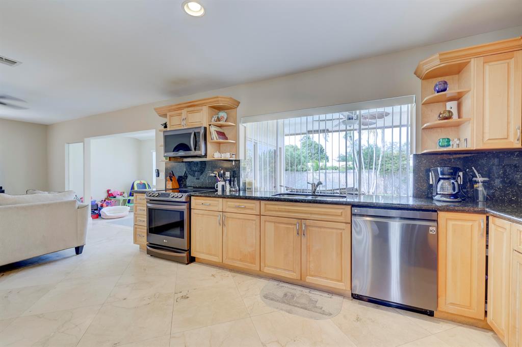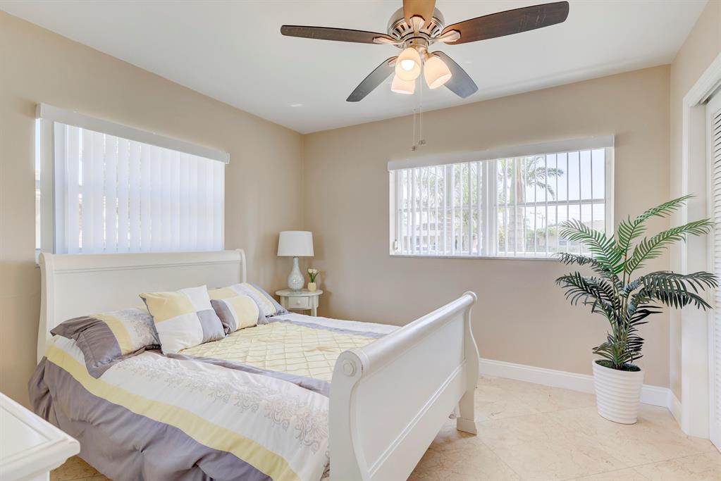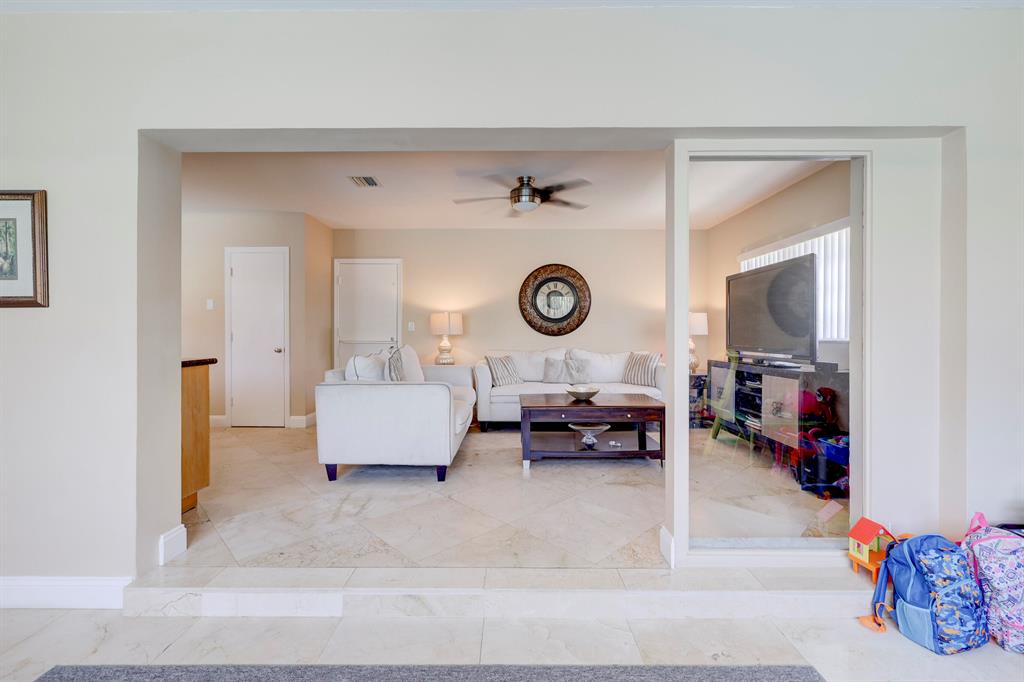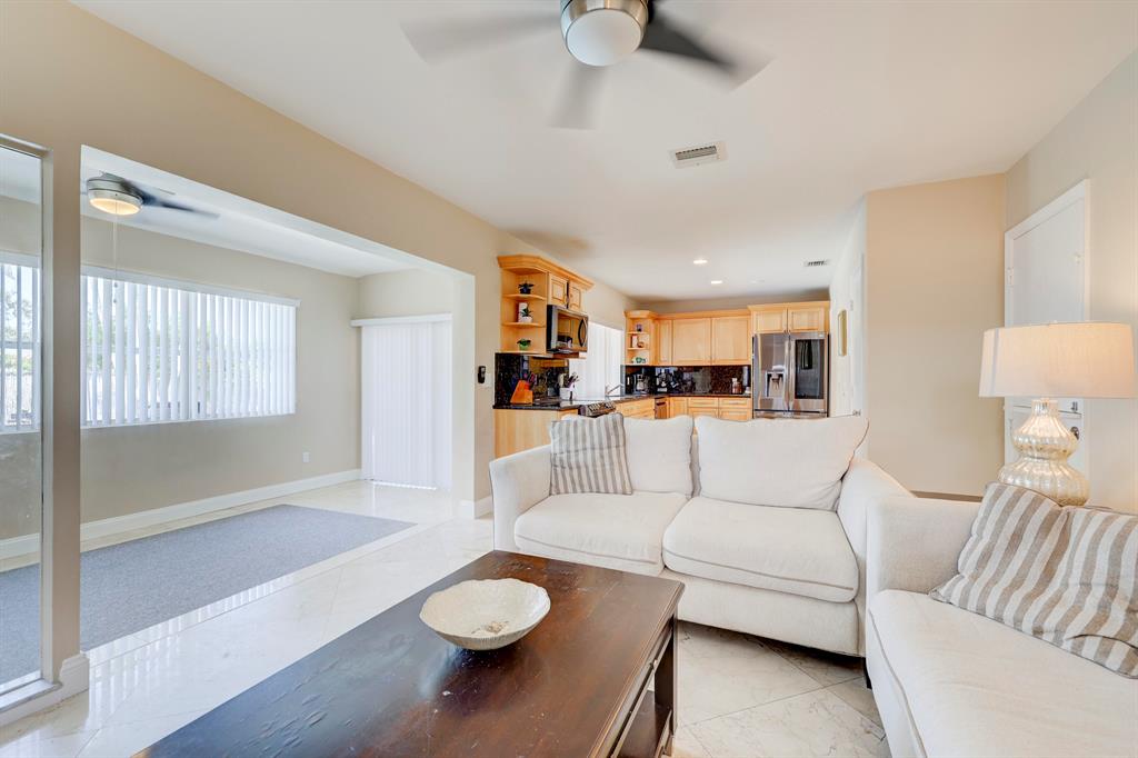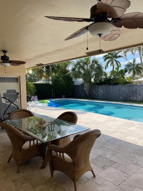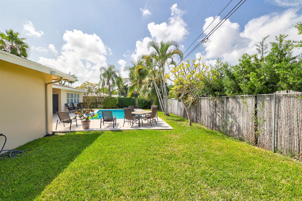 This beautiful updated well-maintained 3/2 pool home with a bonus room to use as an office, playroom or 4th bedroom is situated in a desirable area on a quiet low traffic street. Enjoy the ambiance of the front of this home with little gated front patio and a huge circle drive that fits 7 cars, or boat, RV, jet skis, etc and 2 car garage. The features include an awesome 1500' marble paver patio with covered area. Refinished diamond brite pool with new glass tile. Great for entertaining and BBQ's. Nice lawn area is all privacy fenced. The rooms are freshly painted with ceiling fans in every room. Granite kitchen stainless appliances. Conveniently located less than 2 miles to beaches & nearby shops, grocery, and restaurants. NO HOA, no monthly fees, NO Restrictions.