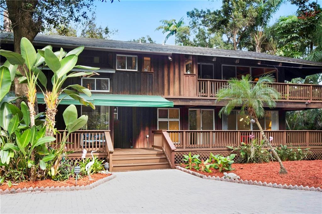 Run to see this very rare architect designed Florida home set in a half acre of tropical paradise - won't last! It is like living in a secluded tree house downtown while listening to the white egrets and blue herons throughout this light filled 4bed/2.5 bath home. The whole house is framed in solid concrete and filled with rare cedar wood on the walls and Dade County pine and oak flooring. Upstairs the master bedroom has 3 walls of glass windows looking out to the mature oak trees and canal to the east and the large pool to the west. To find this home you access a very private road, home to only 7 homes and a community dock to launch your boat on the canal. Air handlers are one and two year's old. House was built in 1975 and there is a large working fireplace upstairs in the den. New W/D.
