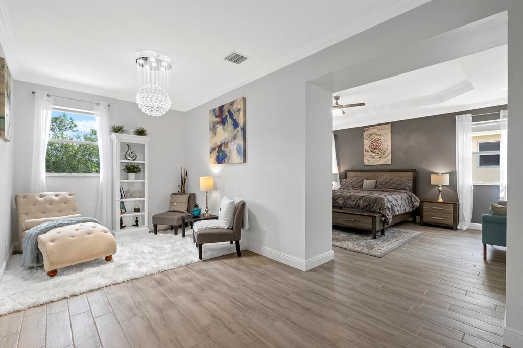 Welcome to Worthington Estates! This gorgeous and quaint community made of just 81 homes is located off of West Okeechobee Blvd. Step into the ever spacious 4,500 square feet under air estate. The stunning grandiose entrance welcomes you with a custom staircase and luxurious crystal chandeliers. This five bedroom, four and a half bathroom home features one master bedroom downstairs, another spacious bedroom downstairs that can be used as an office, playroom or other. Downstairs you will also find a formal living area with soaring high ceilings, one formal dining area, open kitchen leading to family room and one huge bonus living area AKA ''Man Cave'' with its own half bathroom all with crown molding throughout. As you head upstairs you will be greeted by a spacious lo