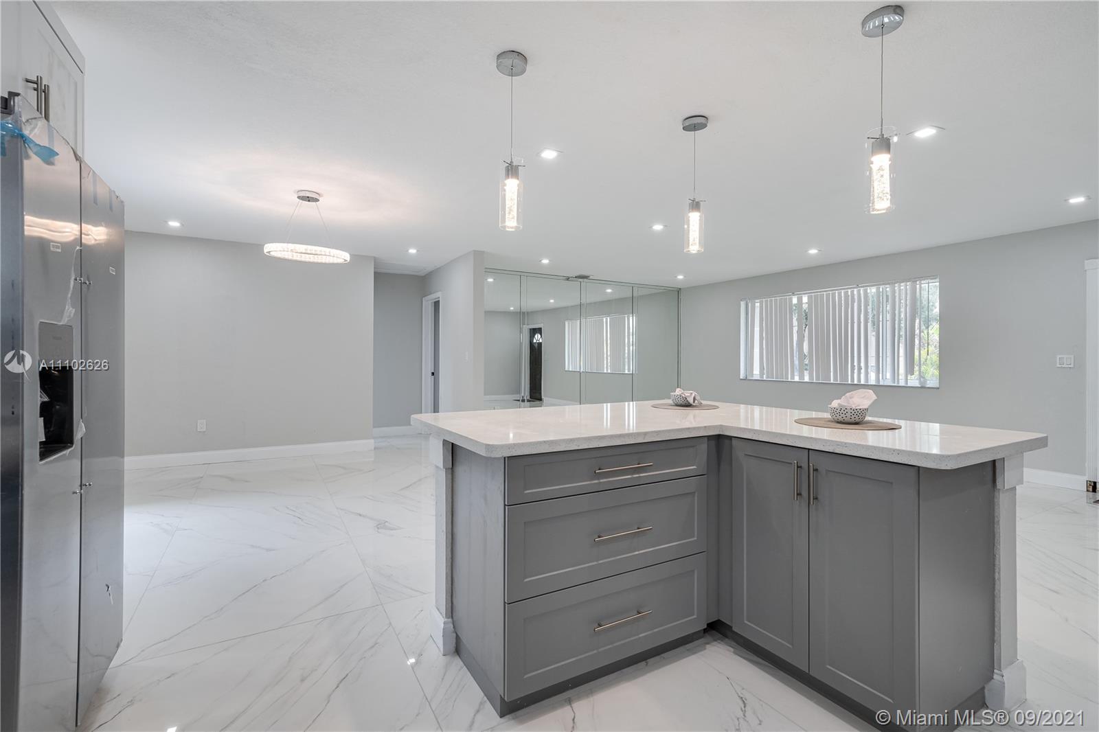 This home is renovated with with new wood flooring in bedrooms and porcelain in the living areas. Comes with a new kitchen with quartz counter top and new baths. High impact windows and new roof will save the homeowner on insurance premium. Spacious yard for pool, circular driveway will accommodate many cars. Home is easy to show and owner is available to give immediate response to all proposals.