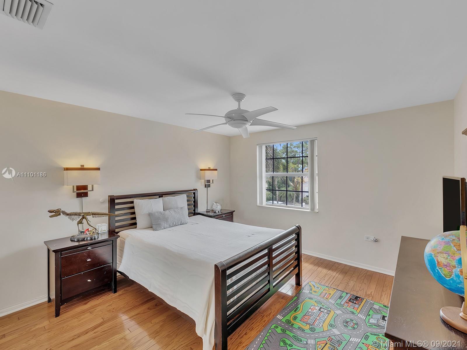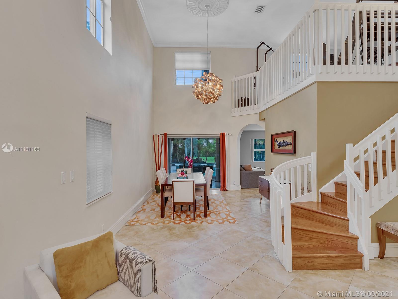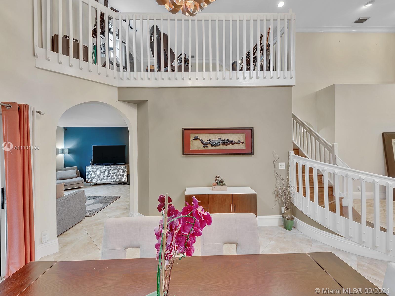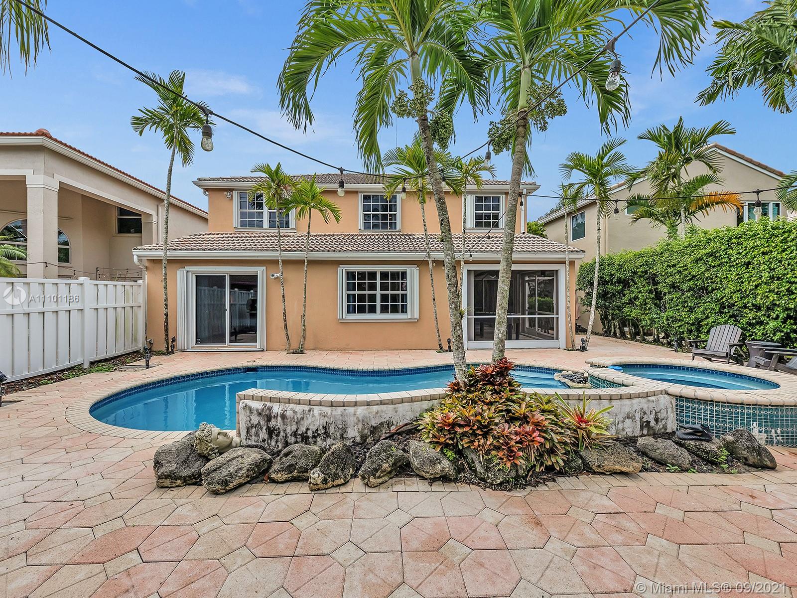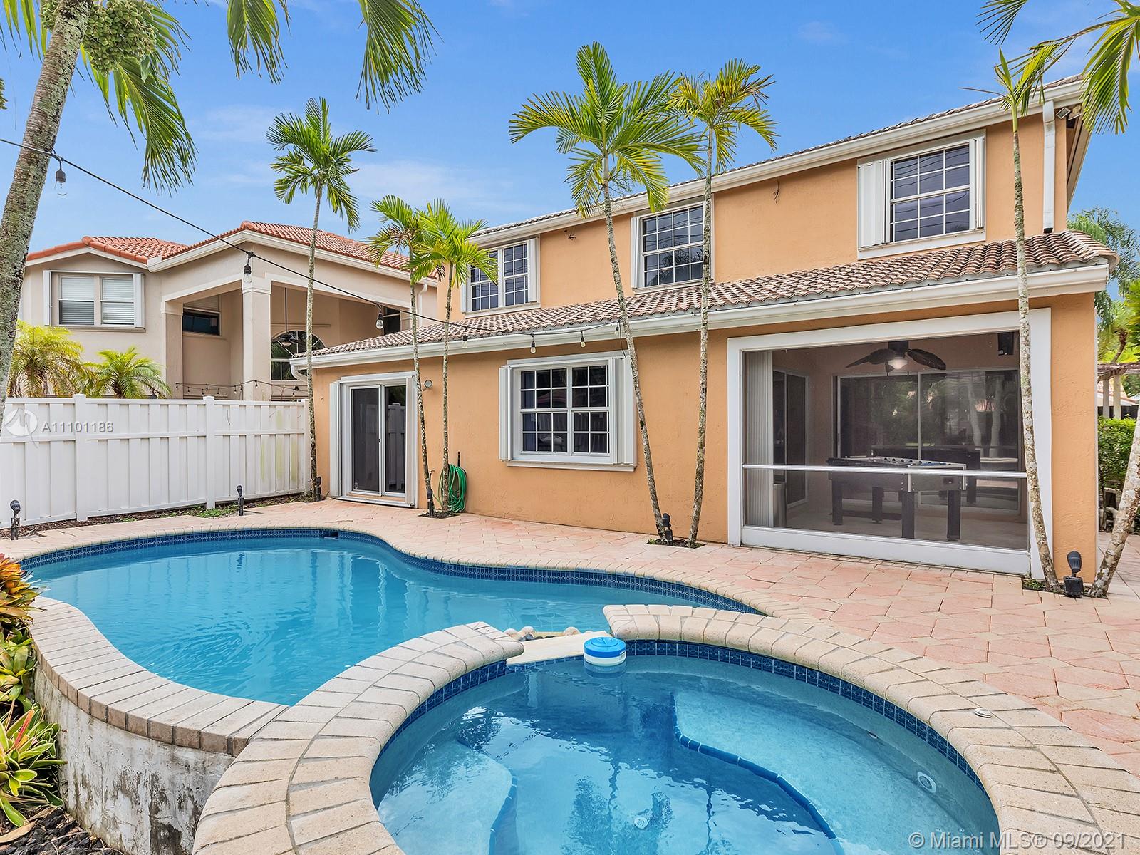 Make this tropical oasis your home! This beautiful 3 Bed/2.5 bath + loft property has been meticulously maintained. With wonderful high ceilings & bright, modern lights throughout the home, this home will not last! It features a first floor master with an in-suite bathroom; a separate decent-sized family room connected with the kitchen/bar area, as well as a recreation room near the pool area. Perfect for entertaining, the breathtaking backyard showcases an open patio area housing a free-form pool w/ elevated spa decorated with beautiful palm trees throughout. With 2 bedrooms upstairs, the 2nd floor features real hardwood flooring while downstairs has large neutral tiles. Nestled in the family-oriented neighborhood of Pine Ridge, the home has a very low HOA and near major shopping areas.