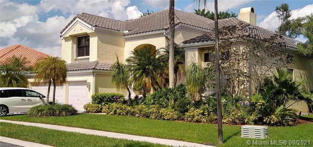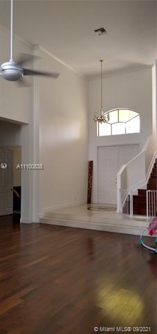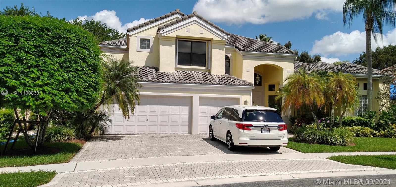 EXCLUSIVE GRAND PALMS, SANTA BARBARA. Two Story, 6 bedrooms & 4 Bathrooms. On 1st Floor Two Masters plus a room/office. Beautifull upgraded kitchen. New kitchen, new stainless steel appliances . New kitchen and familiyroom tile floor and plenty of high ceiling in the main areas. Second Floor has loft area and 3 bedrooms plus Jack & Jill Bathroom. Beautiful endless Golf View from backyard plus Pool/Spa that were upgraded. Patio upgraded roof including new fan. Hurricane shutters. The house was painted and Pressure Wash recently.House has 3 A/C units. Three Car Garage has plenty of closet space. Beautifull wood floor on 1st & 2nd floor and stairways. HOA: Grand Palms $190/M. Santa Barbara Association $250/Q
