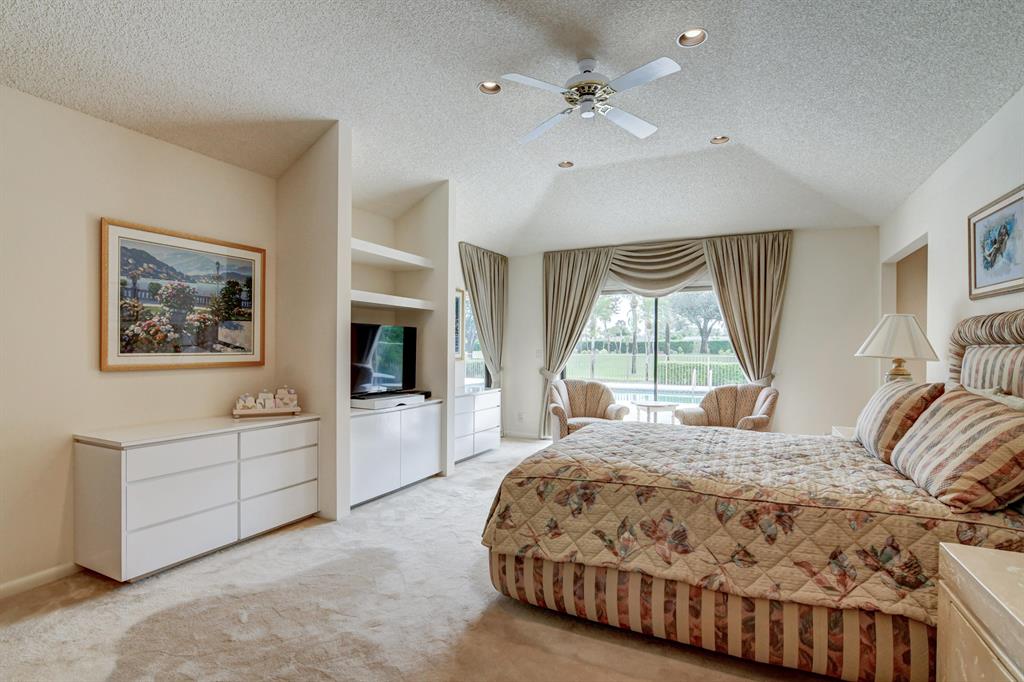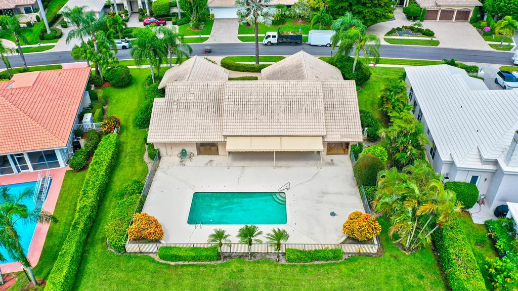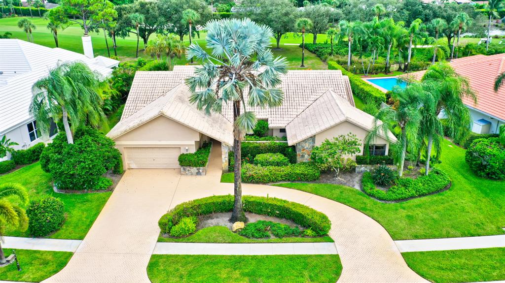 Welcome to paradise! Open concept home with vaulted ceilings looking over the beautiful serene golf course. Huge private patio with large pool. Three bedrooms plus an office/den makes this home perfect entertaining. Primary bedroom has two bathrooms. High end built ins and real wood floors in living area. Quiet lot in a friendly community. The exclusive Bocaire Country Club is a boutique club of only 239 homes, boasting no tee times on a renowned championship golf course. Plus Tennis, fitness, social and dining. A rated School district, close to beach, shopping, arts, restaurants, Atlantic Ave and Mizner Park. MANDATORY MEMBERSHIP Fees listed under documents. Won't last!