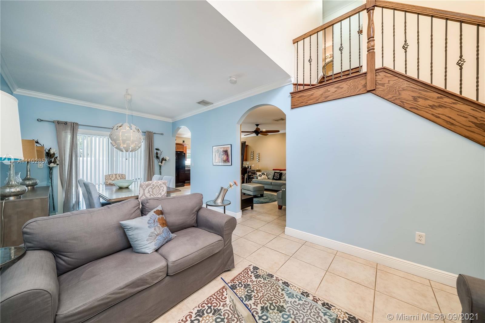 Beautiful Mediterranean-style townhome in the prestigious gated community of Vizcaya. Perfect neighborhood for families with excellent schools. Crown molding throughout and offers high impact windows and doors. Both the kitchen and bathrooms feature granite counters and cherry-wood cabinetry. This home is a rare find and embodies tranquility. Relax in the fenced-in backyard inclusive of travertine pavers as well as your very own fire pit. Most appliances replaced in 2015. Water heater replaced in 2019.