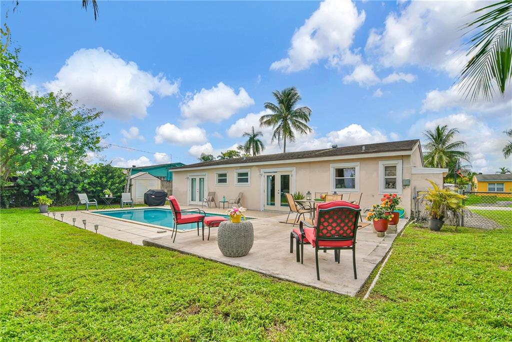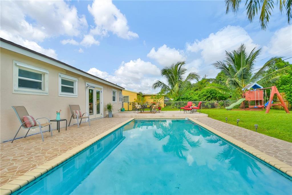 Enjoy a year round the sunny days of South Florida in this beautiful 3 bedrooms, two bathrooms, CBS construction true Florida ranch-style updated home ; what sets it apart is its stunning backyard boosting 7,208 sq.ft with a paved deck and oversize pool. featuring French doors, kitchen with wood cabinetry, stainless steel appliances, and a den or Florida room! Delight in the perfect vacation destination residence while living just a couple of miles away from entertainment, such as casinos, the Hard Rock Café, and not to mention the most beautiful beaches: Hollywood, Hallandale, Dania Miami Beach, and Sunny Isles. This beauty is nestled in the DRIFTWOOD ACRES is located in the proximity of the international airports and two of the most convenient highways in South Florida. NO HOA.