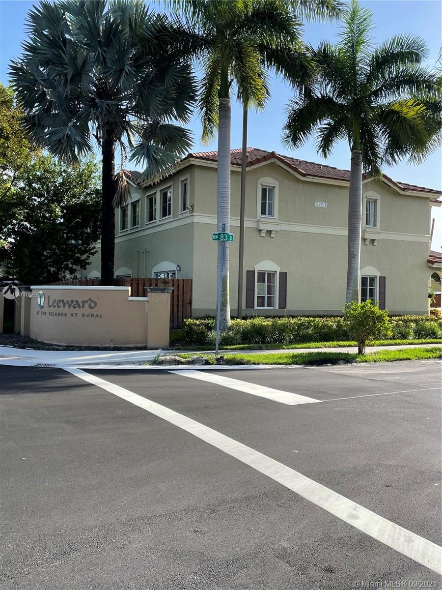 BEAUTIFUL CORNER TOWNHOUSE for sale in the heart of the city of Doral, it is a 2-Story Townhouse located in the community of Leeward At Doral with first floor entry, and a beautiful brick floored patio. With 3 rooms and 2.5 baths. It is in a great location near two of the best schools of the area, it is walking distance from "Legacy", the newest and most exceptional park built in Doral, and it is minutes away from the Florida Turnpike, Palmetto Expressway, and the Hialeah Expressway. Access to Clubhouse with huge pool, gym, sauna, tennis courts and much more! Tile on first floor. Centrally locate near to shopping centers, malls ,Miami International airport and restaurants The master association at Islands of Doral requires a capital contribution of $1,000.00 pay by the buyers.