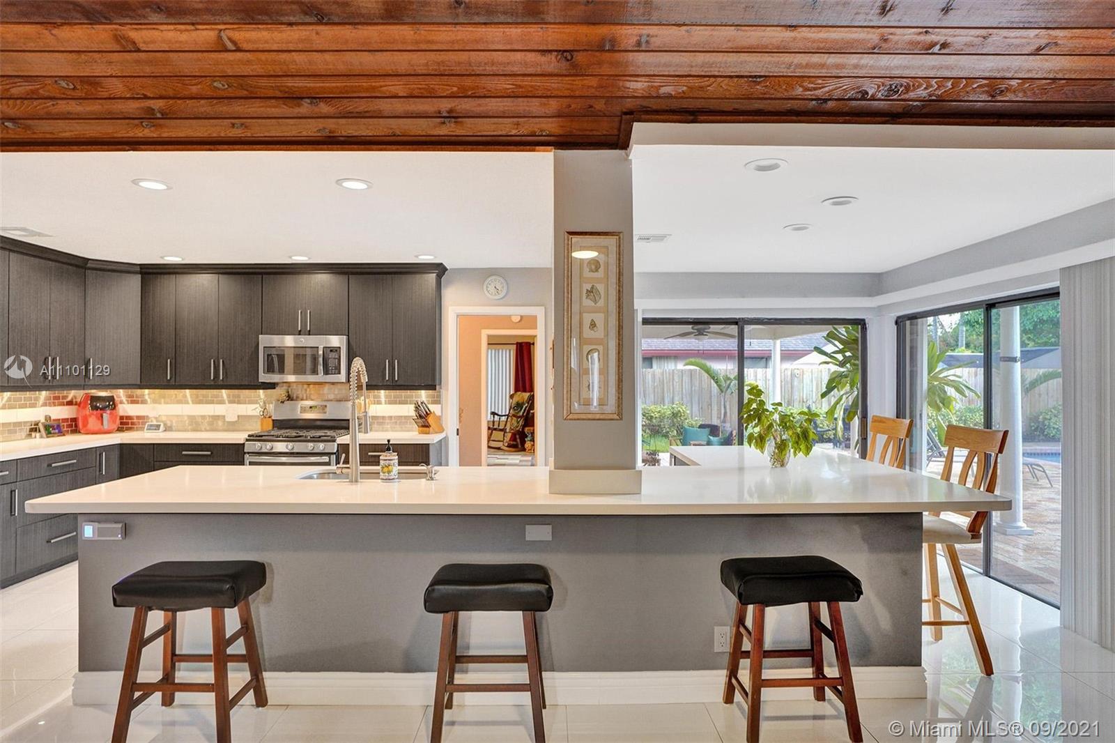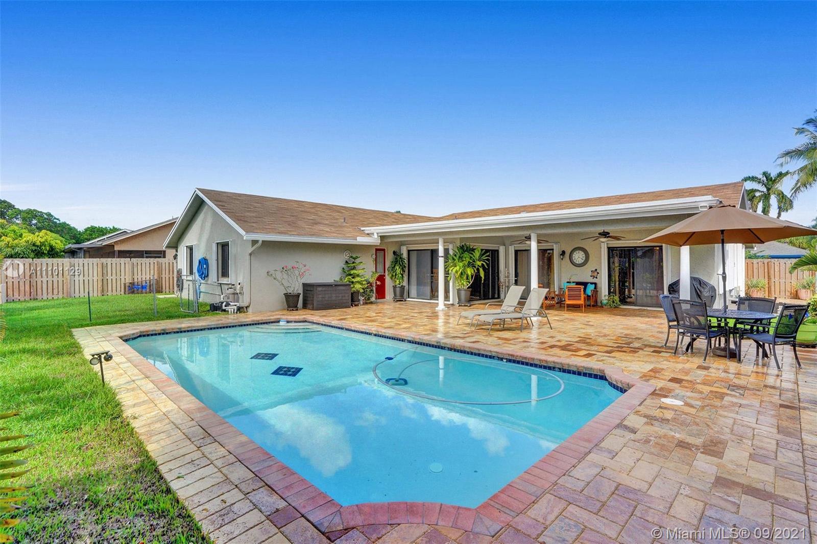 Enjoy Real South Florida afternoons poolside in this spectacular and spacious 4/3 Plantation home. Fully renovated and meticulously maintained, nothing left to do, but relax in your tropical backyard. Be the envy of all your friends with this amazing kitchen that boasts a 13ft quartz countertop, and gas stove. This most ideal split floorplan offers space for everyone and privacy. Total storm protection with accordion shutters and 500 gallon in ground propane tank, makes prep a breeze and keeps utility bills low. High tech sprinkler system makes for great lawn, completely fenced and ready for pets & toys. All of this located in one of the most desired cities with shopping, schools and worship nearby. Owner would prefer a rent back-but flexible on this request.