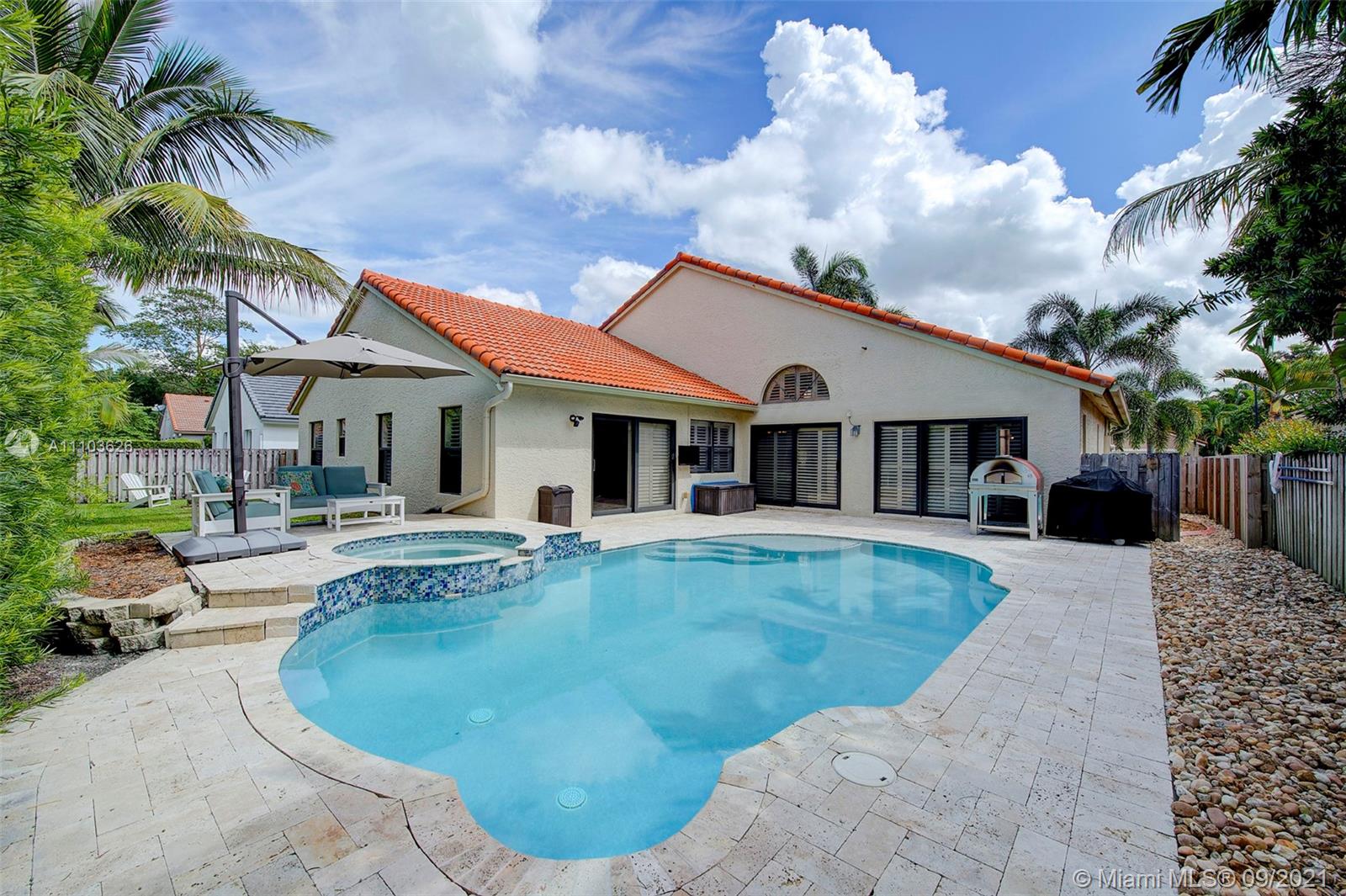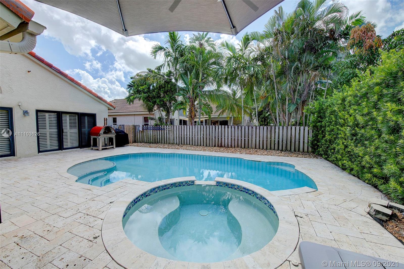 BEAUTIFUL 4 bedroom 3 full bathroom pool home located in the highly sought after community The Ridge on Nob Hill! Step inside this rarely available gem and you are greeted by natural light, pool views & excellent triple split floor plan! Meticulously maintained & pride of ownership shows. Exterior front has updated landscaping + spectacular professional outdoor lighting. Updated kitchen w/ granite counters + SS appliances. Beautiful private fenced backyard w/ salt water pool, heated jacuzzi + travertine decking. Updated W/D! New water heater. Windows have plantation shutters & 70% hurricane impact + all other protected. Zoned for A+ top rated schools! Bonus private entrance into TREE TOPS PARK. Enjoy nature trails, horseback riding, boating, fishing + wildlife observation. MUST SEE!