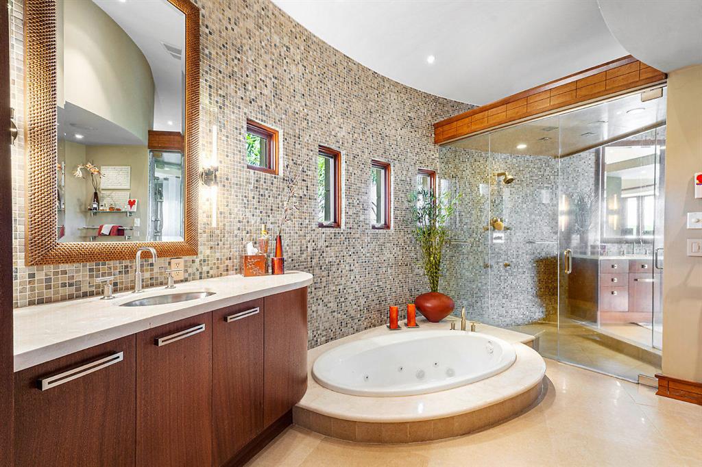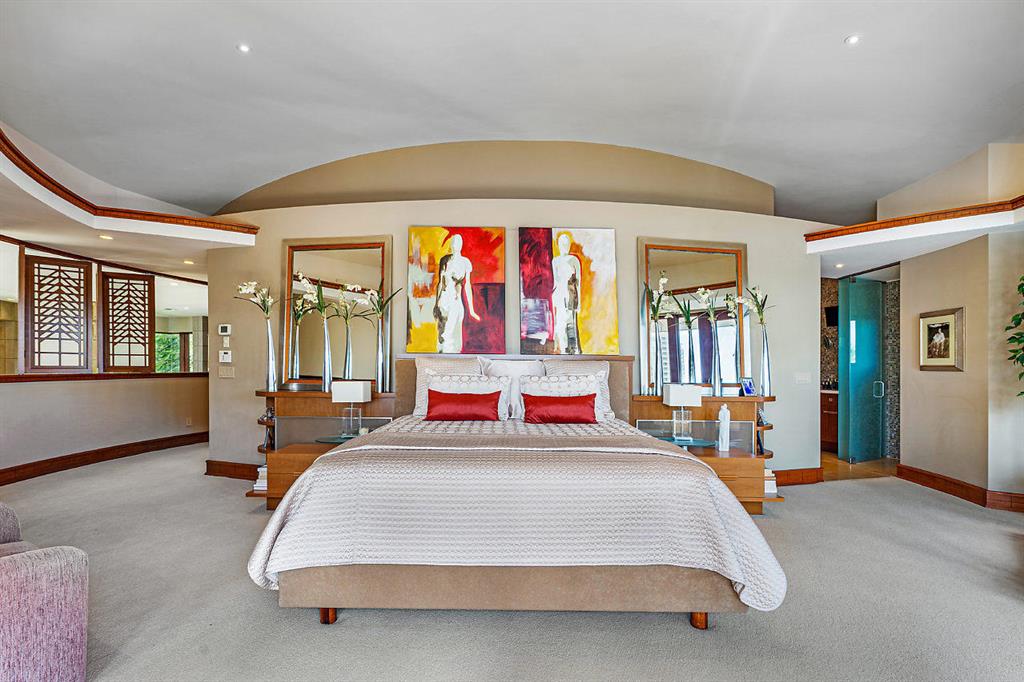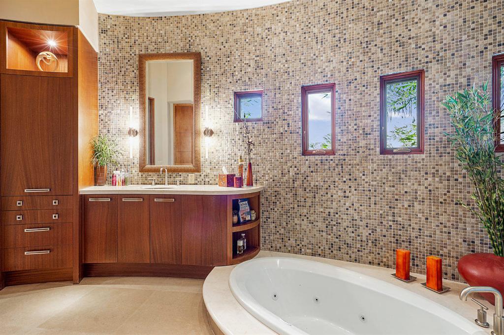 Dos Lunas is a Masterpiece estate directly on the Intracoastal Waterway. This dream home was designed and decorated by owners Derek and Lisa Vander Ploeg and took over 3 years to build. This Frank Lloyd Wright inspired vision has 4 Bedrooms plus Den or Office/7 Bathrooms, beautiful custom kitchen featuring Mahogany Cabinets, state of the art appliances and custom Rainforest marble countertops. The 4300 Sandstone wall tiles featured on the exterior and interior walls in addition to the ''Noce'' travertine (glossy inside and honed outside) all contribute to the indoor-outdoor natural flow. Infinity edge pool, 60' foot dock, whole home Generator, underground 500 gallon propane tank, two fireplaces, The ''two moon'' design is evident in the curvature of the Master Bedroom Suite.