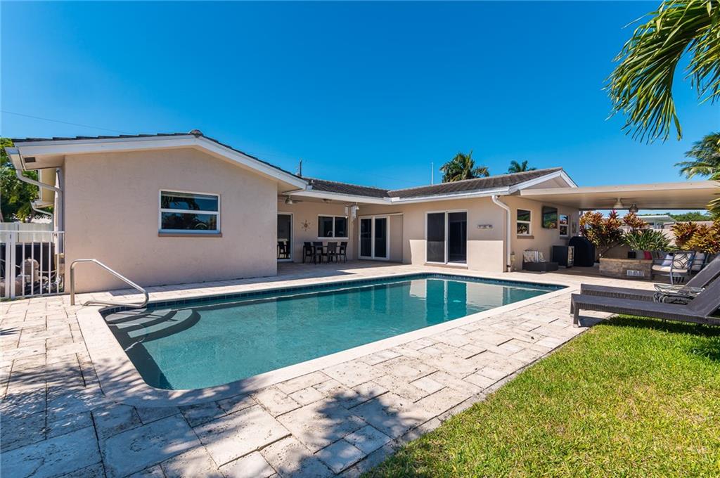 Boater’s Paradise! Located in the middle of The Landings only turning basin, 2.5 times the width of a typical canal in the neighborhood. Easy access to intracoastal and with one fixed bridge, providing approx 11 vertical feet of clearance at high tide. Stunning waterfront views from the expansive covered patio with large firepit. Desirable eastern exposure for breezy, shady evenings. This home has much to offer with gorgeous landscaping, newly refinished pool, composite dock. New roof installed in 2015 and HVAC installed in 2017. 4 bedrooms and 3 full baths in a spacious split floorplan with 2 car air conditioned garage. Home is walking distance to shops, bars, and restaurants on Commercial Blvd and only one mile from beach.