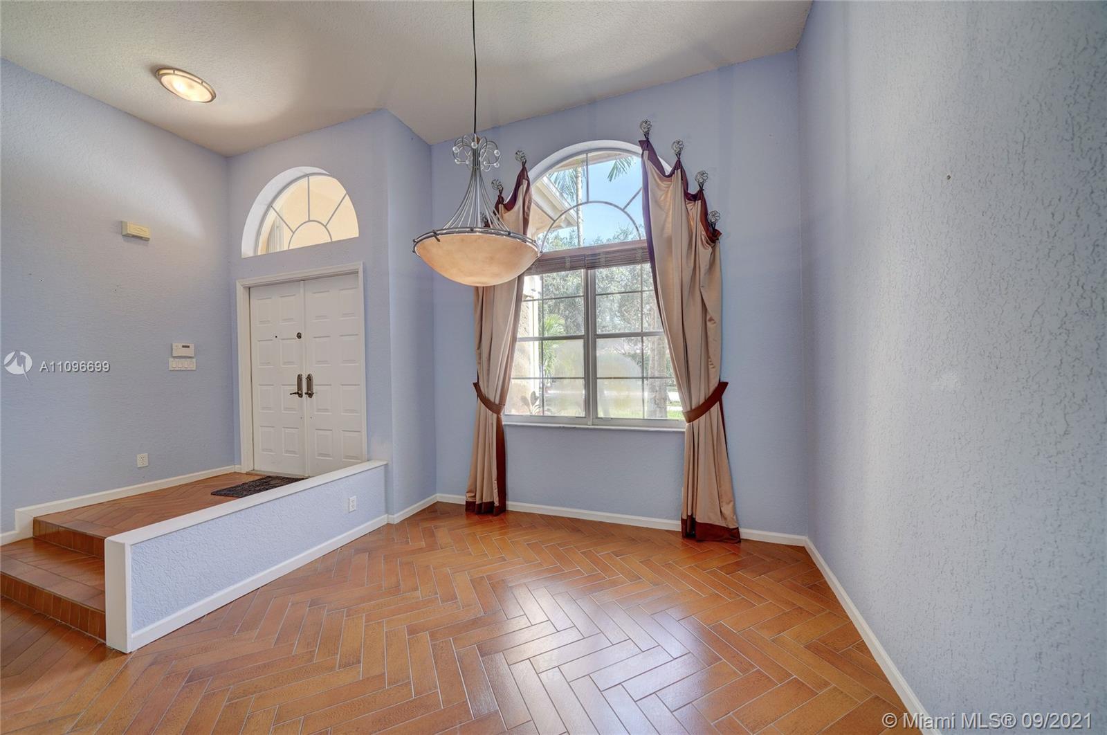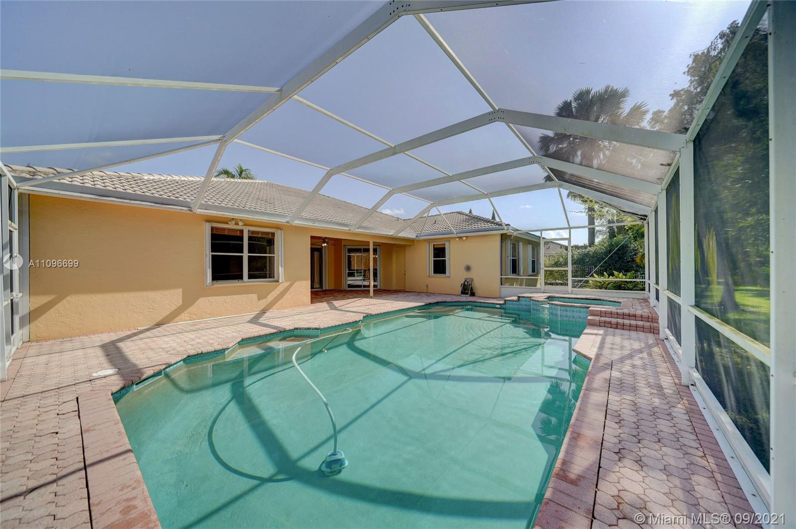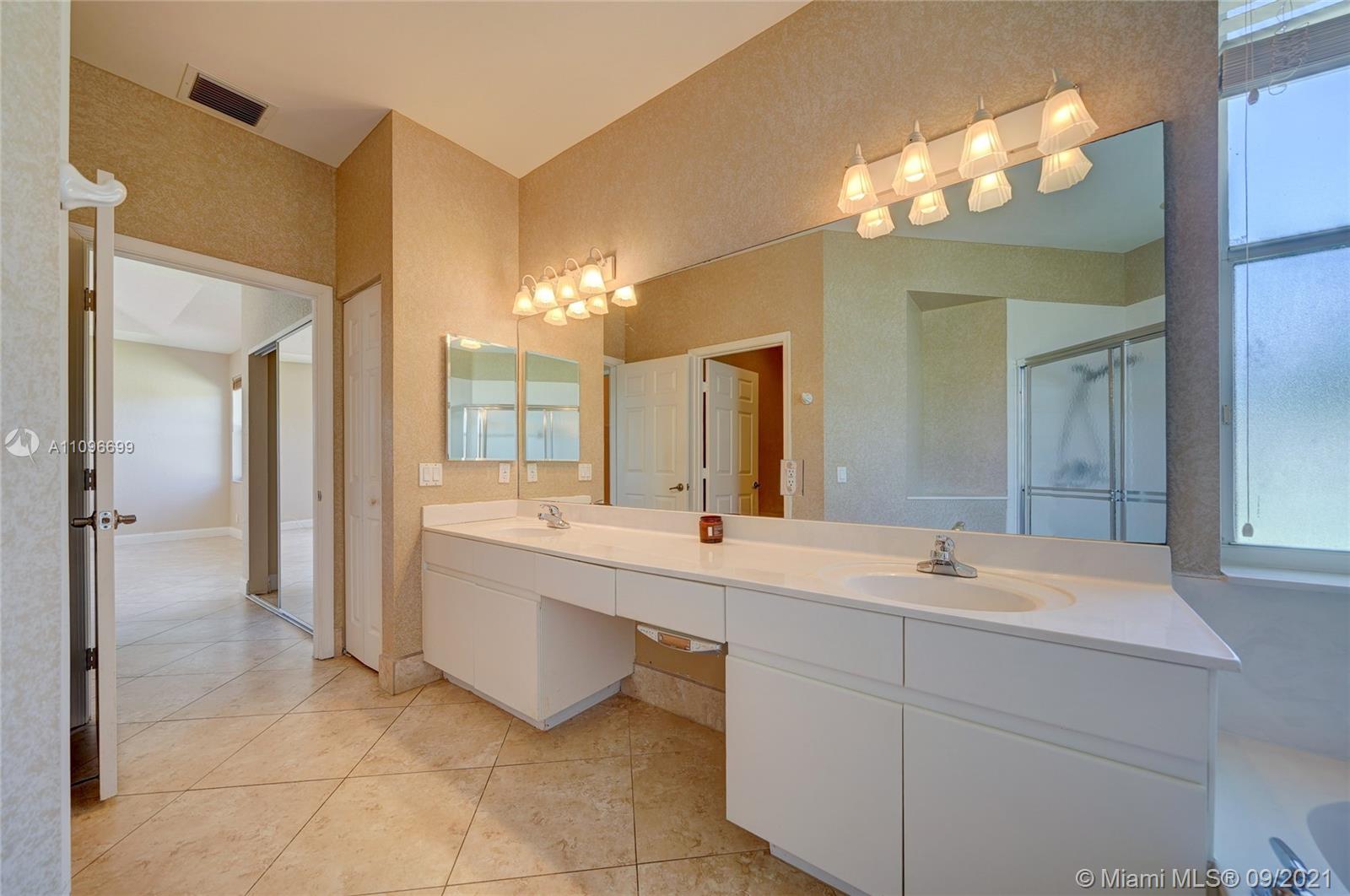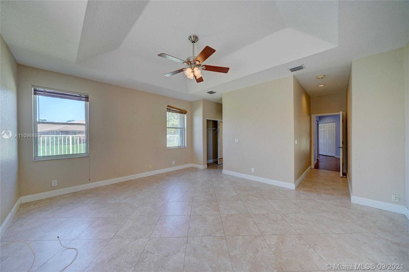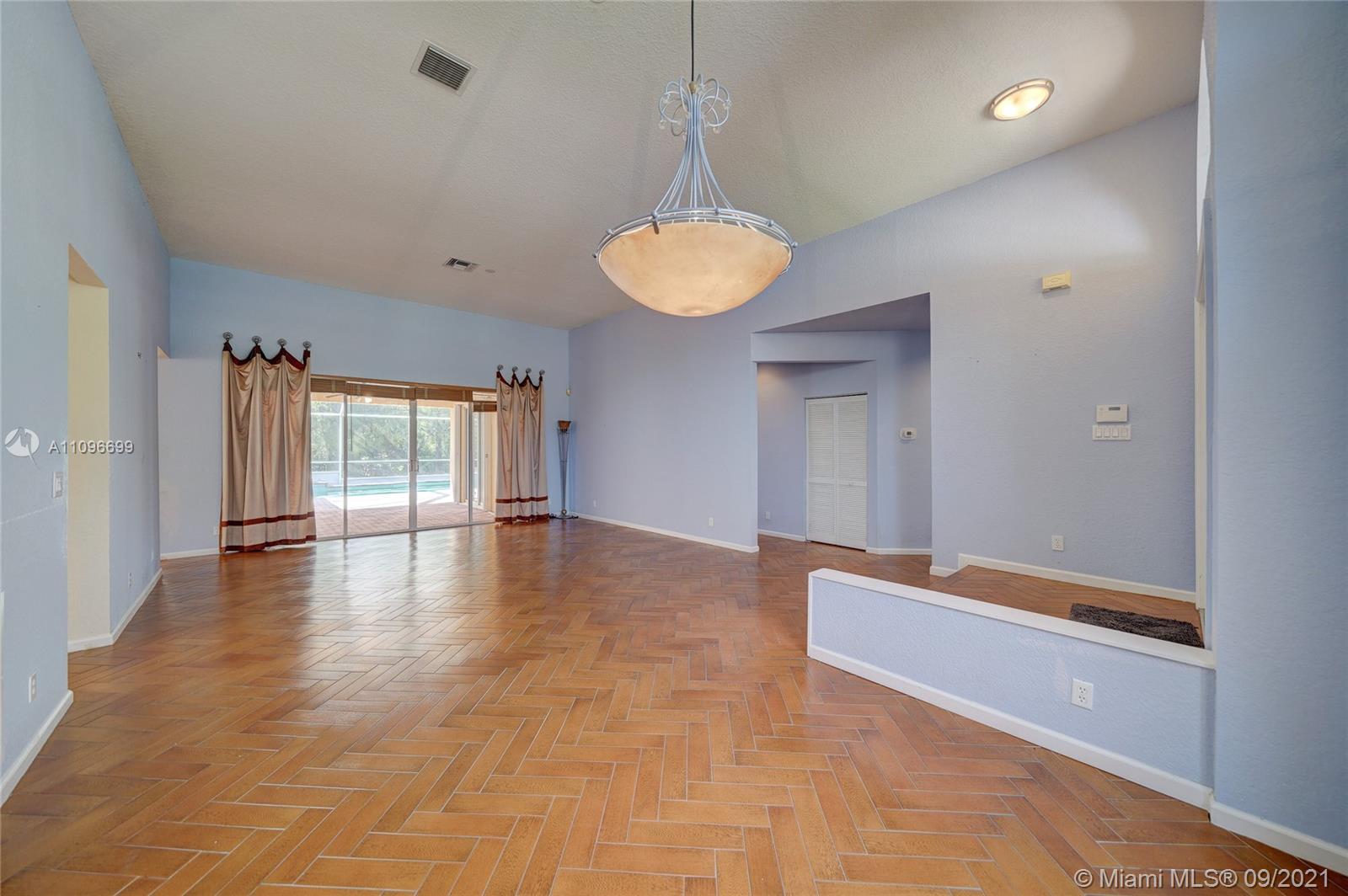 Rarely available home in the guard gated community of Country Glen. Sought after split floor plan in this 5 bedroom 3 bathroom home on over a quarter acre of land. Gorgeous neutral herringbone tile floors in all main living areas, and 5th bedroom. Soaring ceilings in the living and dining room. Oversized master suite with tile flooring, and dual closets including large walk-in. Master bath features dual sinks, and separate tub and shower. Open kitchen overlooks the spacious family room. Big secondary bedrooms with laminate flooring, and one with en-suite. Expansive covered patio overlooking the screened in pool, and canal. Accordion shutters, and plenty of amenities in the community including child playground, tennis courts and basketball.