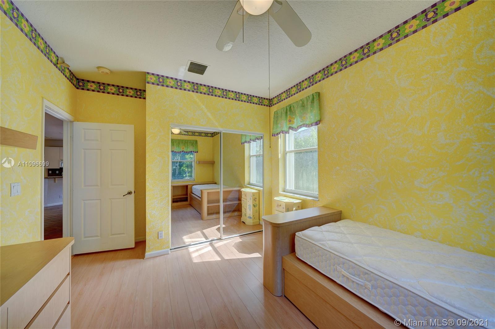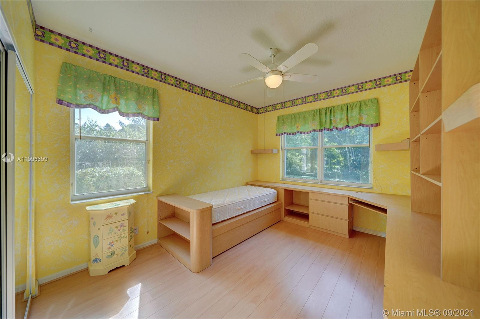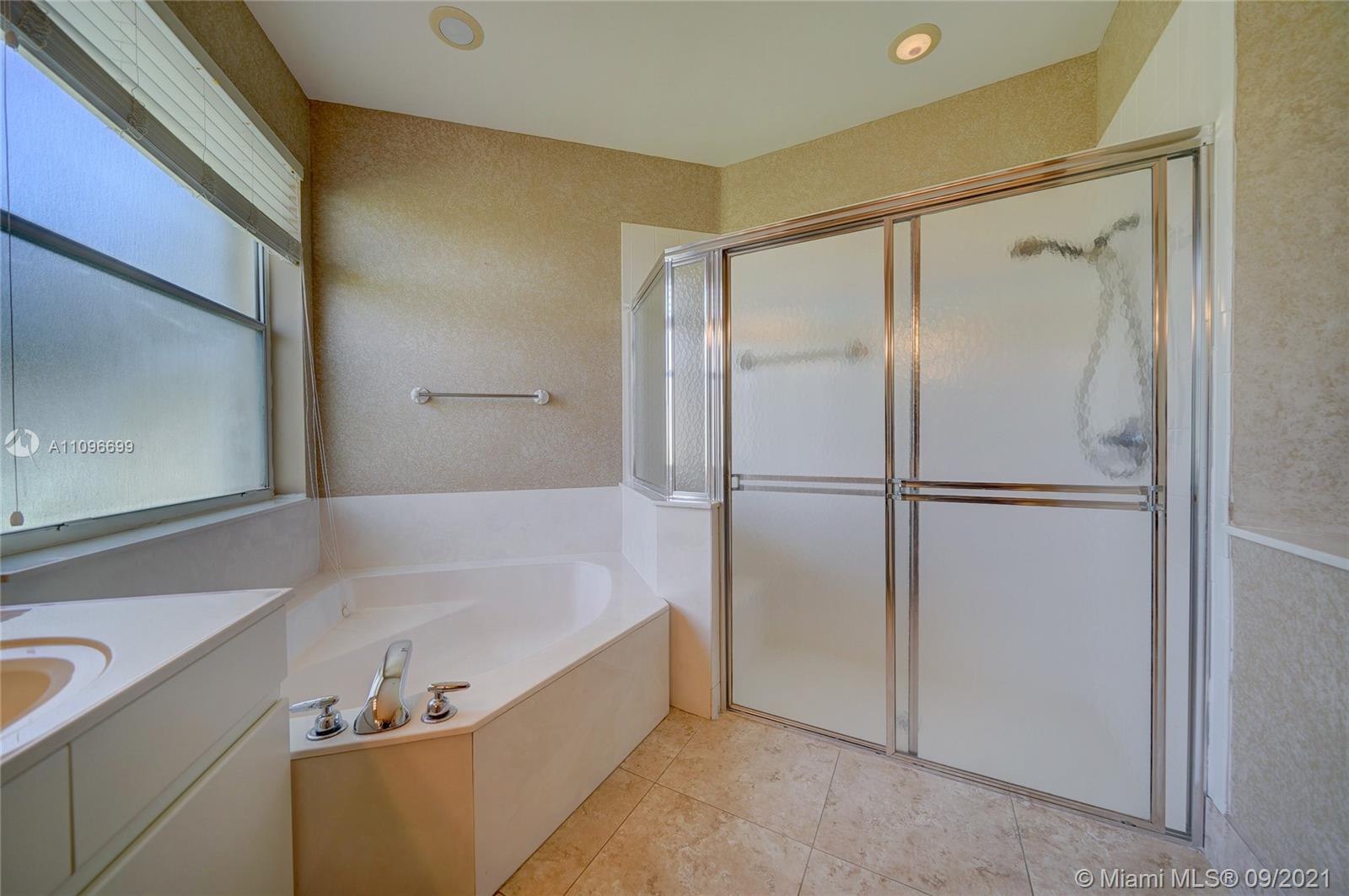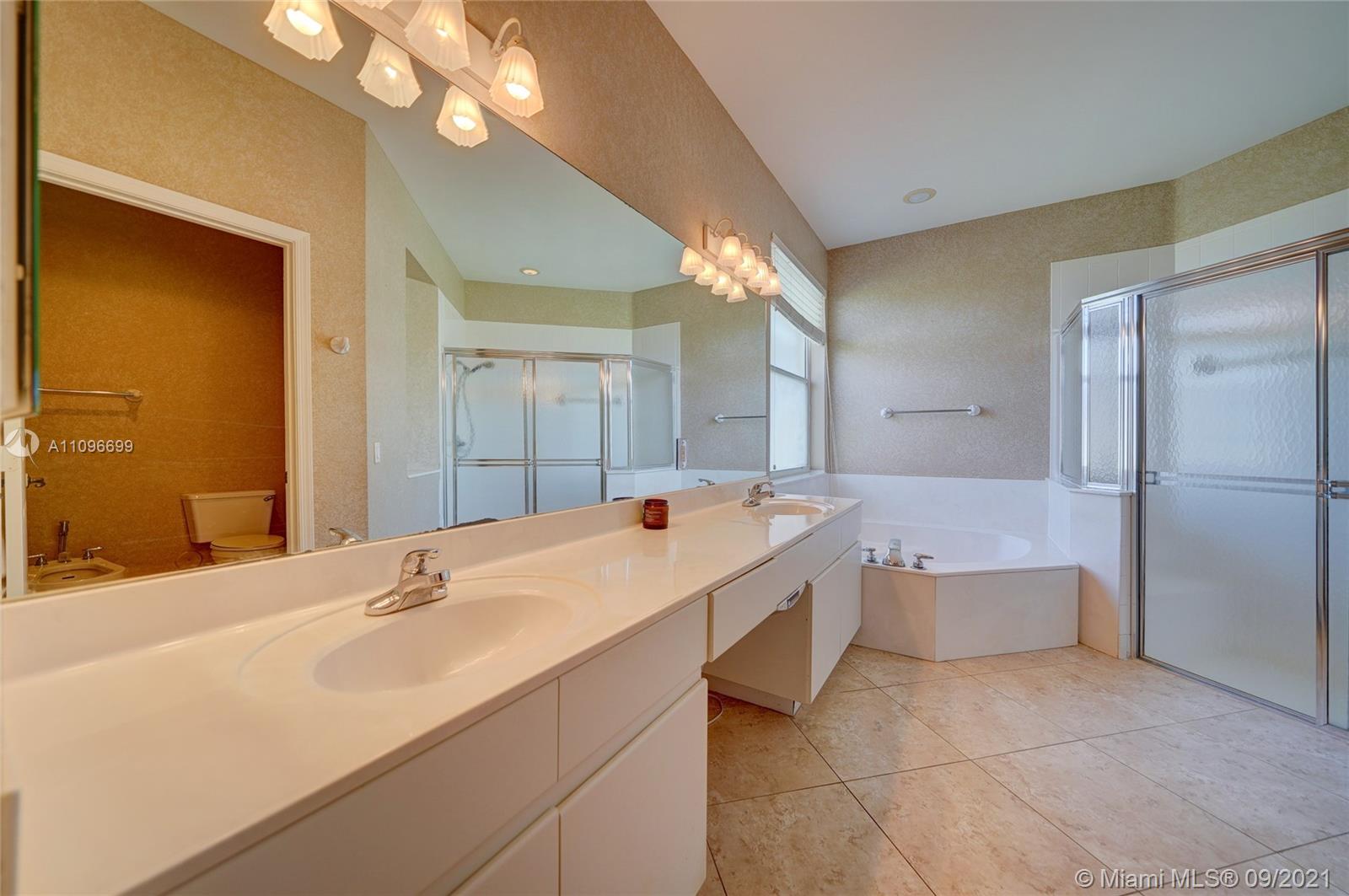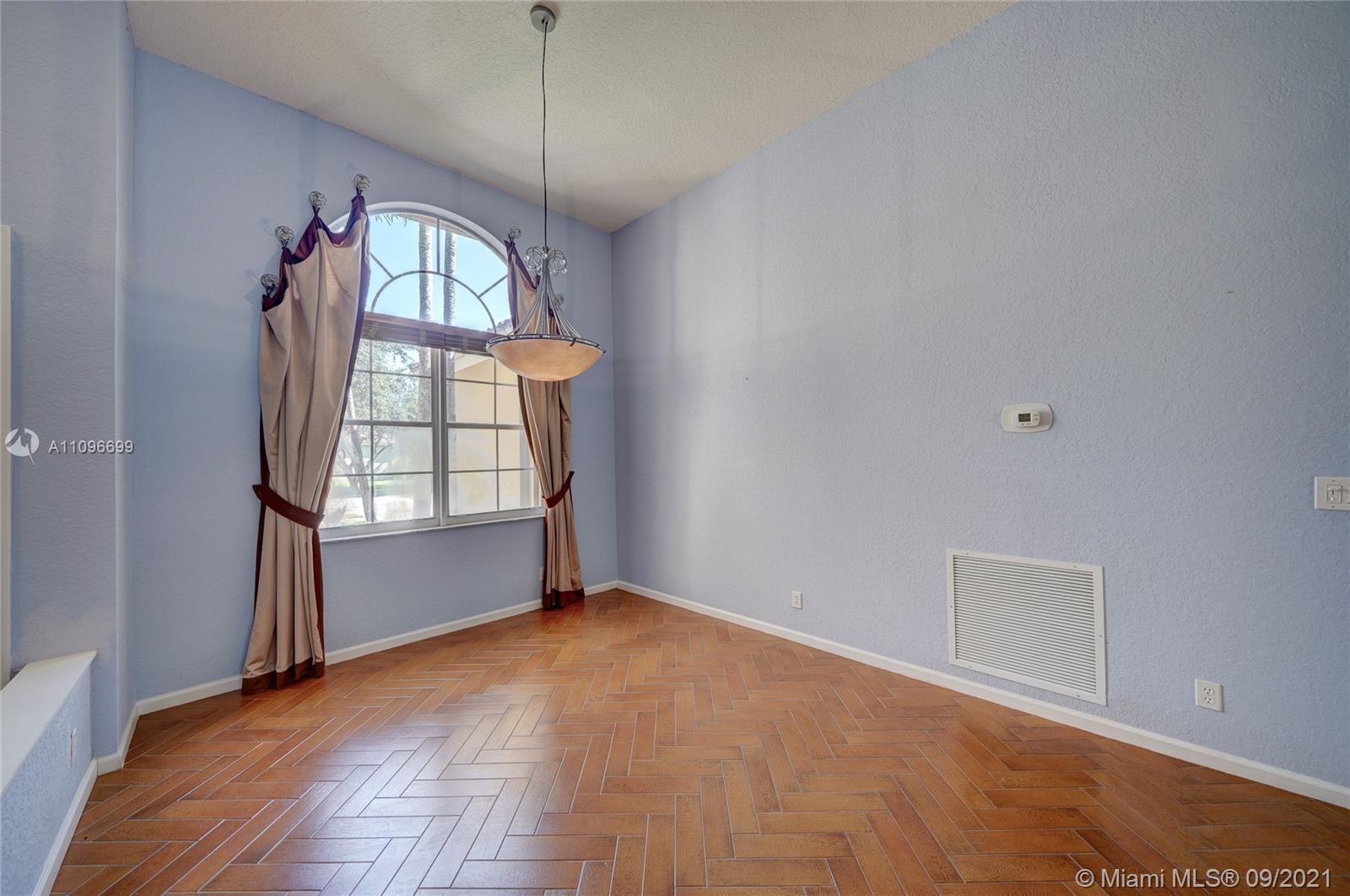 Rarely available home in the guard gated community of Country Glen. Sought after split floor plan in this 5 bedroom 3 bathroom home on over a quarter acre of land. Gorgeous neutral herringbone tile floors in all main living areas, and 5th bedroom. Soaring ceilings in the living and dining room. Oversized master suite with tile flooring, and dual closets including large walk-in. Master bath features dual sinks, and separate tub and shower. Open kitchen overlooks the spacious family room. Big secondary bedrooms with laminate flooring, and one with en-suite. Expansive covered patio overlooking the screened in pool, and canal. Accordion shutters, and plenty of amenities in the community including child playground, tennis courts and basketball.