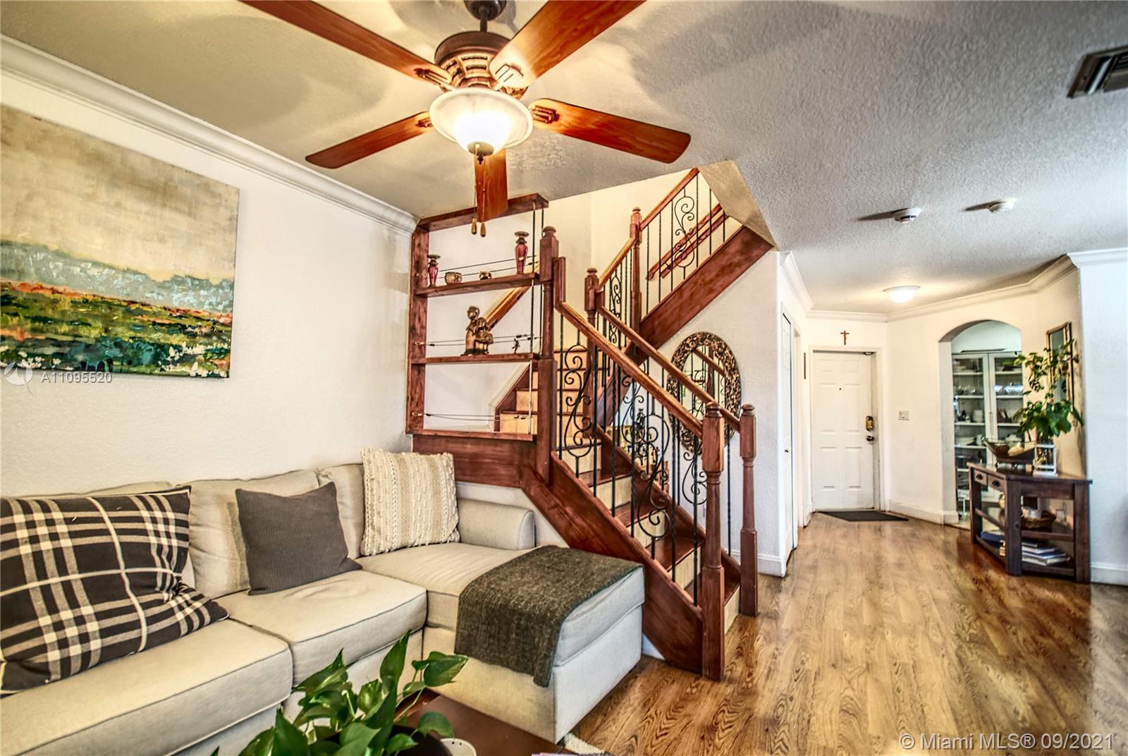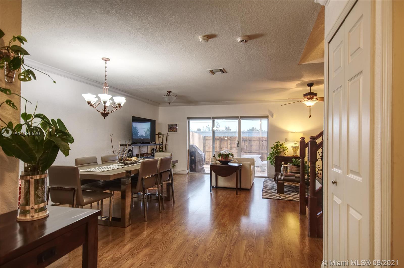 This beautiful 3 bed 2 1/2 bath Townhouse. It is located in a quiet gated community, very close to major schools, parks, shops, and banks. Storage accessible from the Master bedroom Kitchen with stainless steel appliances, ceiling fans in the living room and bedrooms, laminate floors inside, pavers in the huge backyard with storage area. Roofed garage for one vehicle, parking space for 2 additional vehicles. Modern laundry appliances are arranged in the garage area. Excellent location, Located just minutes from great schools, the turnpike, dining, and shopping.