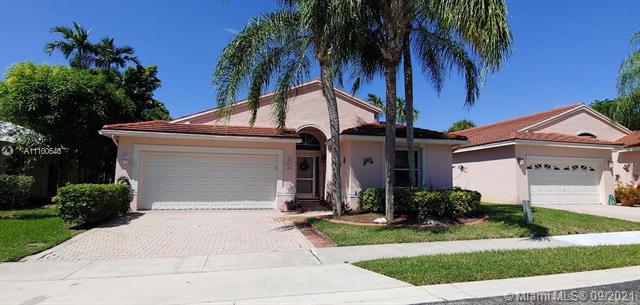 Enjoy the most tranquil golf & lake views along with incredible sunsets in this well maintained home in the prestigious gated golf community of Grand Palms. The large rear paver patio with retractable awning is perfect for taking advantage of the exceptional views. The newer tile roof, newer central a/c & full accordion shutters offer complete peace of mind. Neutral colored tile flooring throughout all main living areas and a 2-car garage with paver driveway allow parking for 4 cars. HOA includes lawn service, cable tv, ADT alarm, community pool within walking distance, and a 24hr manned entry gate offering convenience & security. 3rd bedroom is a large den with double doors which can easily be used as a home office or bedroom. Hurry as this listing will not last! No appraisal contingency