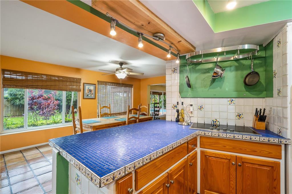 Tropical landscaping surrounds this spacious 3/2 w/attached double garage in Plantation Gardens. Newer fenced backyard, wood decking and private pool make this this the perfect entertaining space. Updated open kitchen with stainless steel and tile countertops & maplewood cabinet doors, Cooktop stove & built-in oven and newer refrigerator. Hurricane windows in main living areas, Florida room updated windows non-hurricane. Spacious updated master bath. Beautifully maintained, throughout home. Roof replaced 2009, A/C 10 years old w/warranty, water heater 2015, pool diamond brite 2020, tented 2018 with service contract. + so much more.